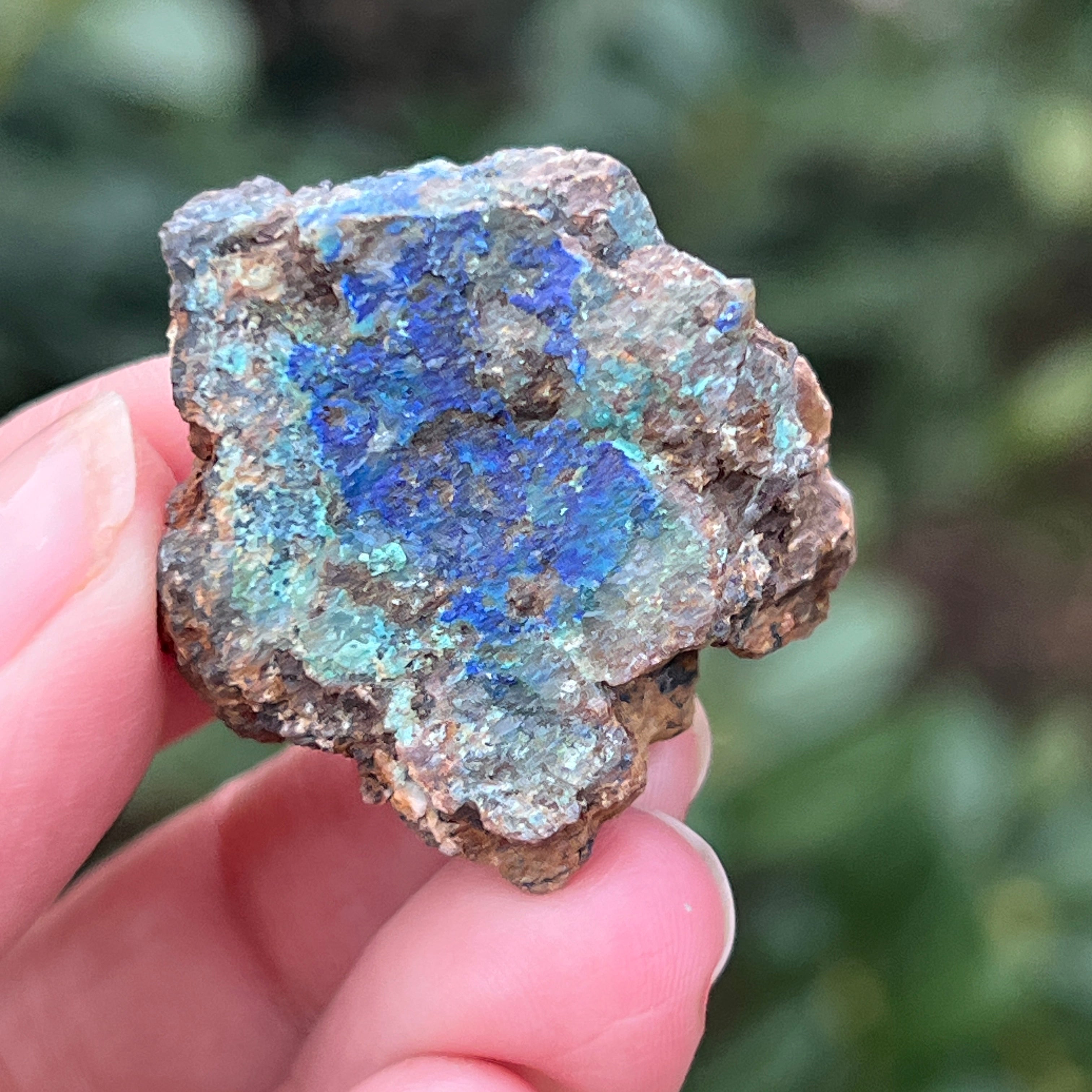 L'azurite si forma principalmente nelle zone di ossidazione dei giacimenti di rame. Il processo di formazione implica l'interazione dell'acqua sotterranea ricca di carbonati con i minerali di rame, risultando nella cristallizzazione dell'azurite nelle fratture e nelle cavità delle rocce. Spesso, l'azurite è associata alla malachite, un altro minerale di rame, che ha un colore verde intenso. I due minerali si formano in condizioni simili e, talvolta, si trovano insieme sotto forma di pietre di azurite-malachite.