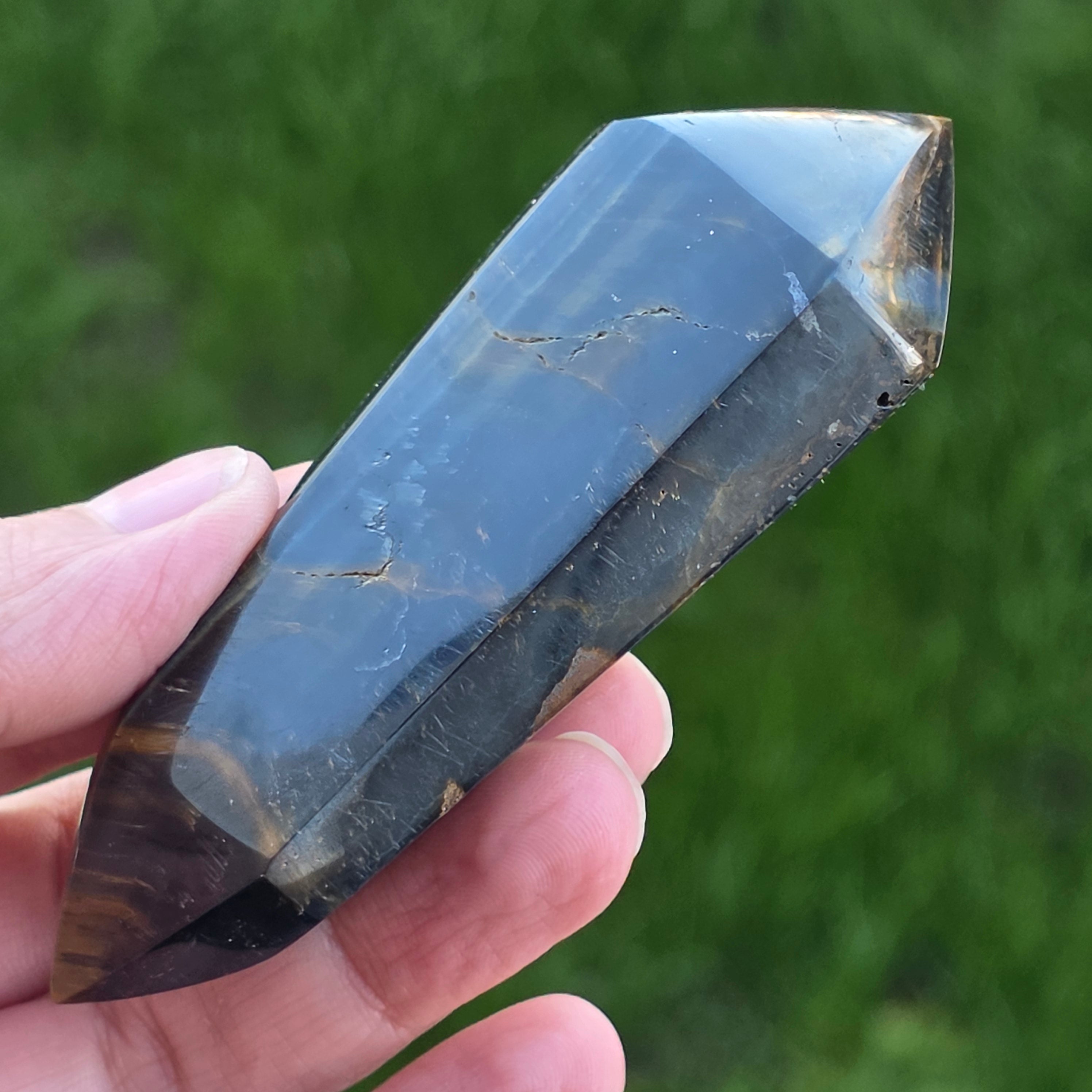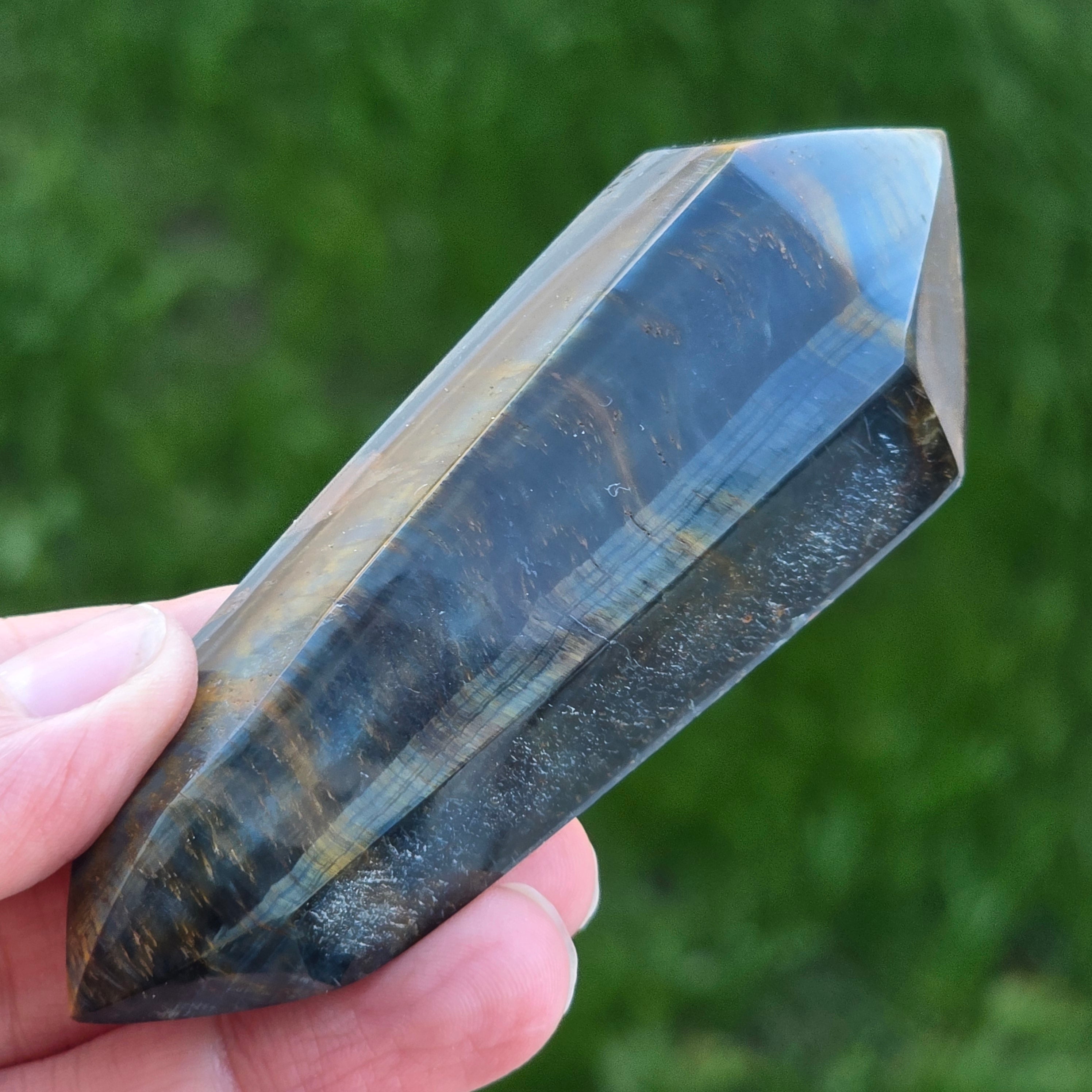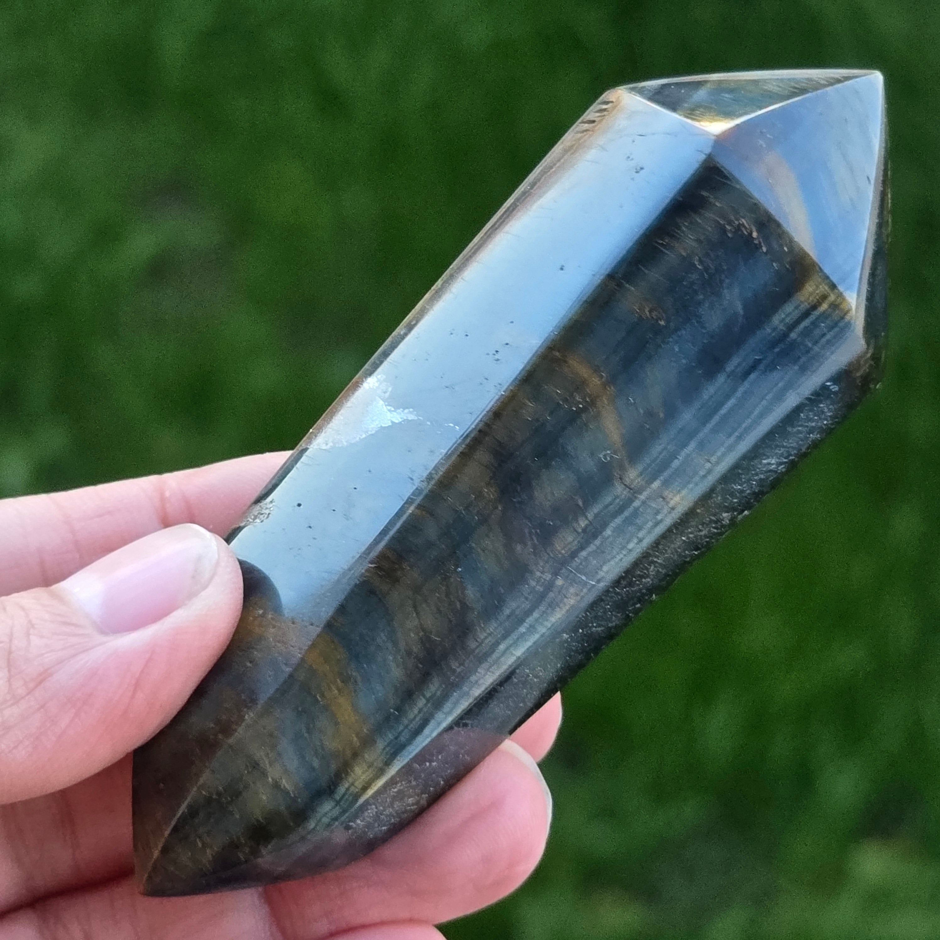 Recensioni - Bacchetta a doppia punta con occhio di tigre blu (occhio di falco) | Modello 4