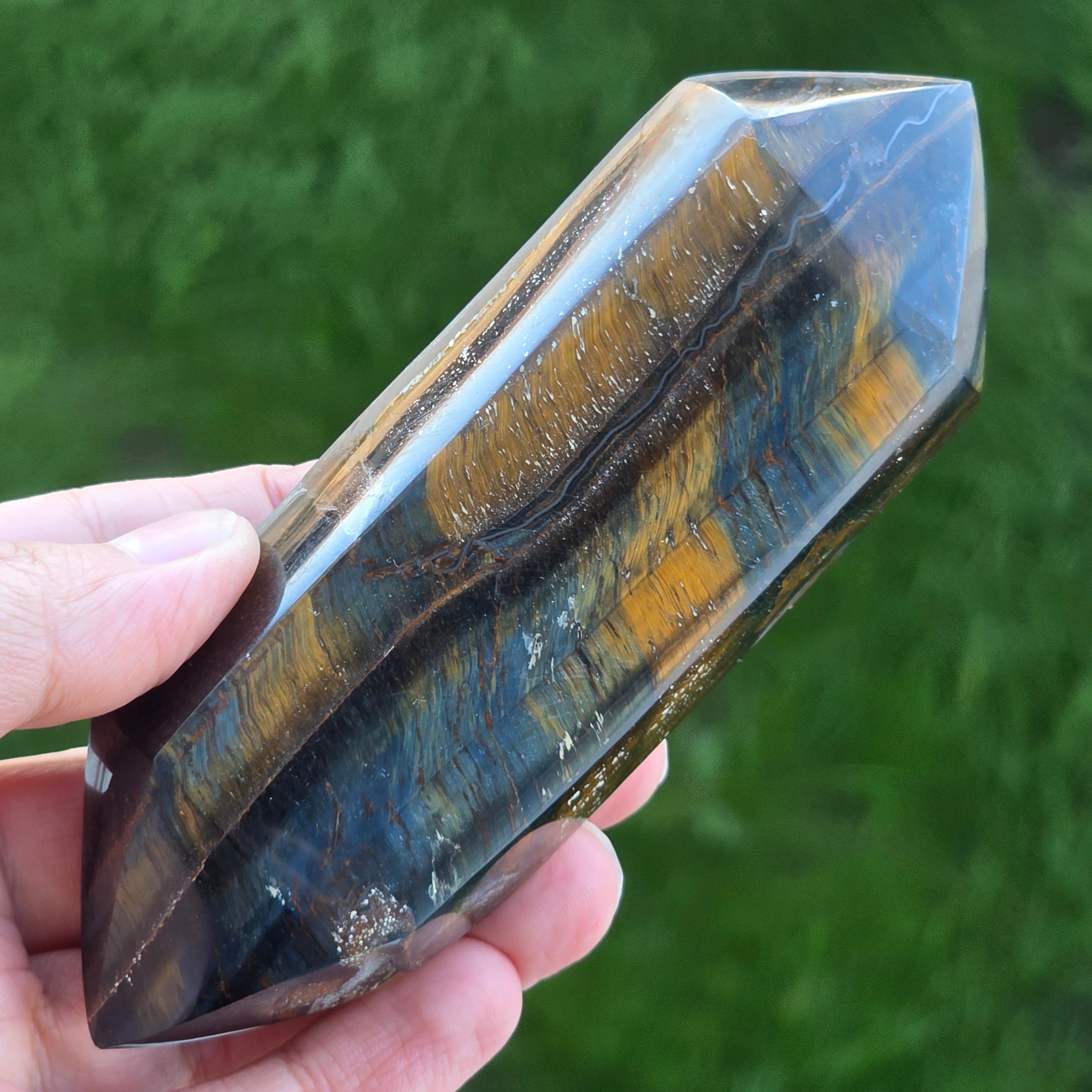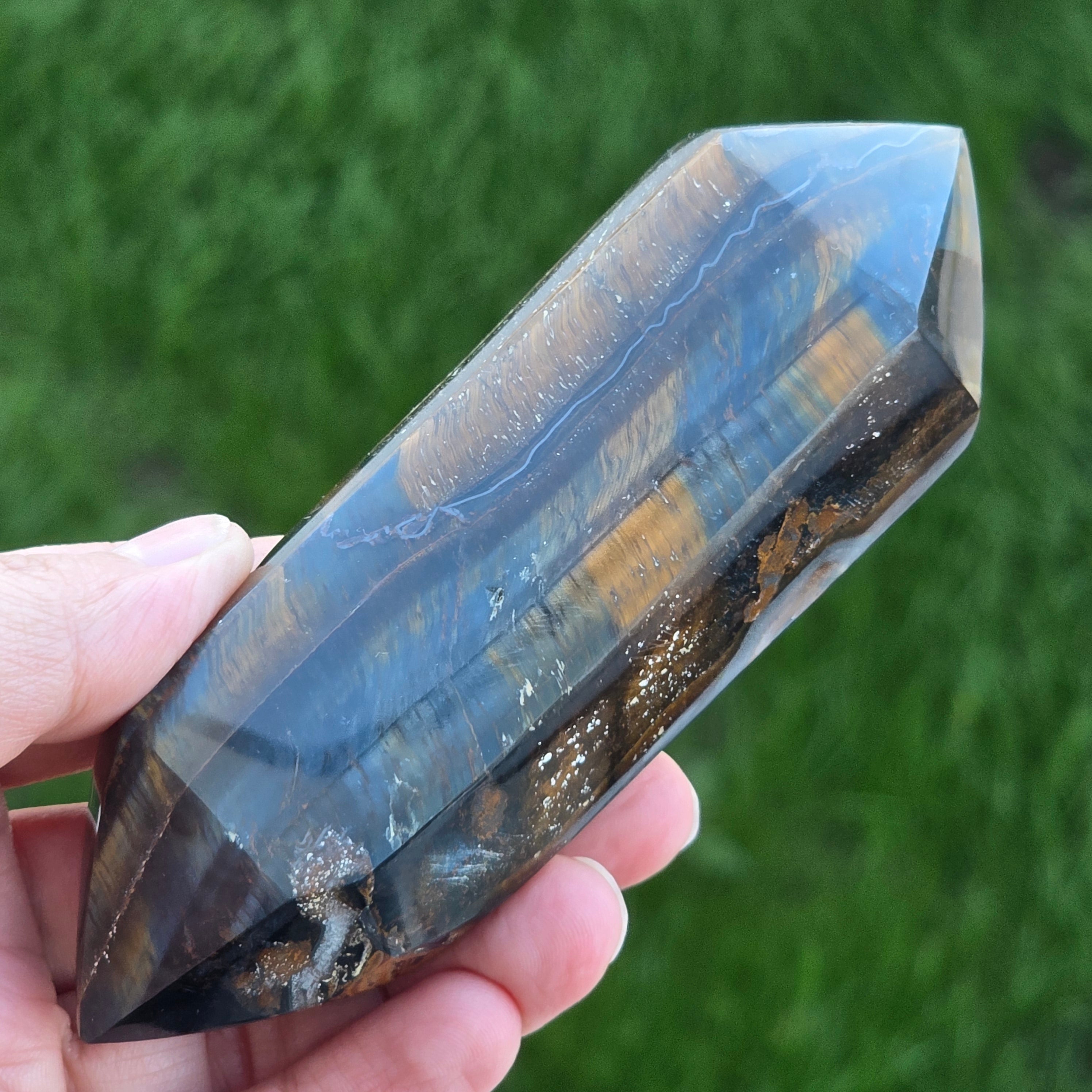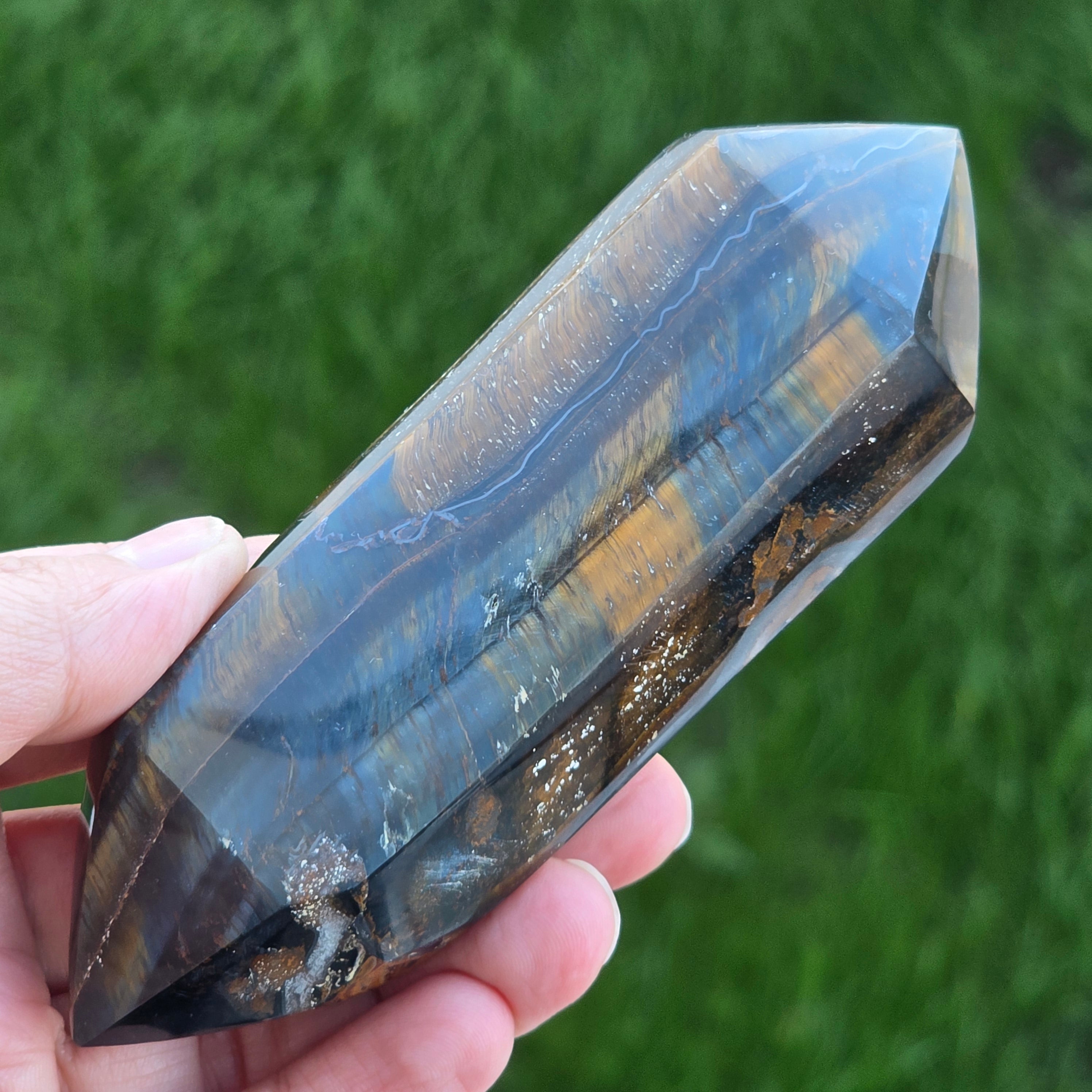 Descriere - Bacchetta doppia punta occhio di tigre blu (occhio di falco) | Modello 6
