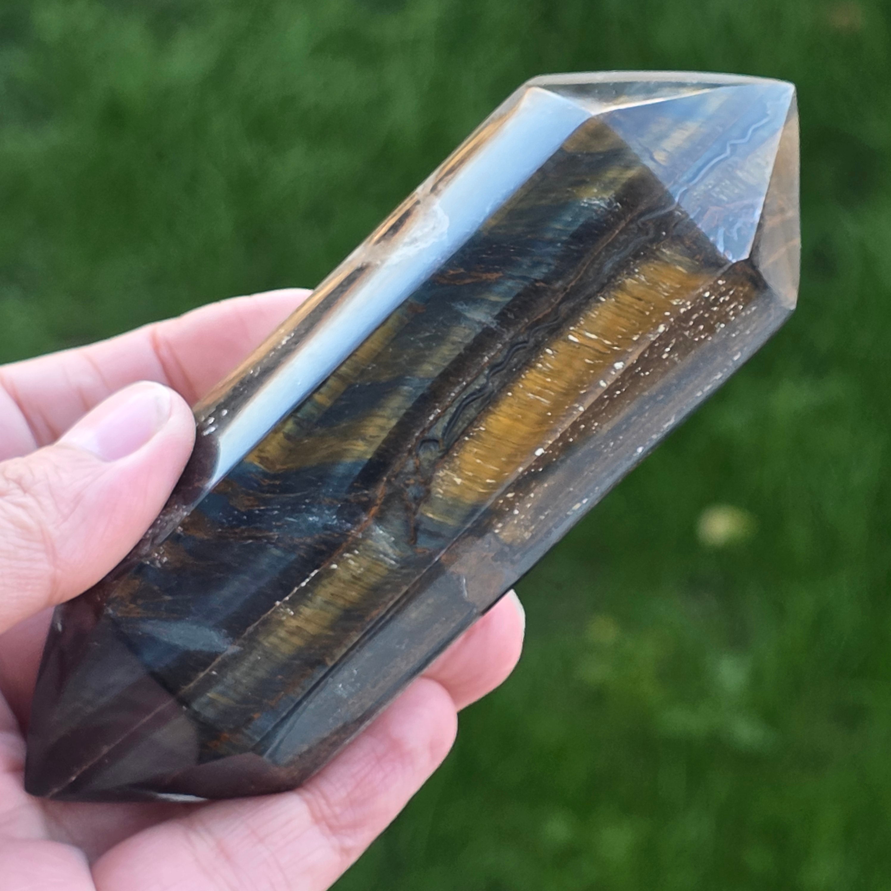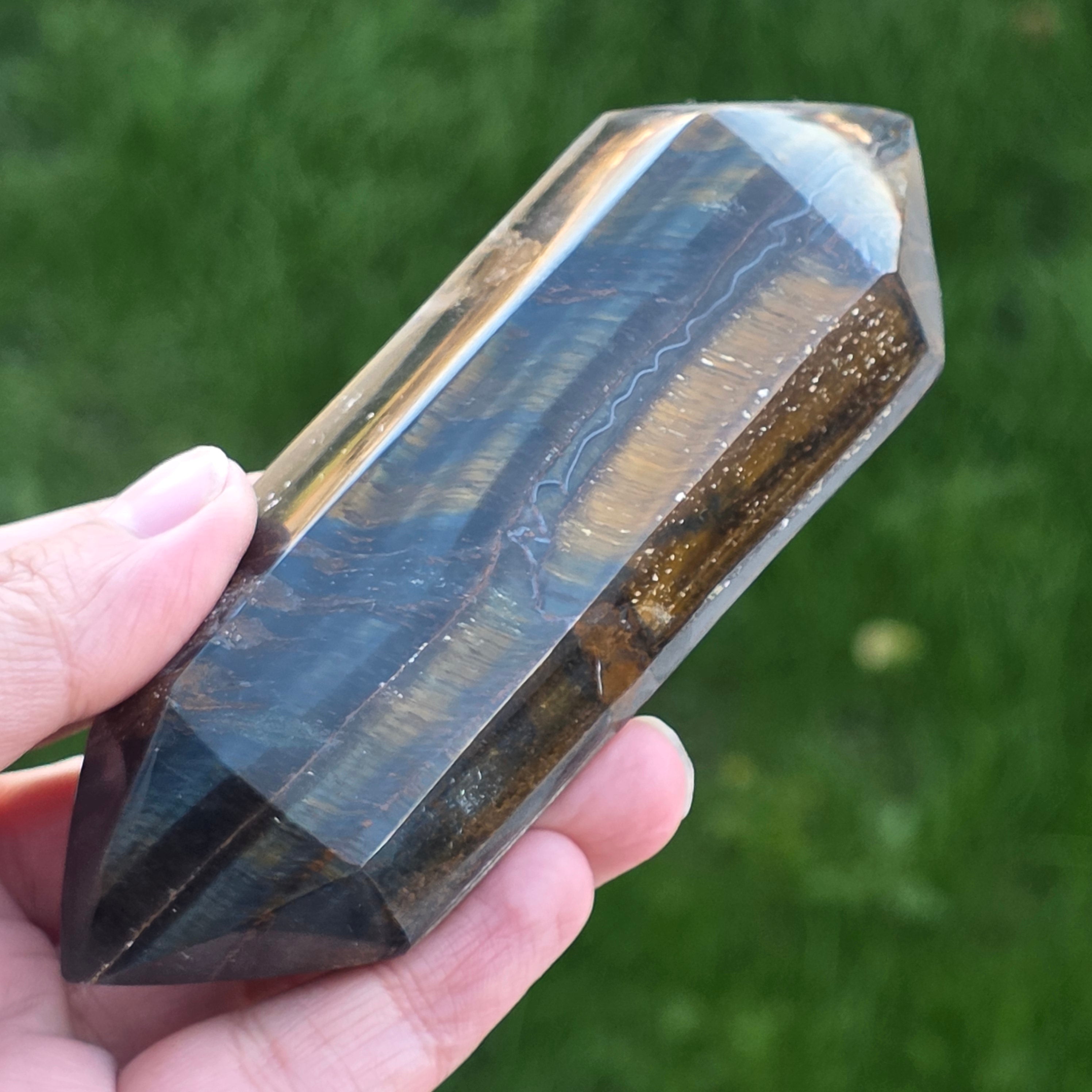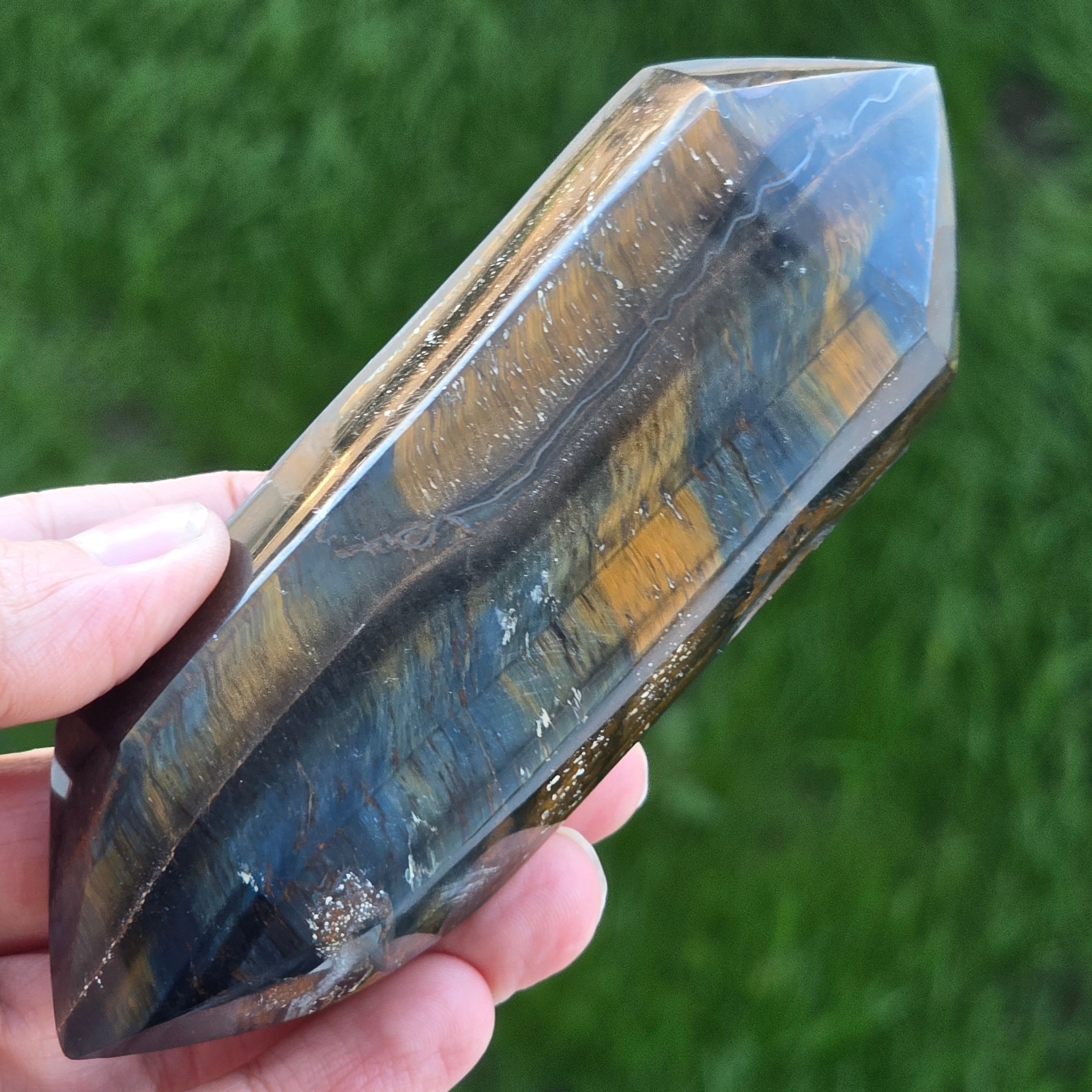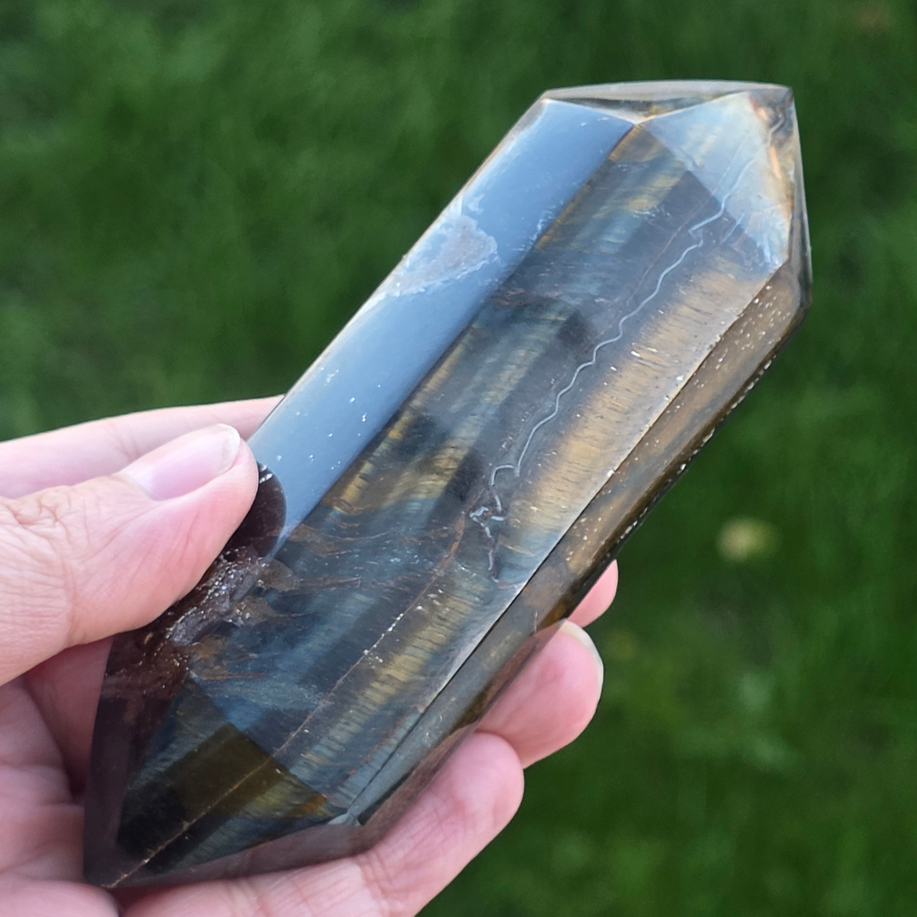 Descriere - Bacchetta doppia punta occhio di tigre blu (occhio di falco) | Modello 6