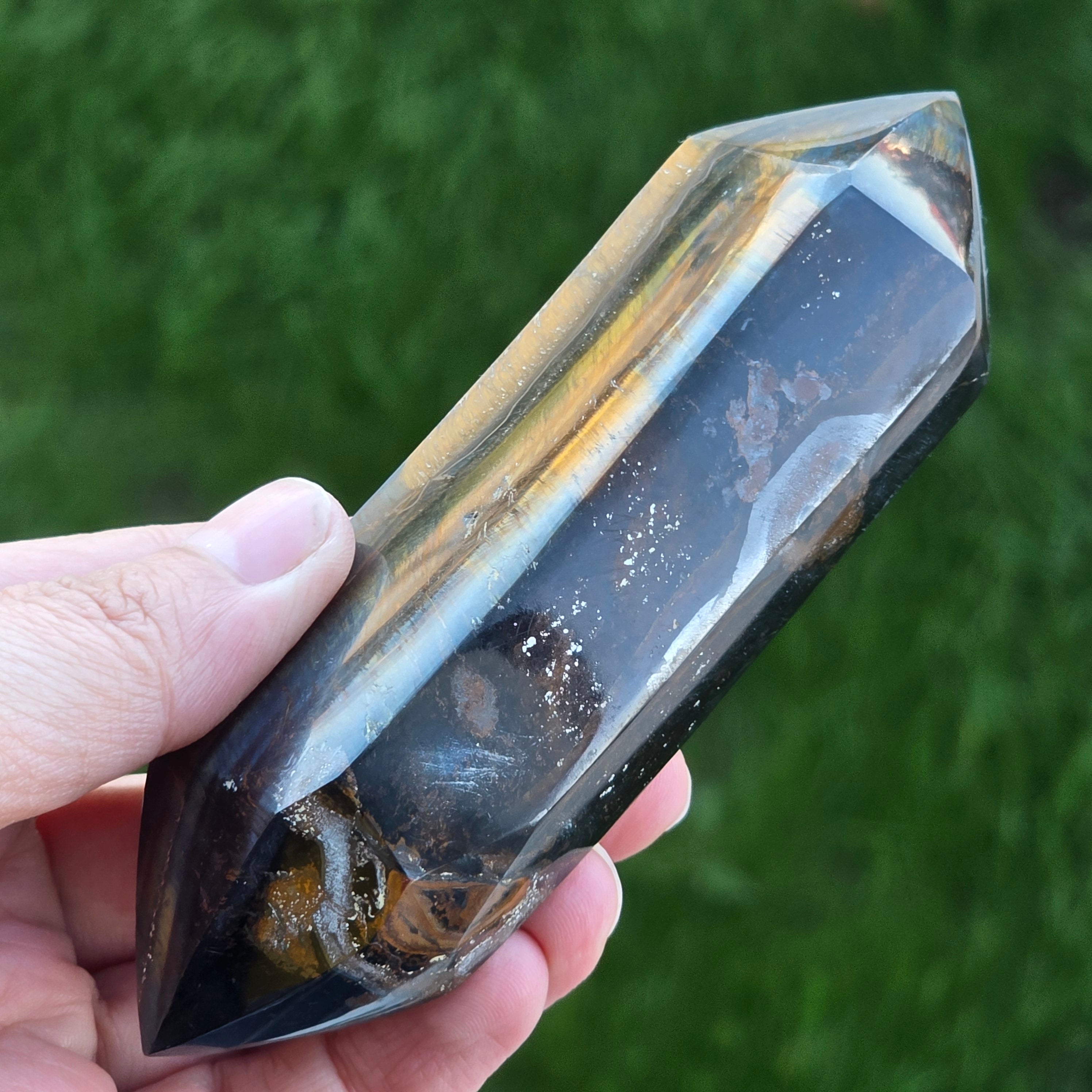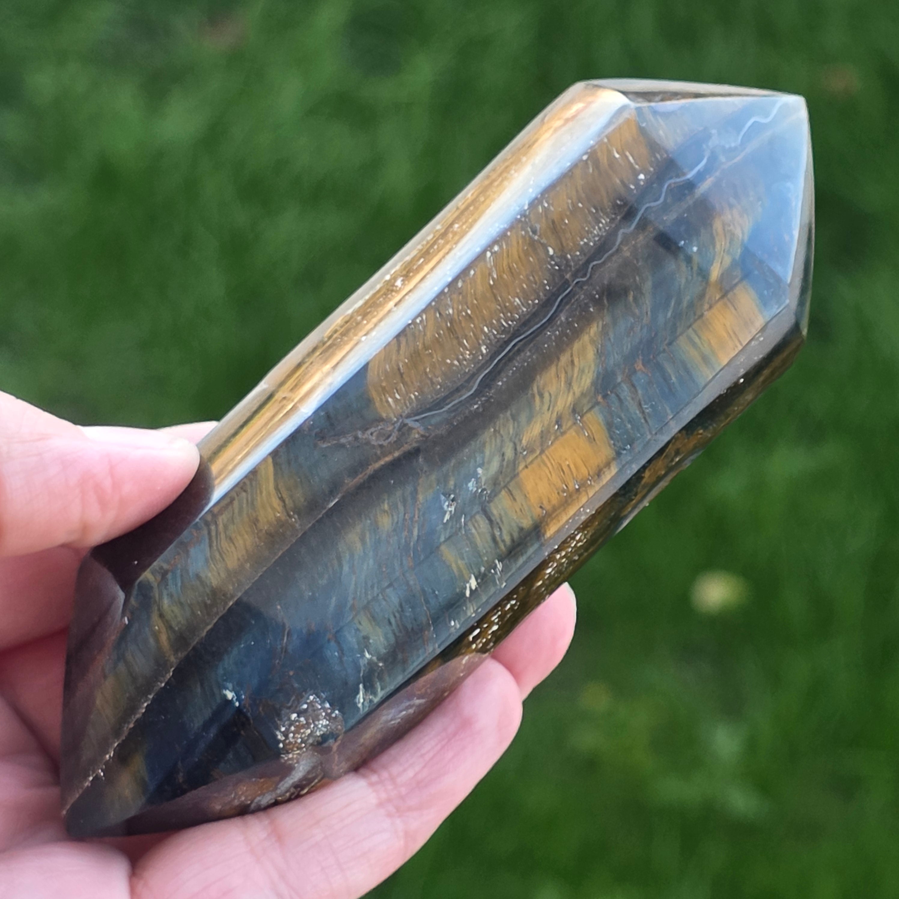 L'occhio di falco è una pietra semipreziosa con riflessi blu-metallici, che ricorda lo sguardo penetrante di un uccello predatore. Conosciuta come la pietra della visione chiara e della protezione, aiuta a scacciare le energie negative e ad amplificare l'intuizione. Si dice che offra coraggio di fronte al cambiamento e chiarezza mentale nei momenti di confusione. È spesso usata nelle pratiche di meditazione per connettersi con la verità interiore. Una scelta ideale per chi cerca potere interiore e stabilità emotiva.