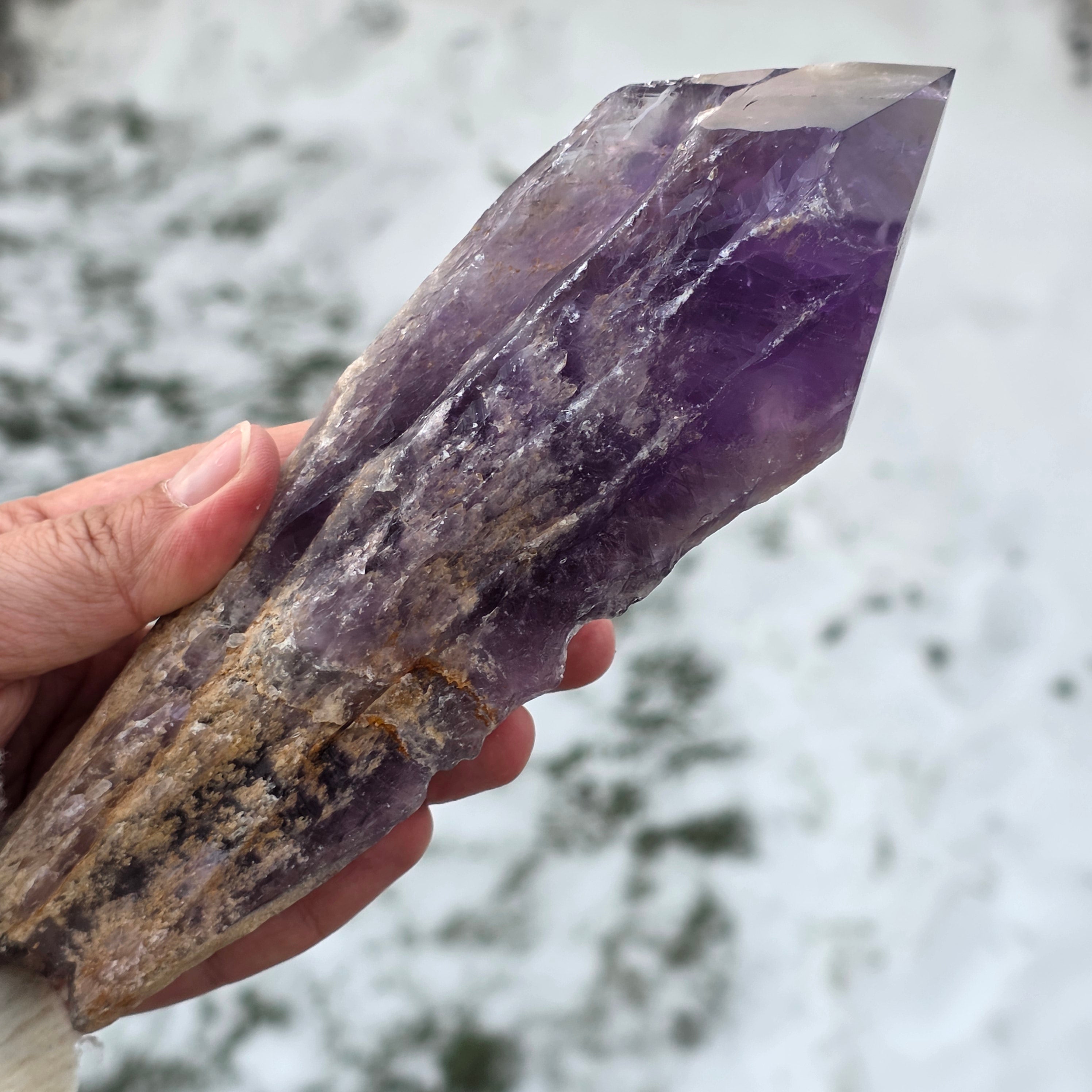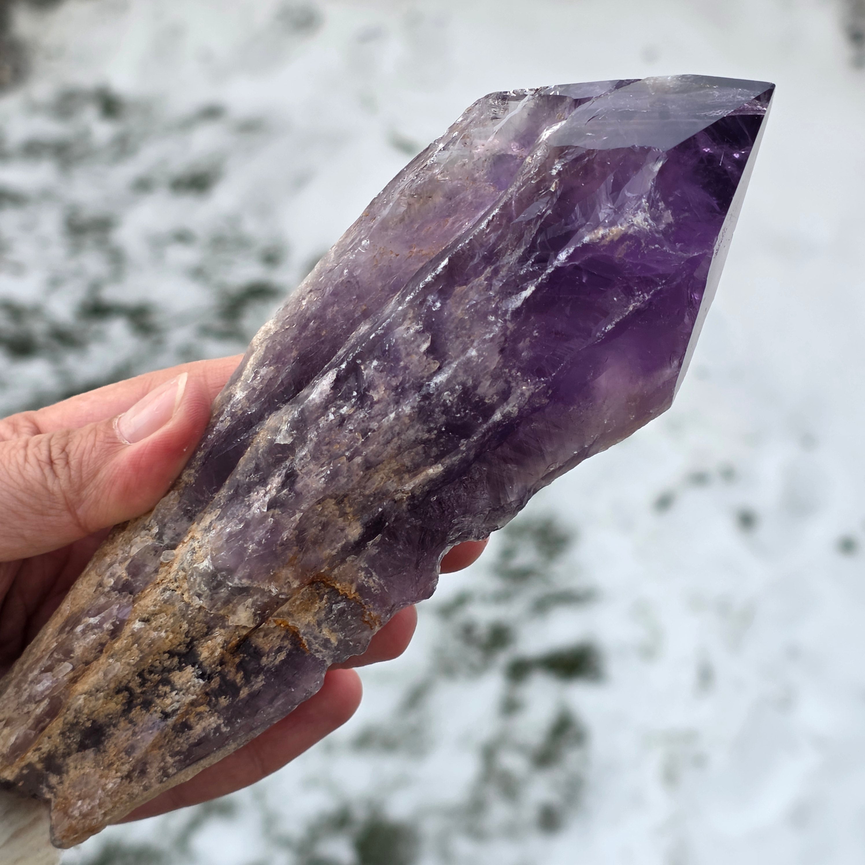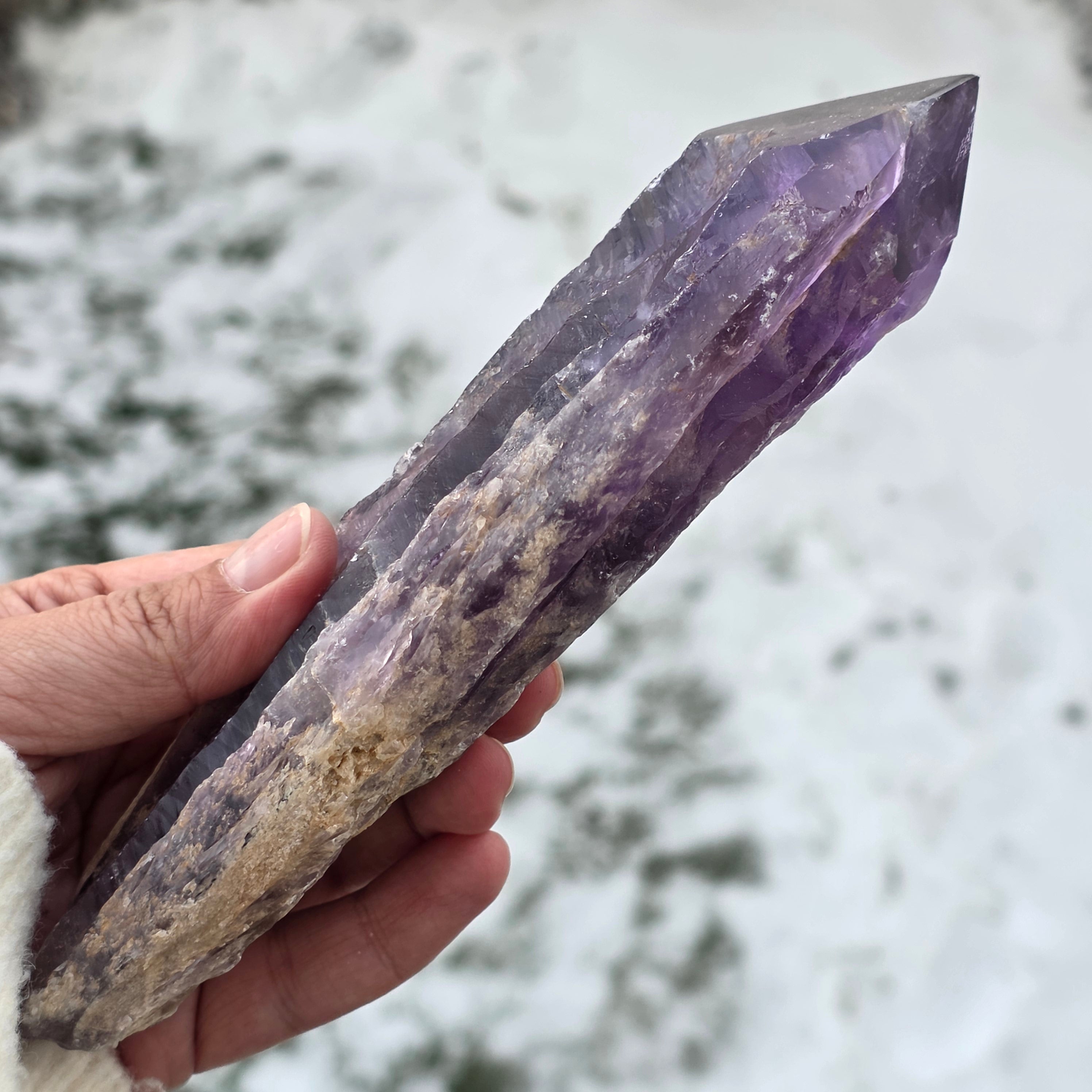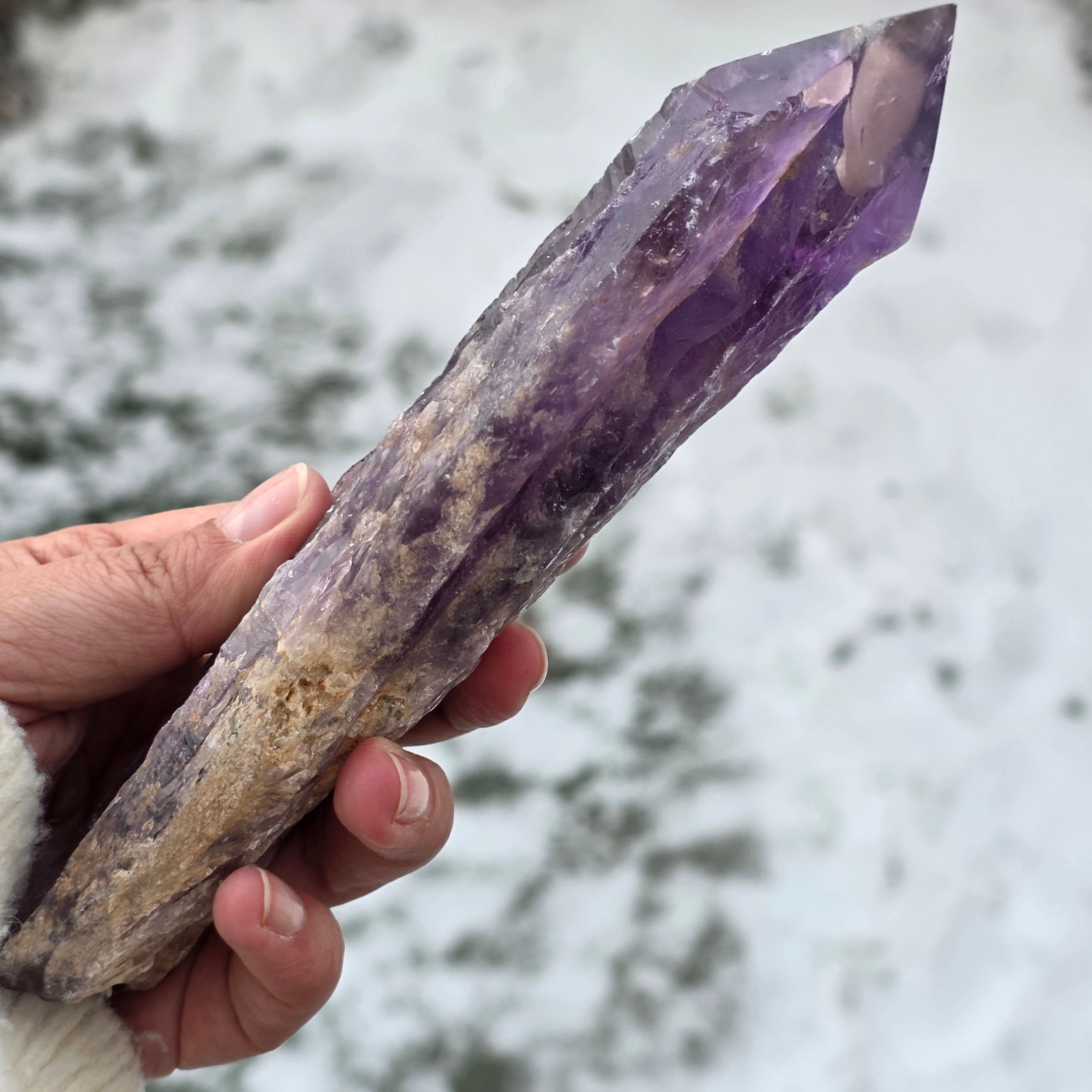 L'ametista Bahia, talvolta chiamata anche "L'Angolo del Drago", è estratta dalla regione Bahia, Brasile. Ogni cristallo è un esemplare naturale unico, con una forma cristallina ben definita e presenta spine o protuberanze lungo tutta la sua lunghezza. Questi cristalli non sono staccati da un gruppo più grande, ma si formano individualmente, uno alla volta.