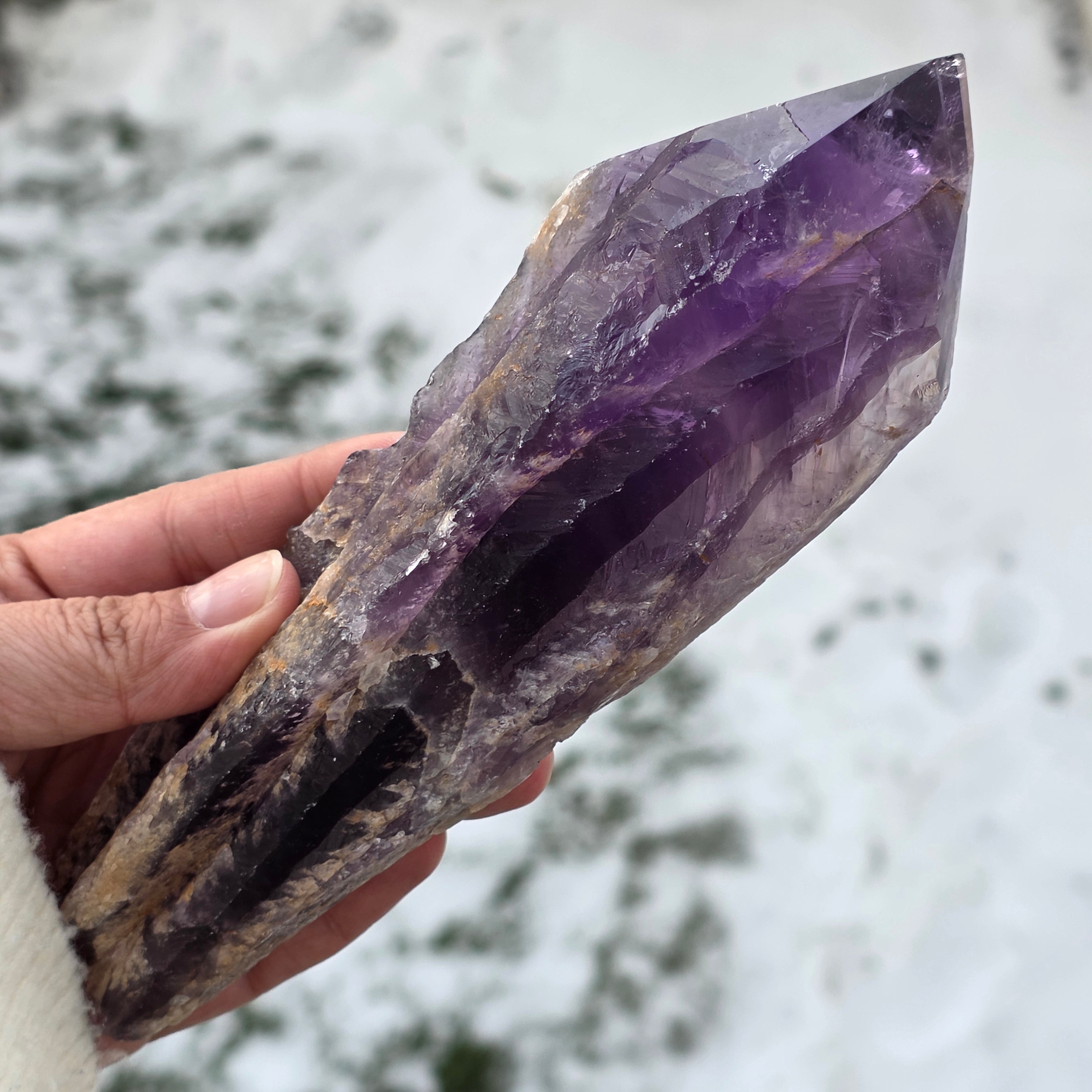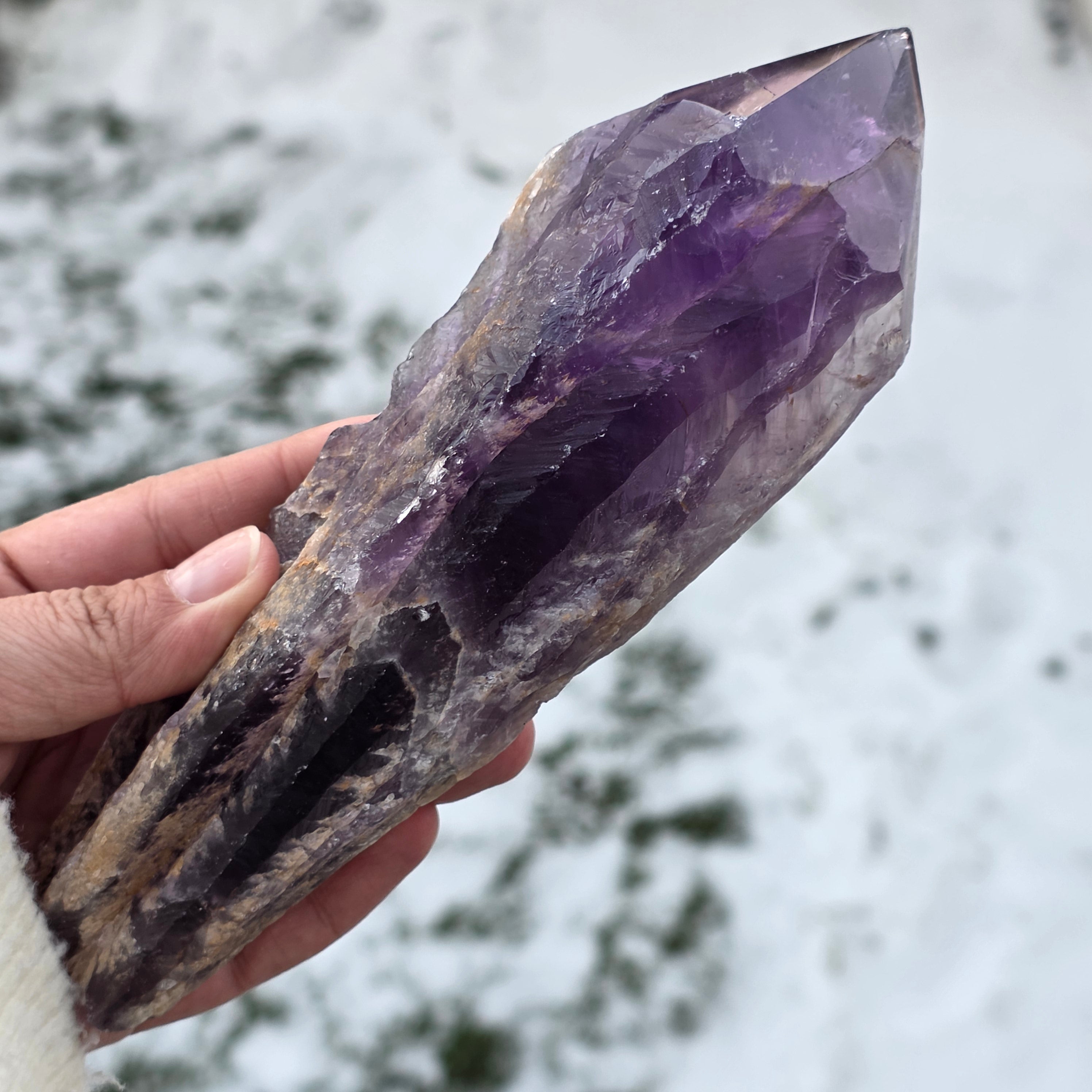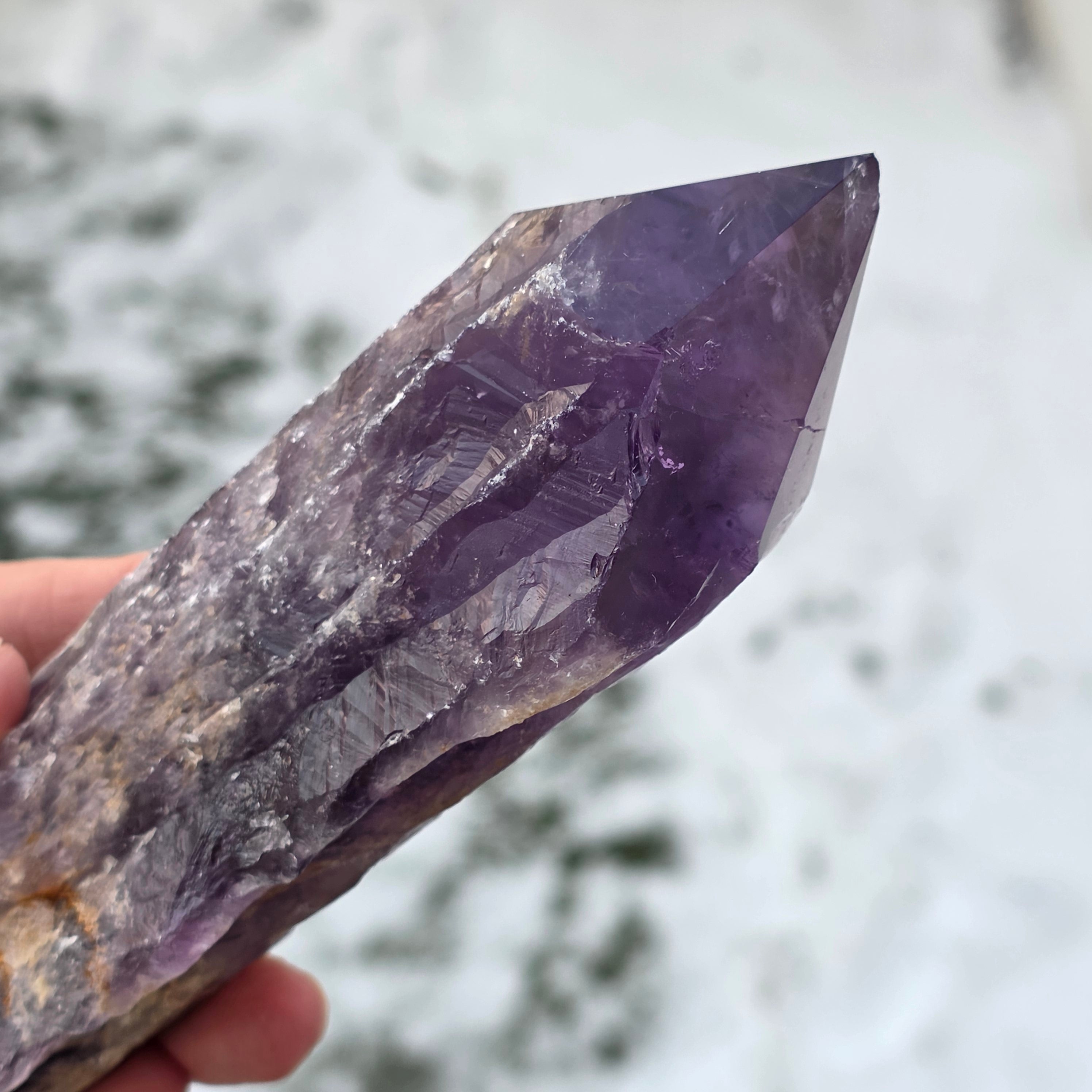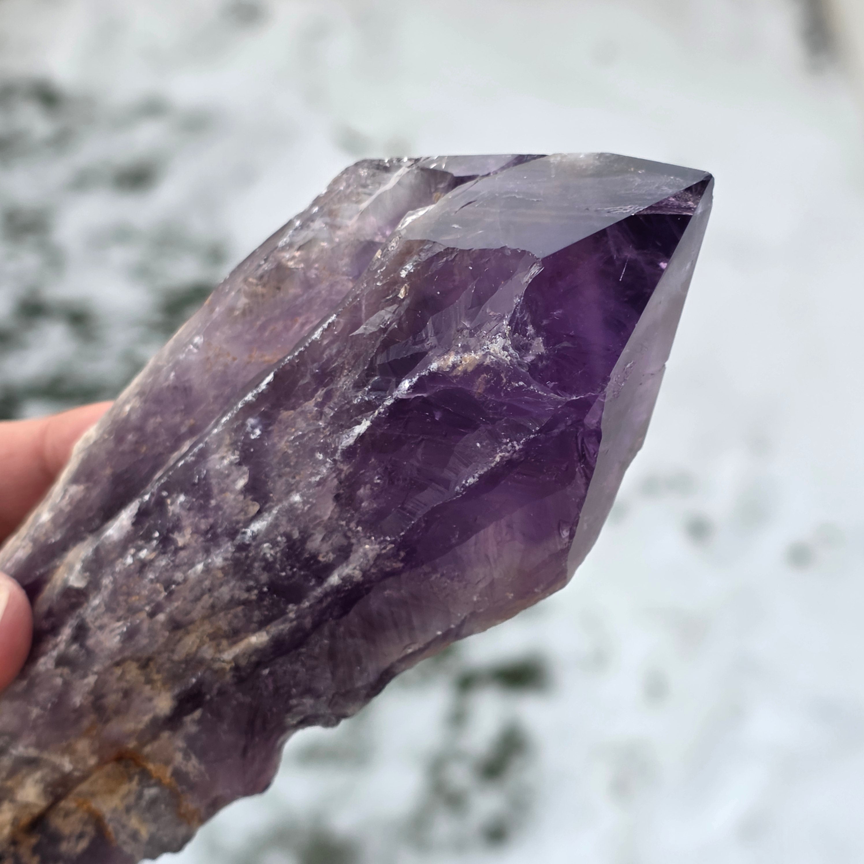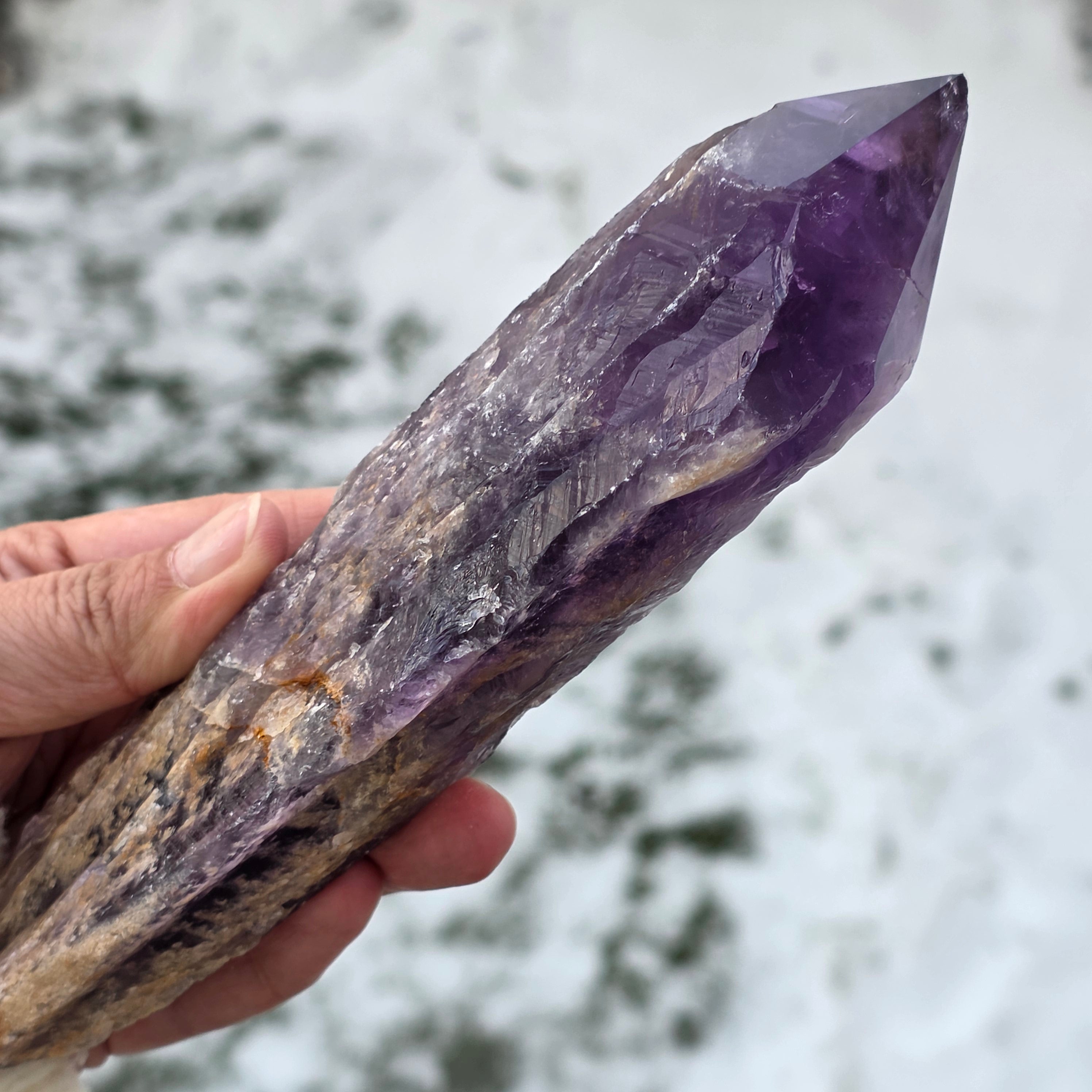 L'ametista Bahia, talvolta chiamata anche "L'Angolo del Drago", è estratta dalla regione Bahia, Brasile. Ogni cristallo è un esemplare naturale unico, con una forma cristallina ben definita e presenta spine o protuberanze lungo tutta la sua lunghezza. Questi cristalli non sono staccati da un gruppo più grande, ma si formano individualmente, uno alla volta.
