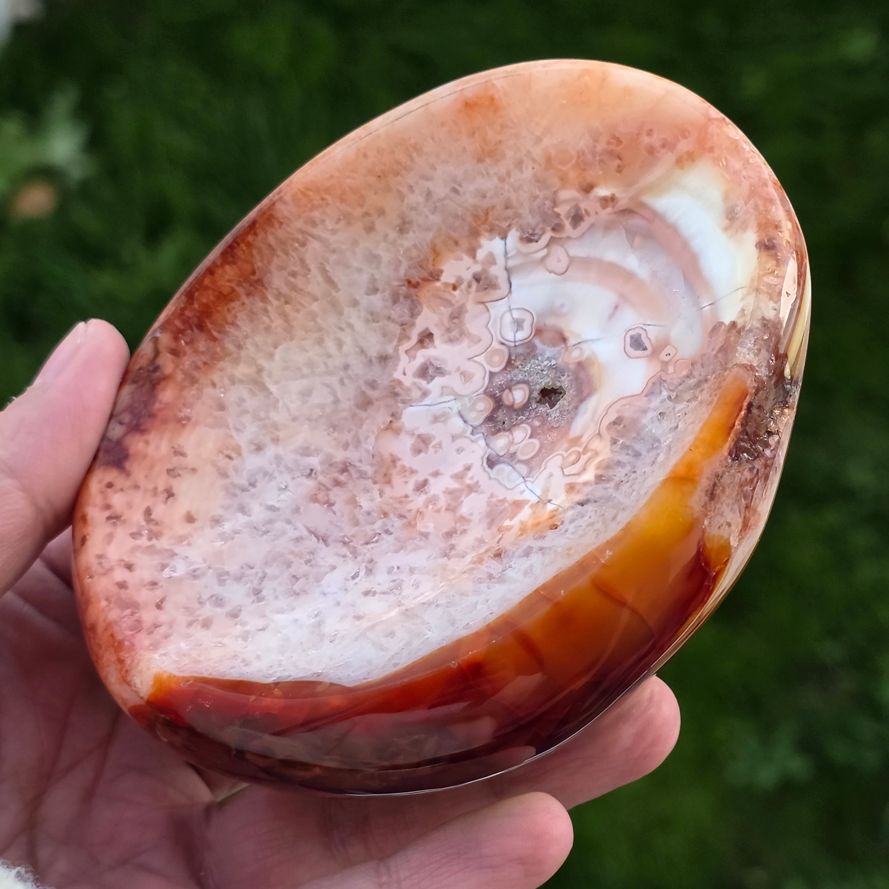 Bol din carneol natural unicat, provenit din Madagascar, sculptat cu grijă pentru a evidenția frumusețea naturală a pietrei.