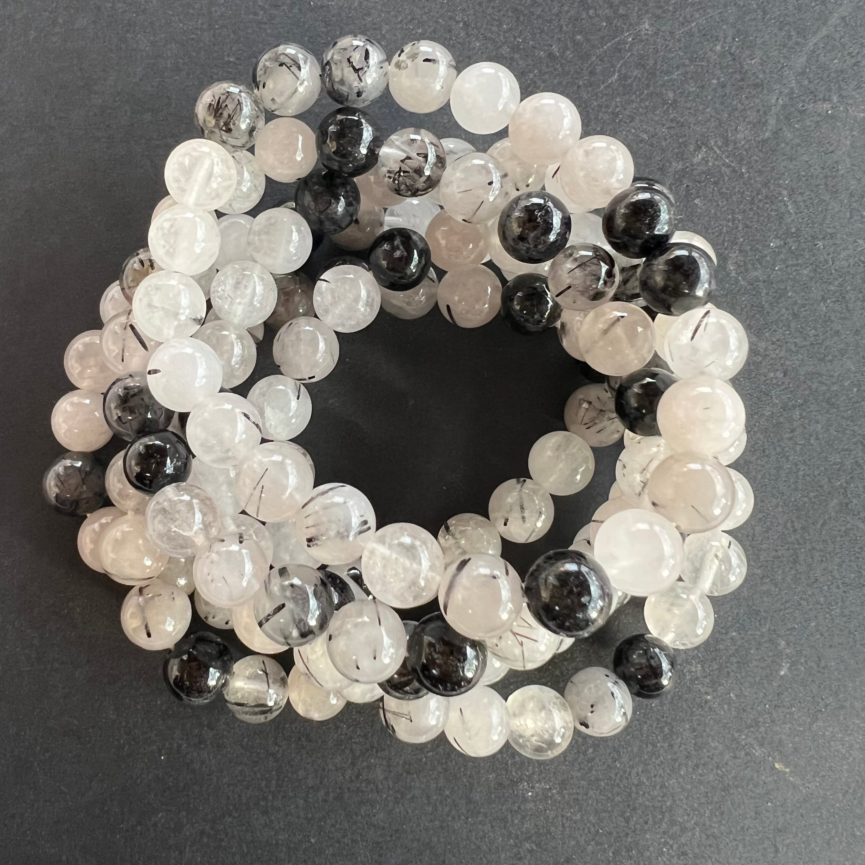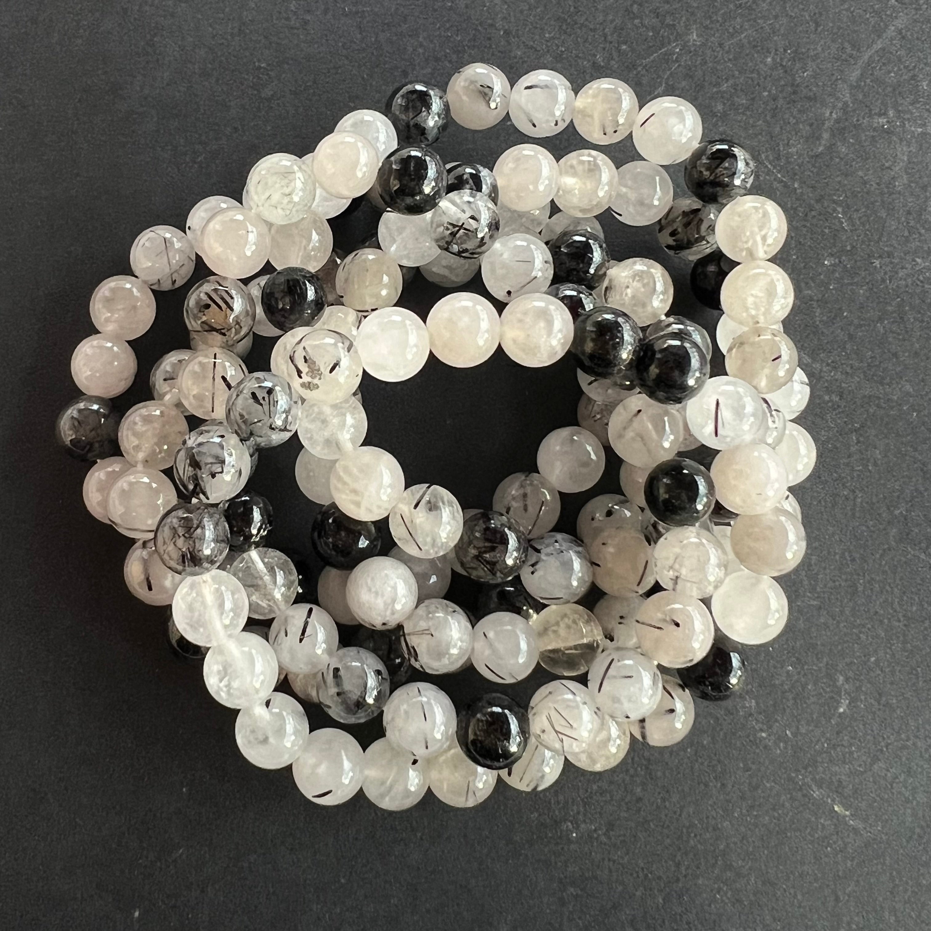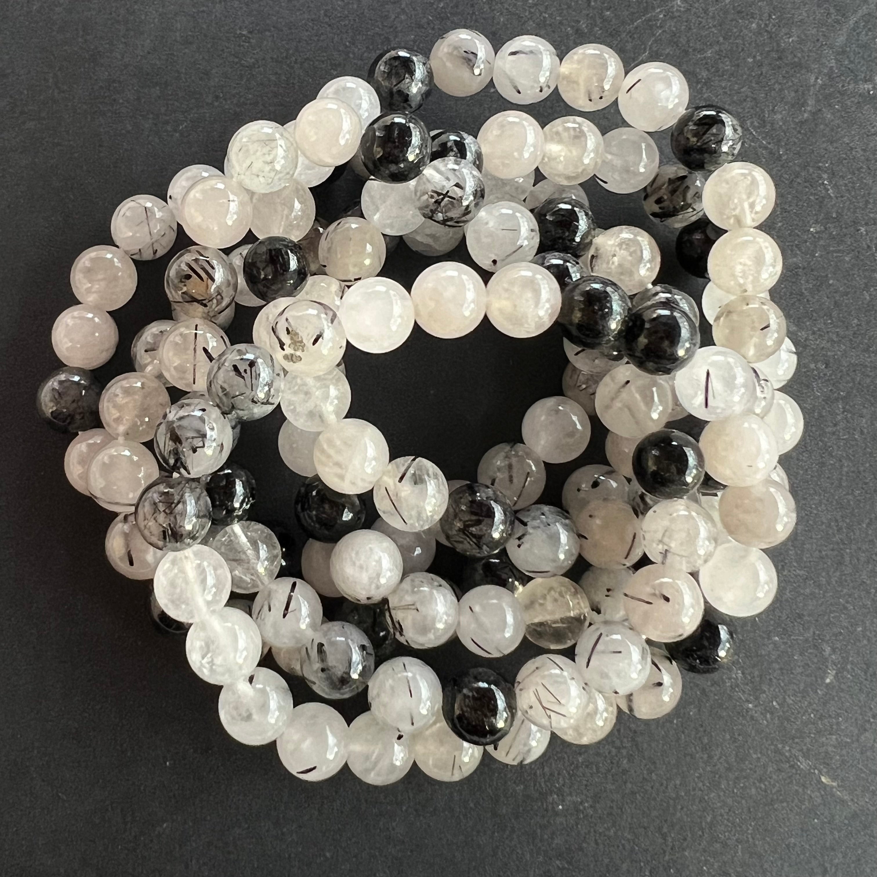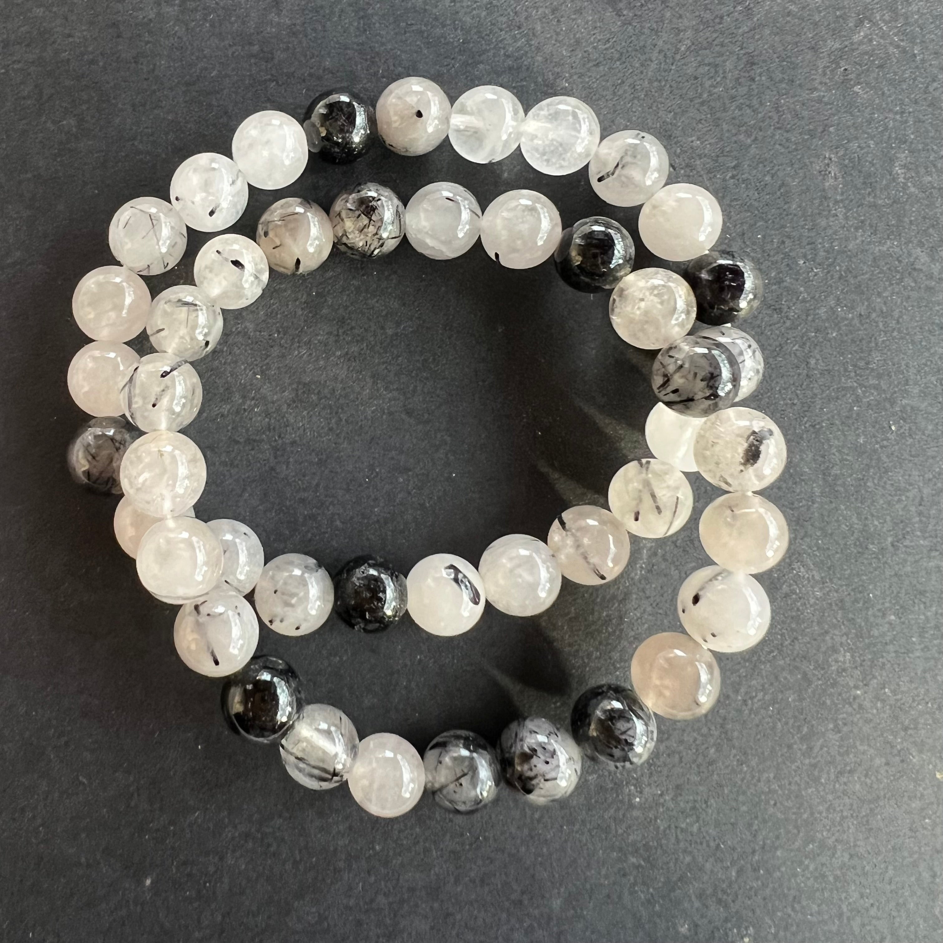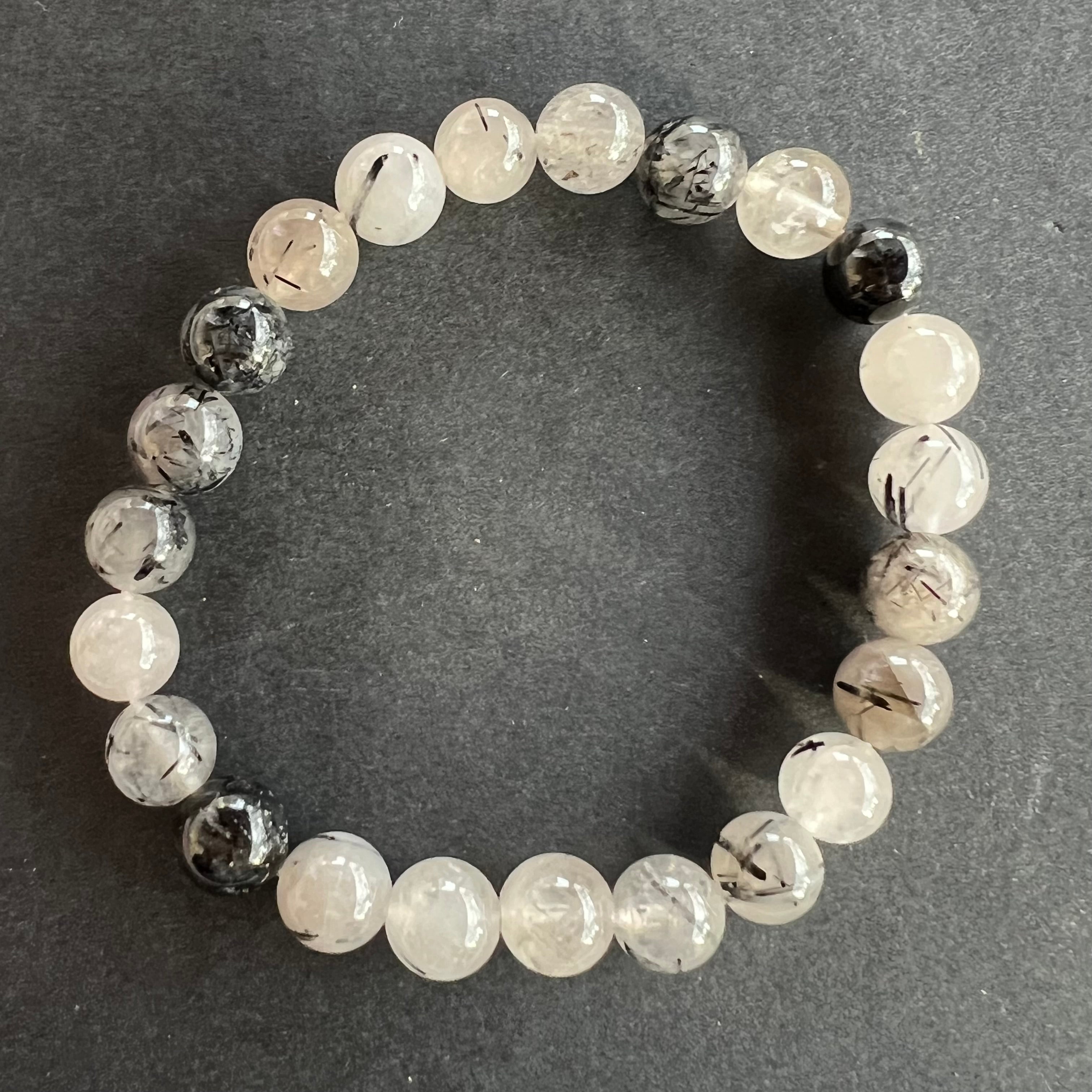 Braccialetto di quarzo con tormalina nero 8 mm