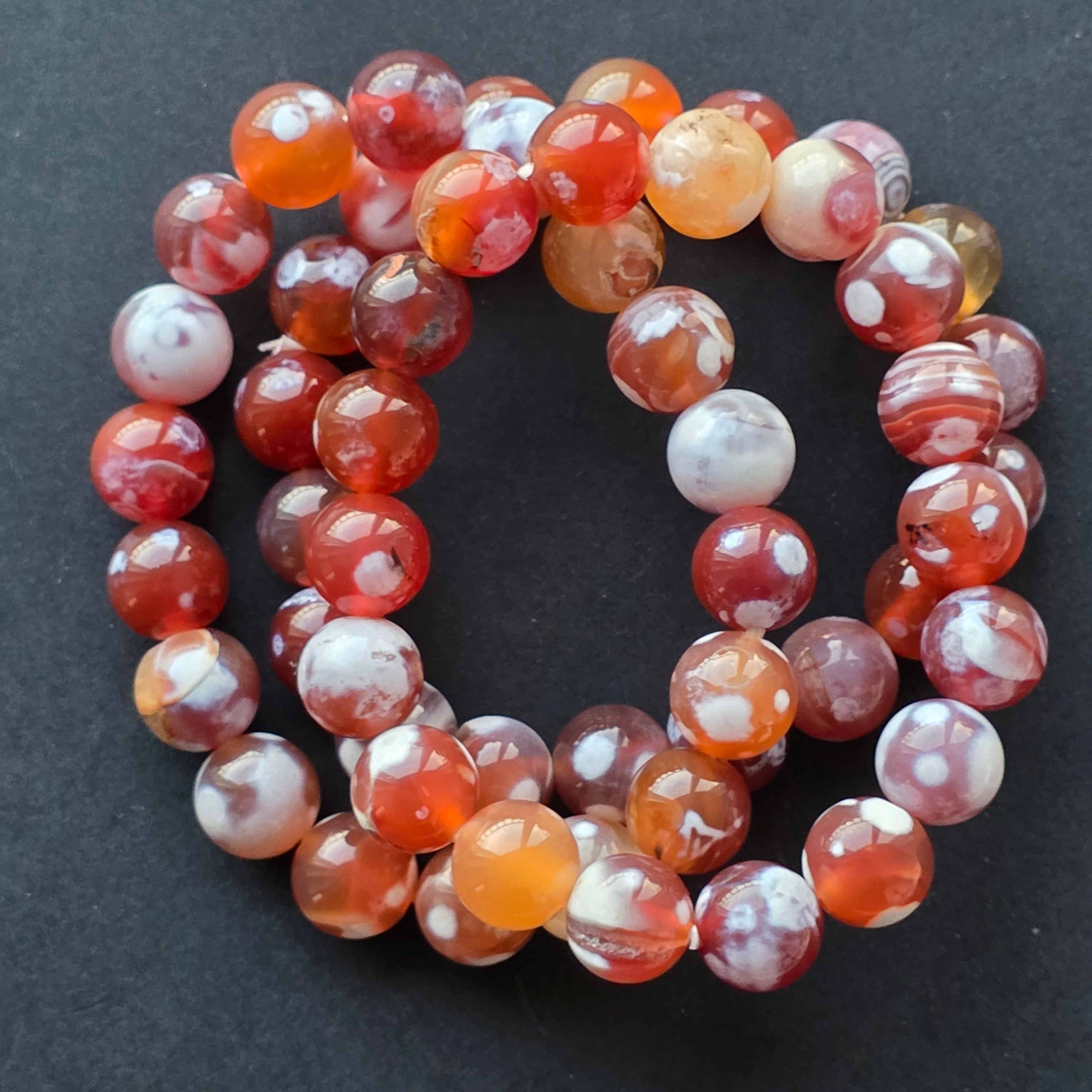 • Pietra: agata arancione (agate fire) – perle sferiche 10–11 mm