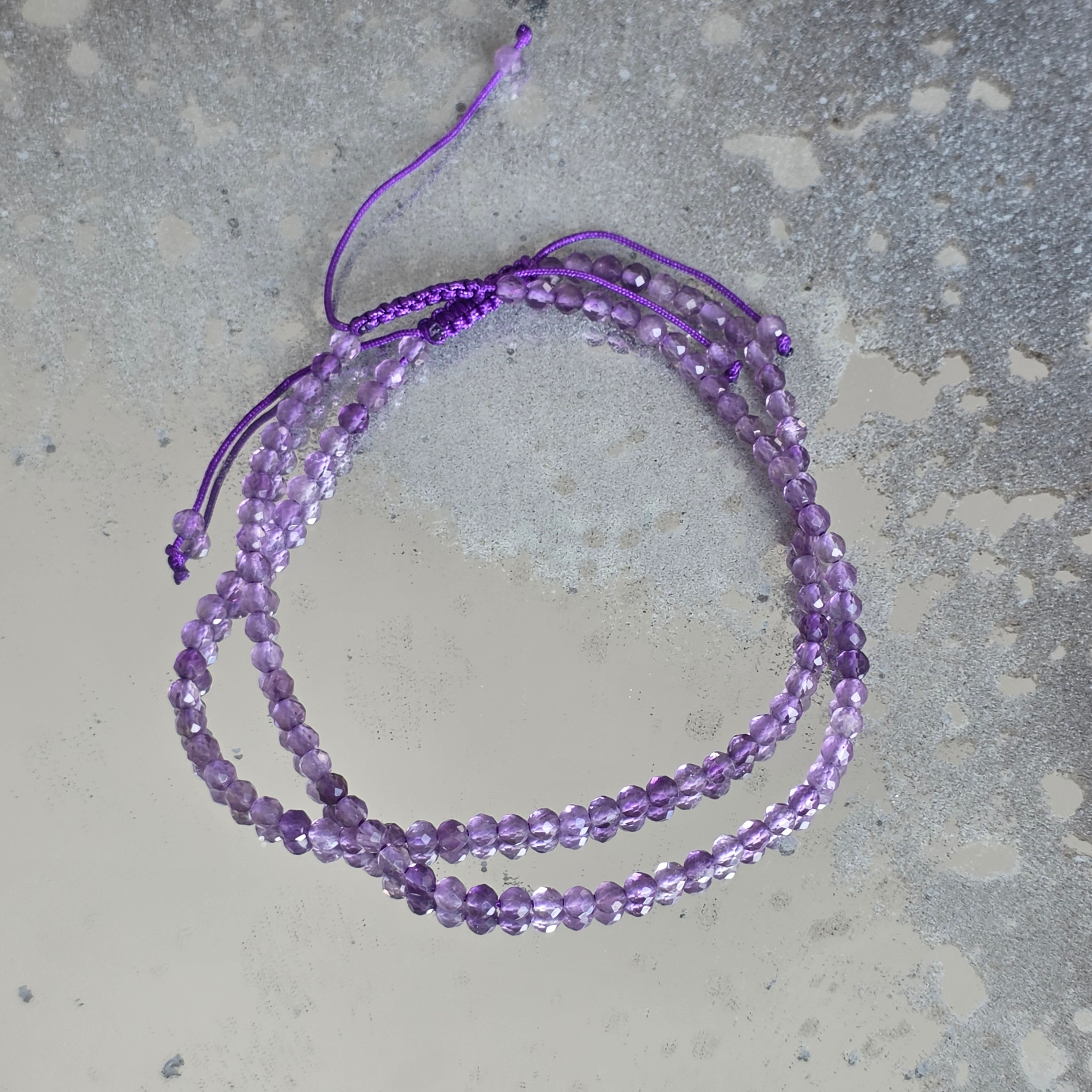 Braccialetto Sfaccettato Ametista 3 mm Corda Regolabile