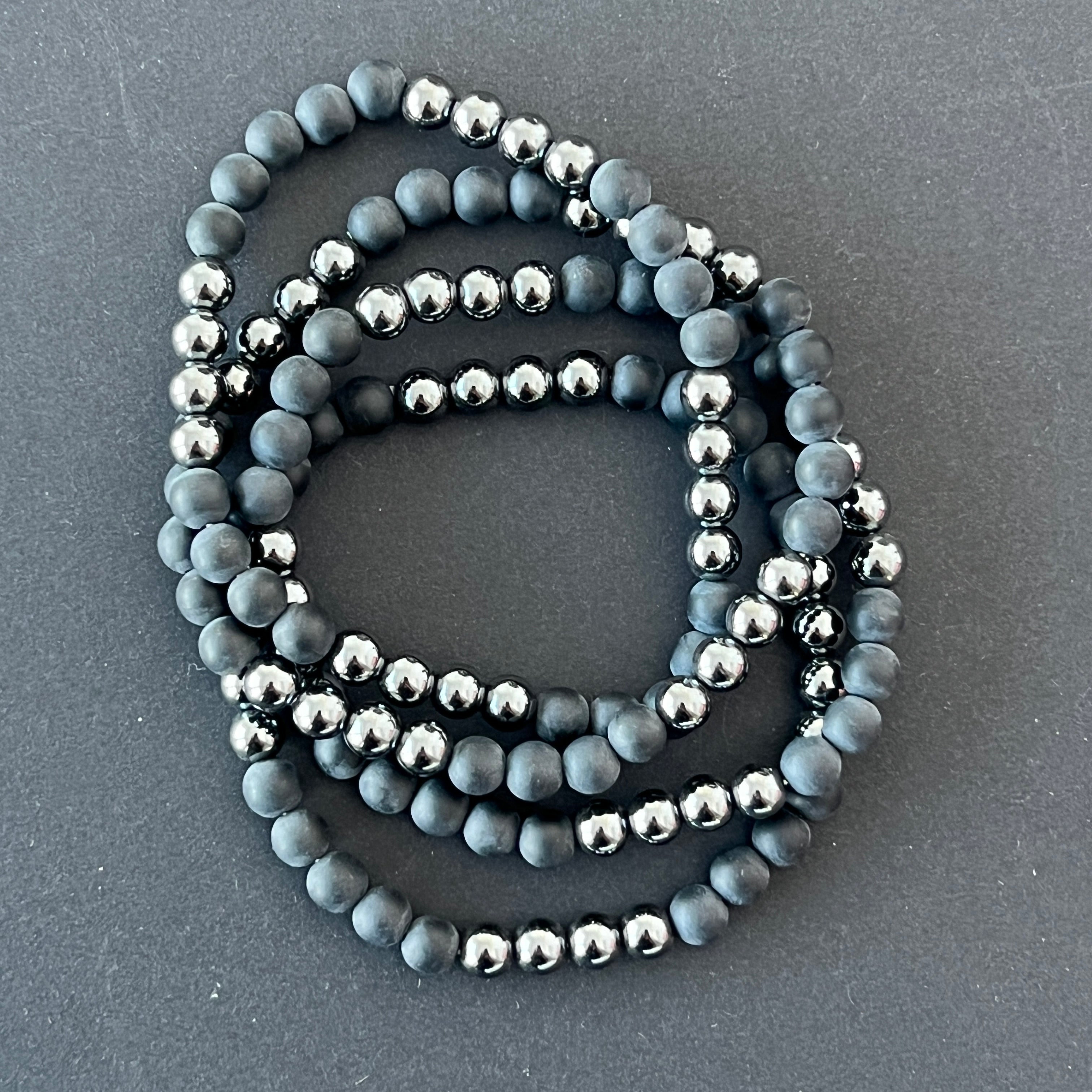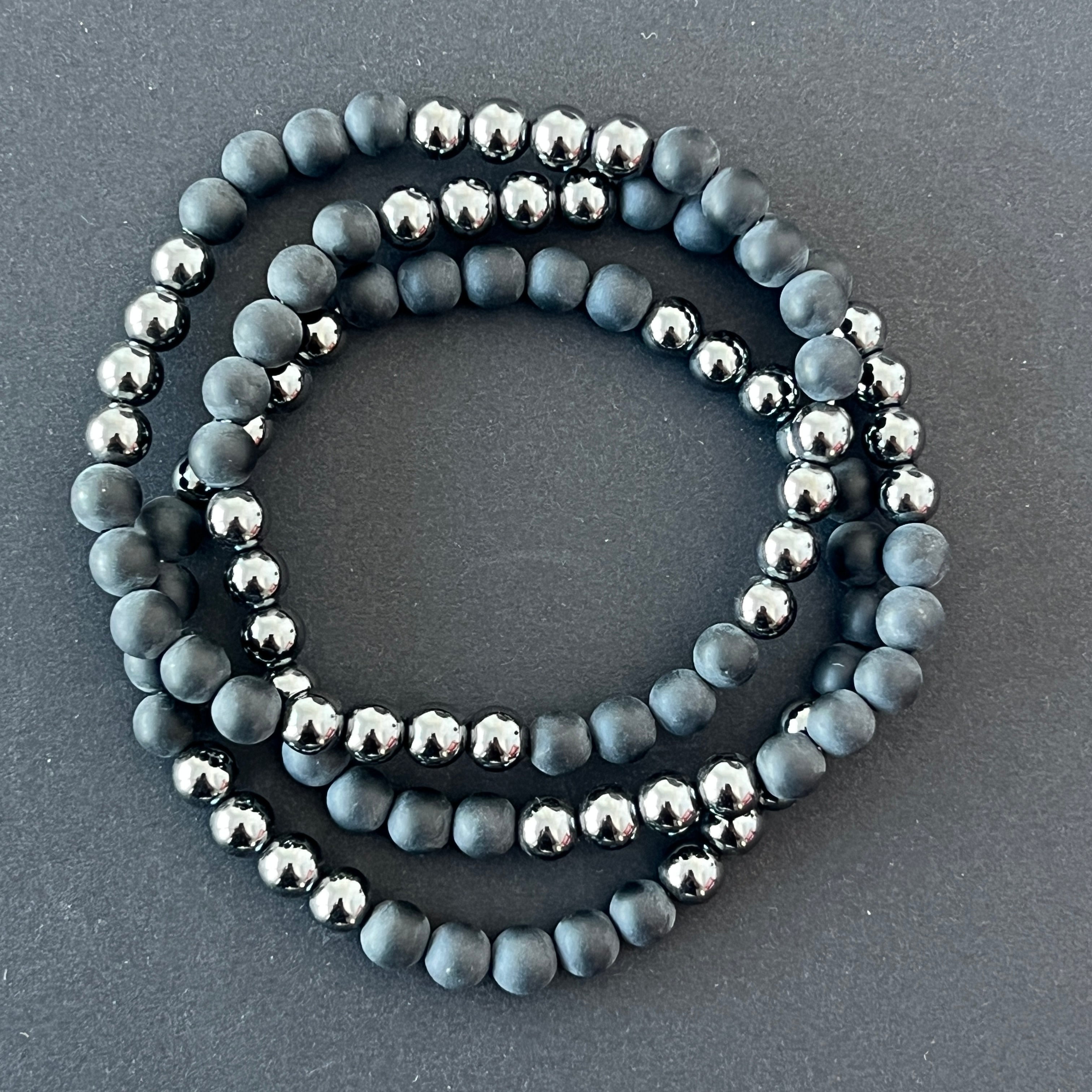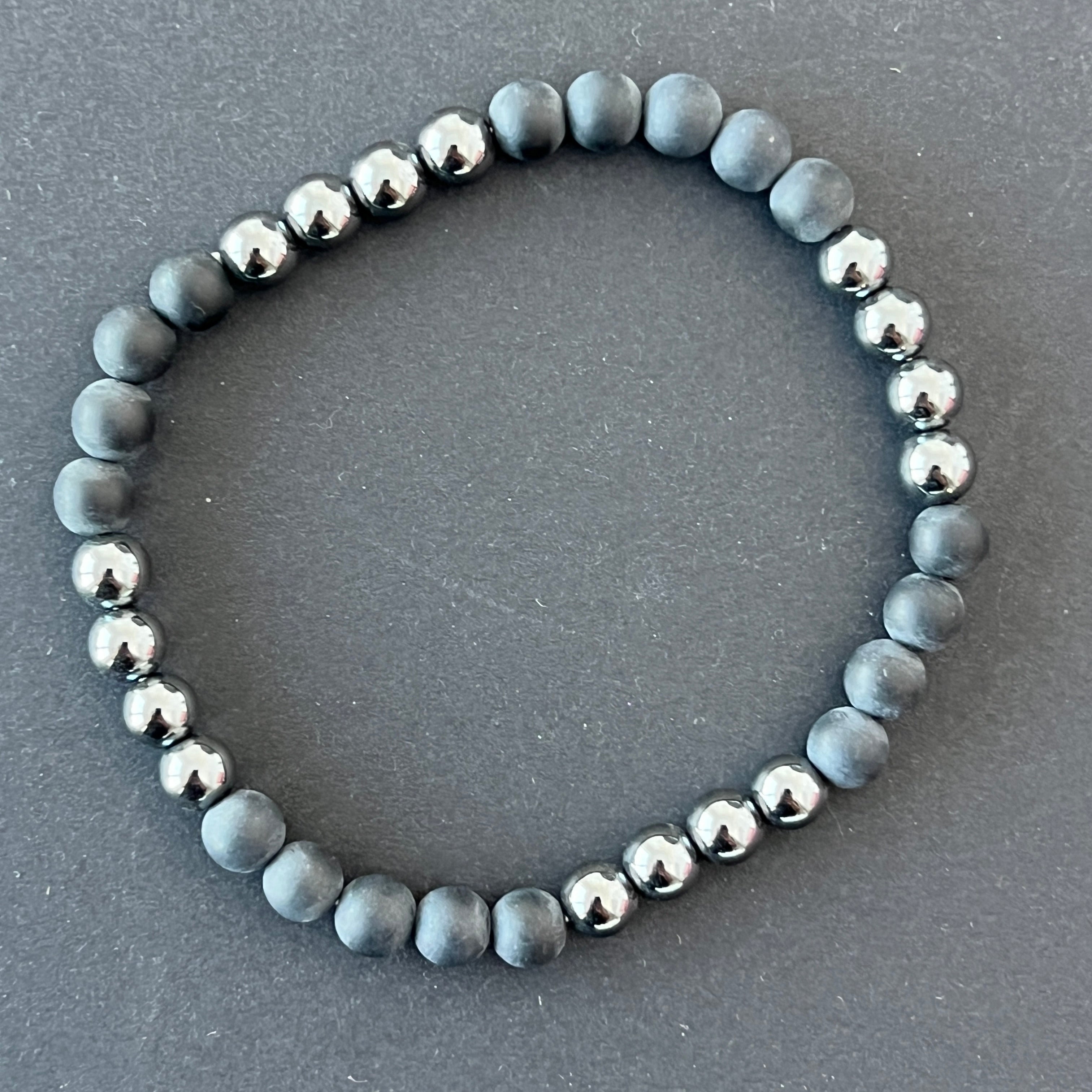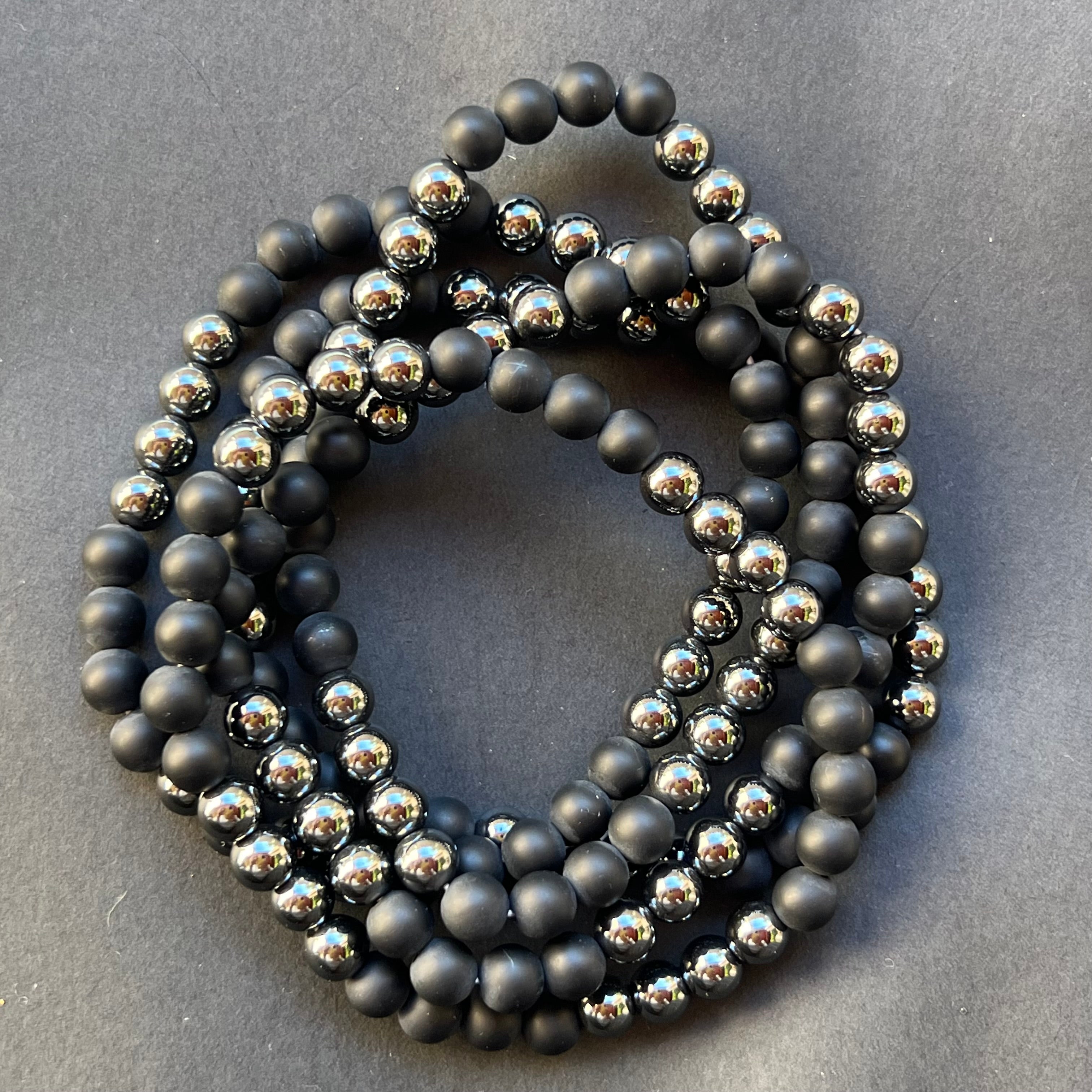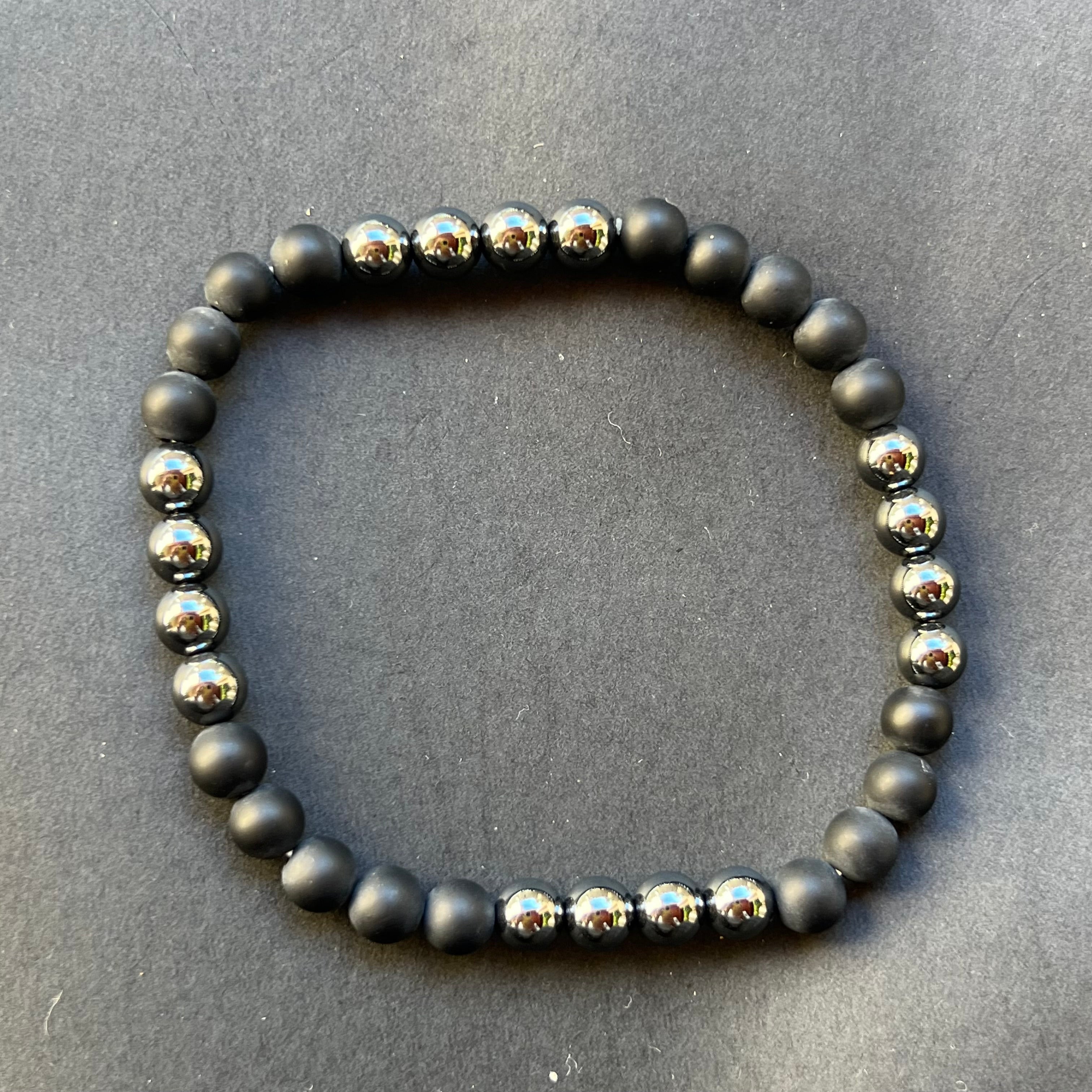 Descriere - Bratara barbati onix negru cu hematit 6 mm