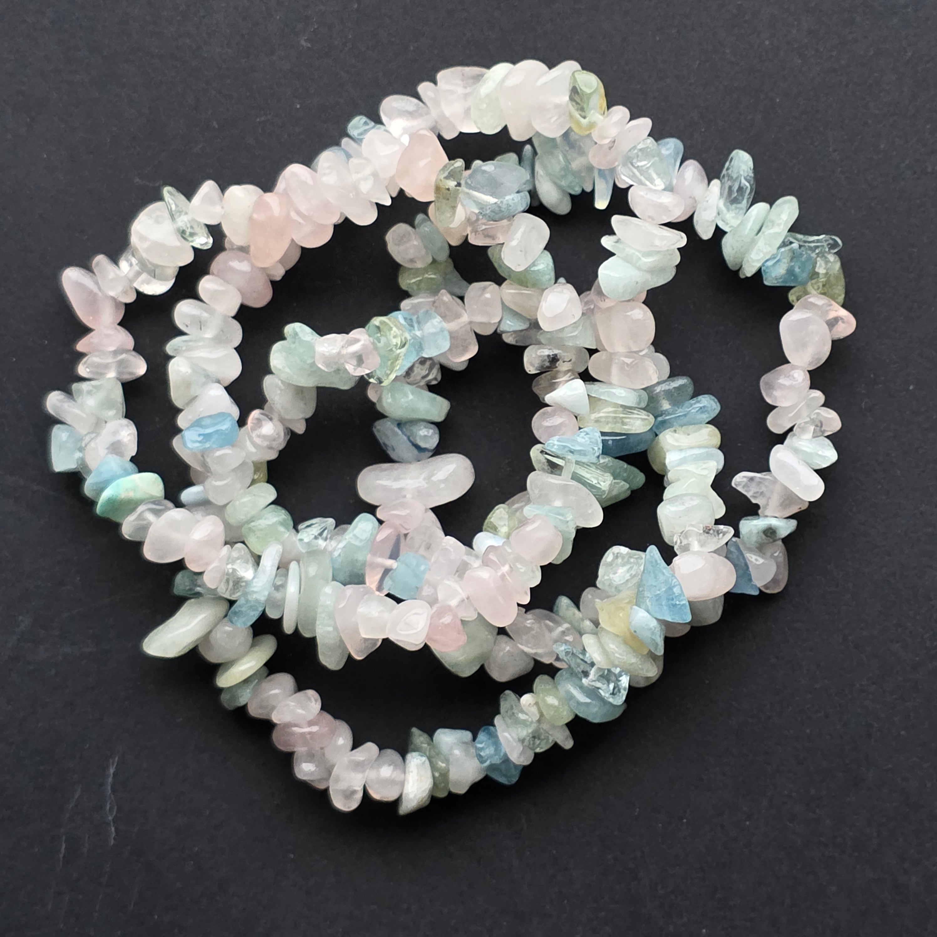 • Piatra: beril natural (chipsuri neregulate, șlefuite manual) – un mineral prețios care include varietăți precum acvamarin, morganit, heliodor