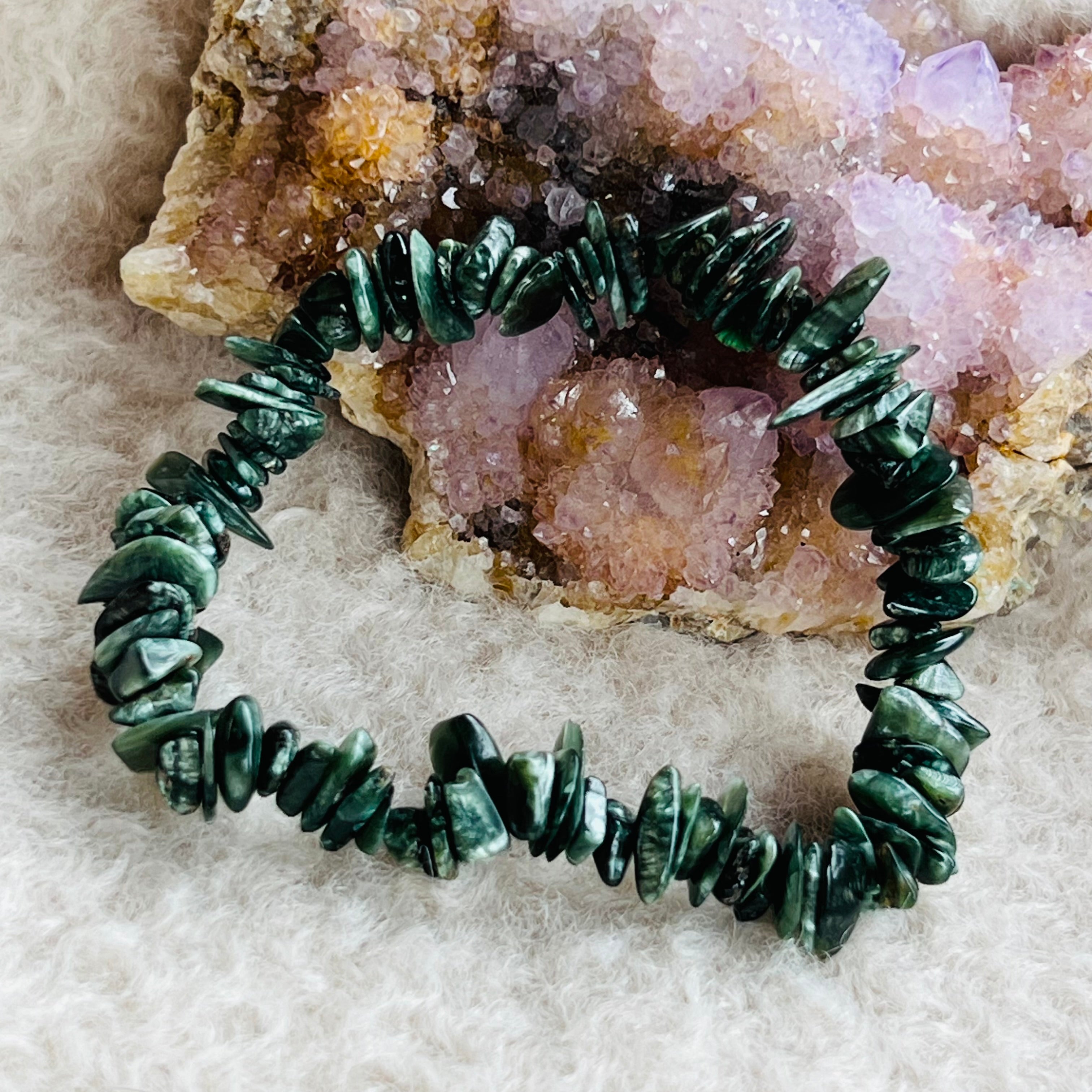 Serafinitul este o piatră semiprețioasă care se găsește în principal în Rusia, în regiunea de la lacul Baikal. Este cunoscut și sub numele de piatra îngerilor" datorită aspectului său angelic și a credinței că are legătură cu lumea angelică.