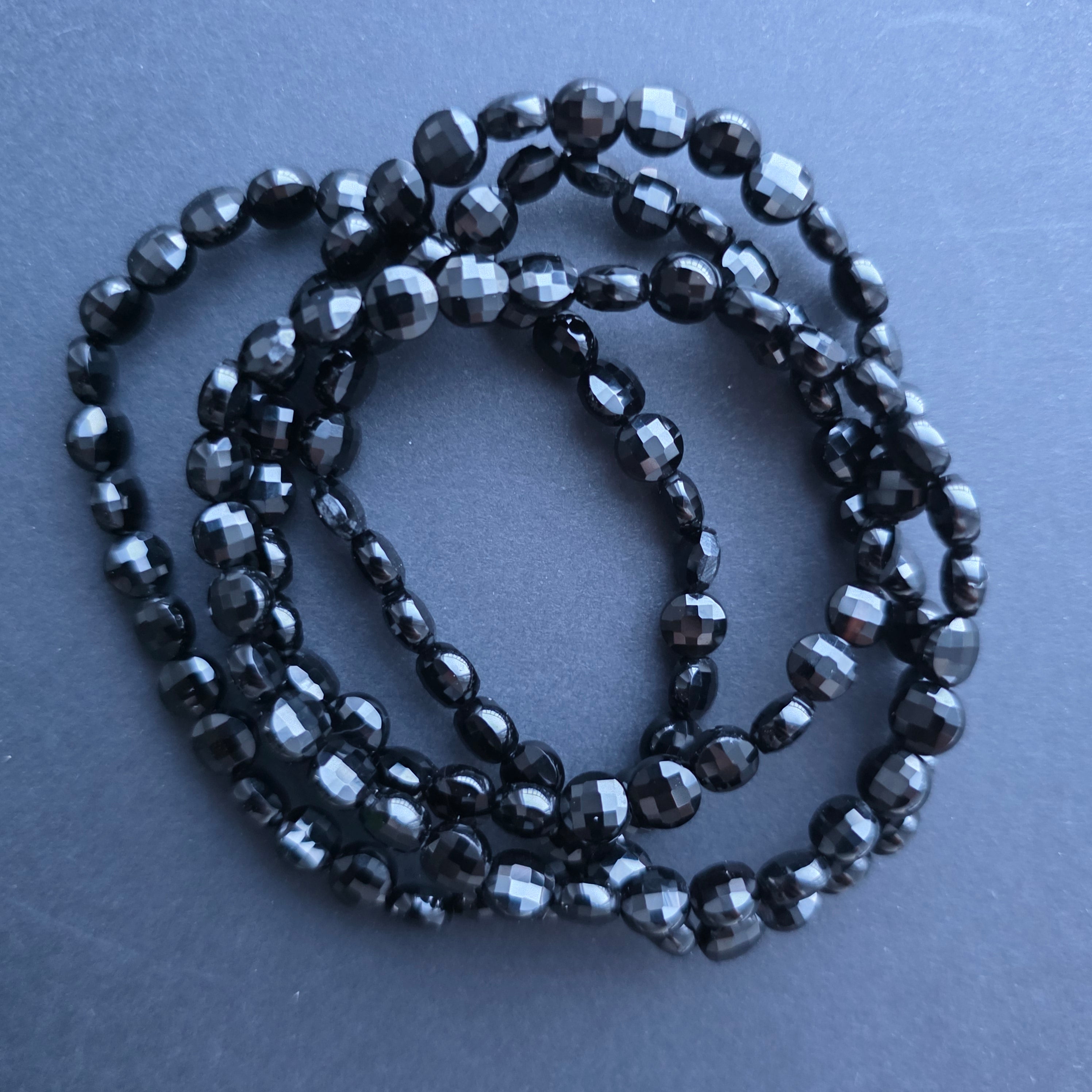 Descriere - Bratara discuri fatetate onix negru 6x4 mm