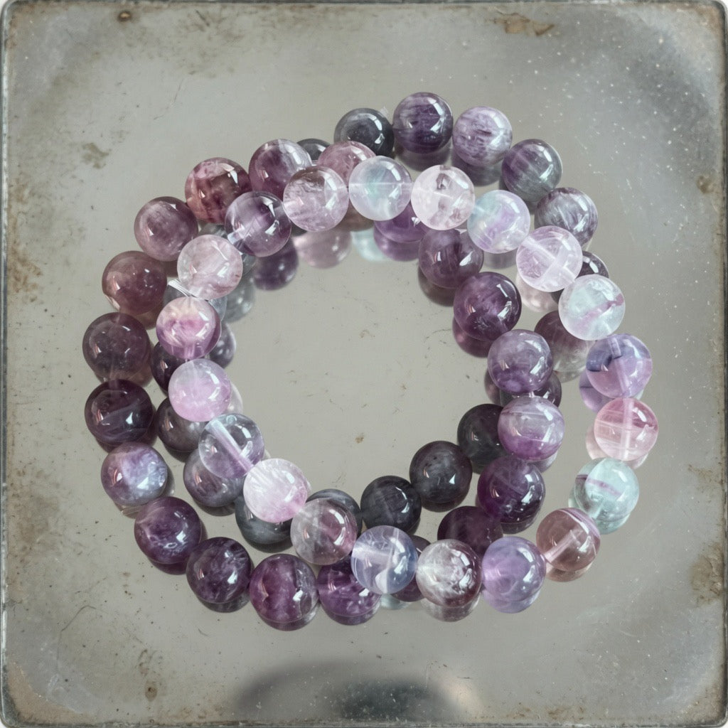 Descriere - Bratara fluorit curcubeu 10 mm