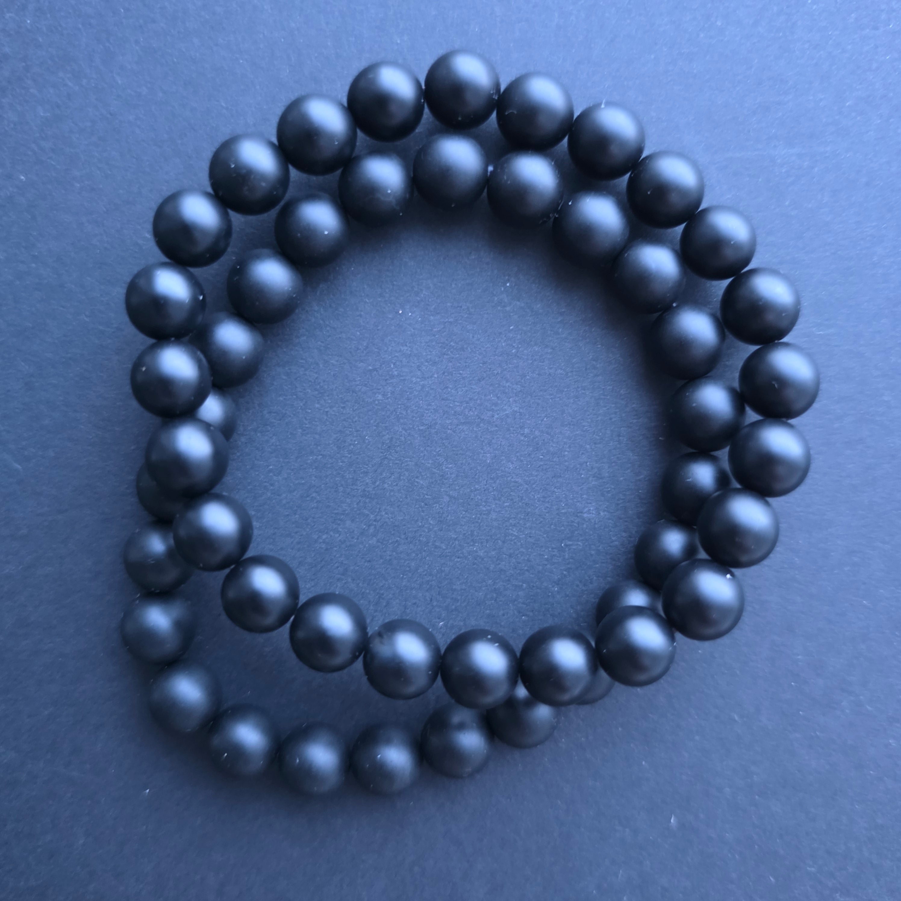 • Piatra: onix negru natural – mărgele sferice 8-9 mm, finisaj mat