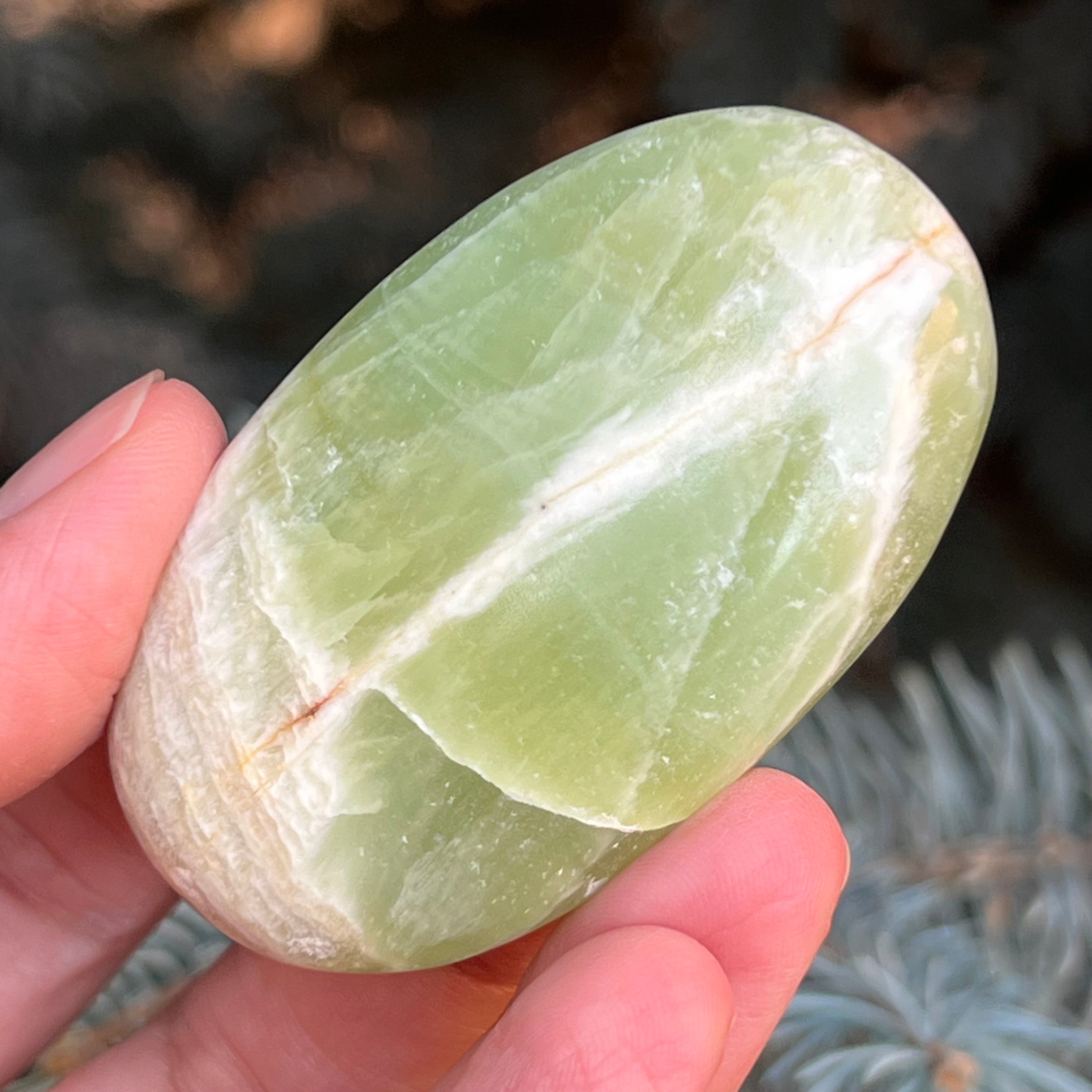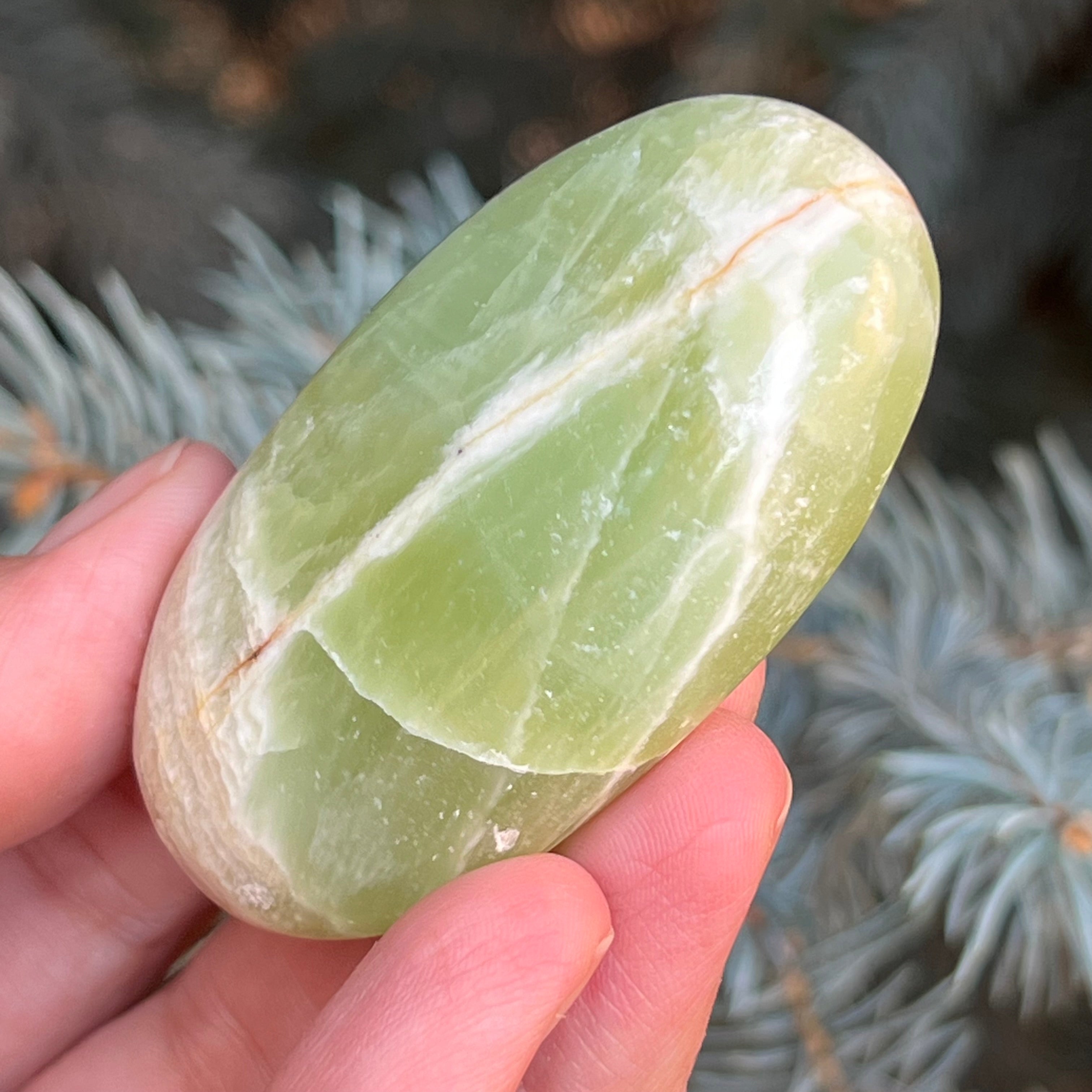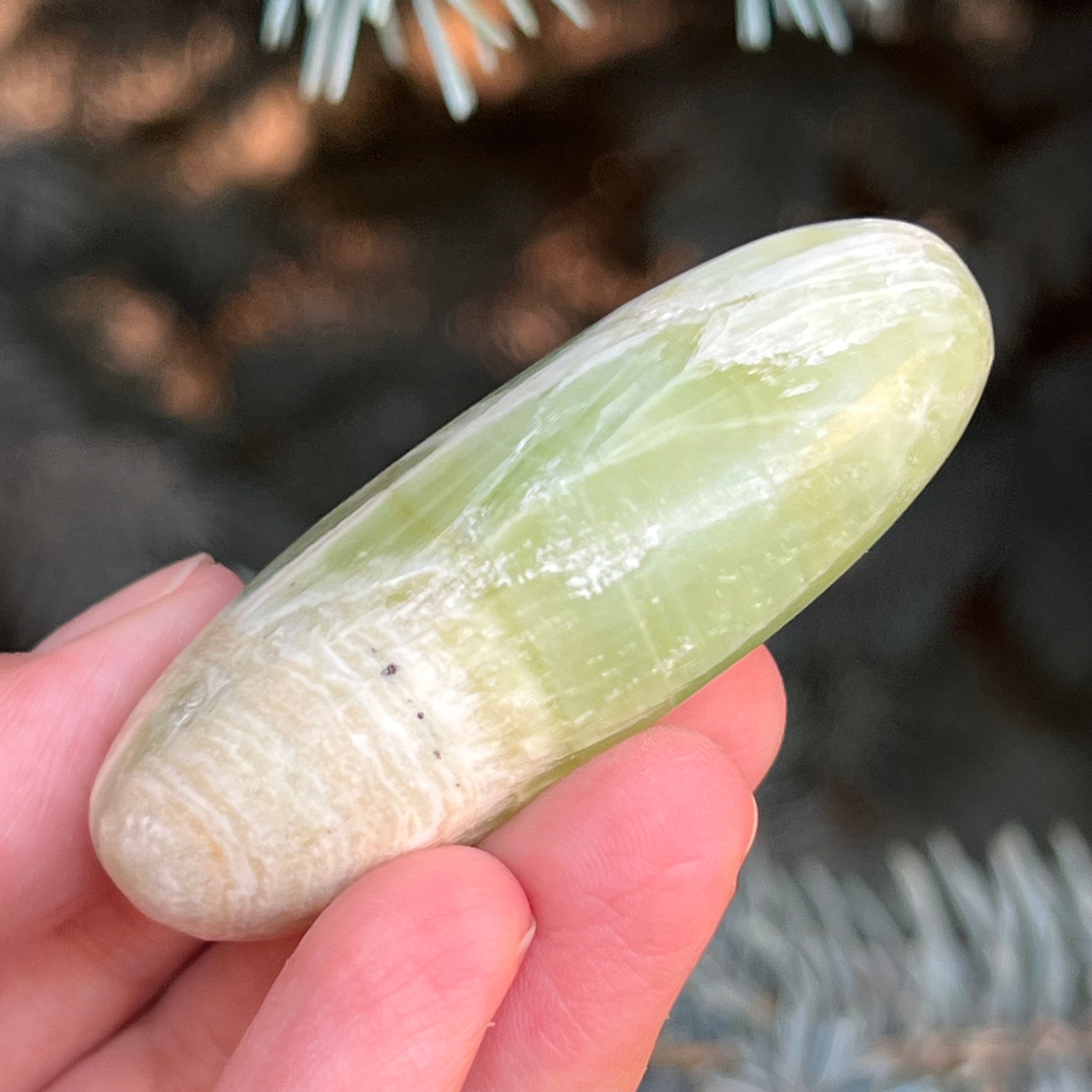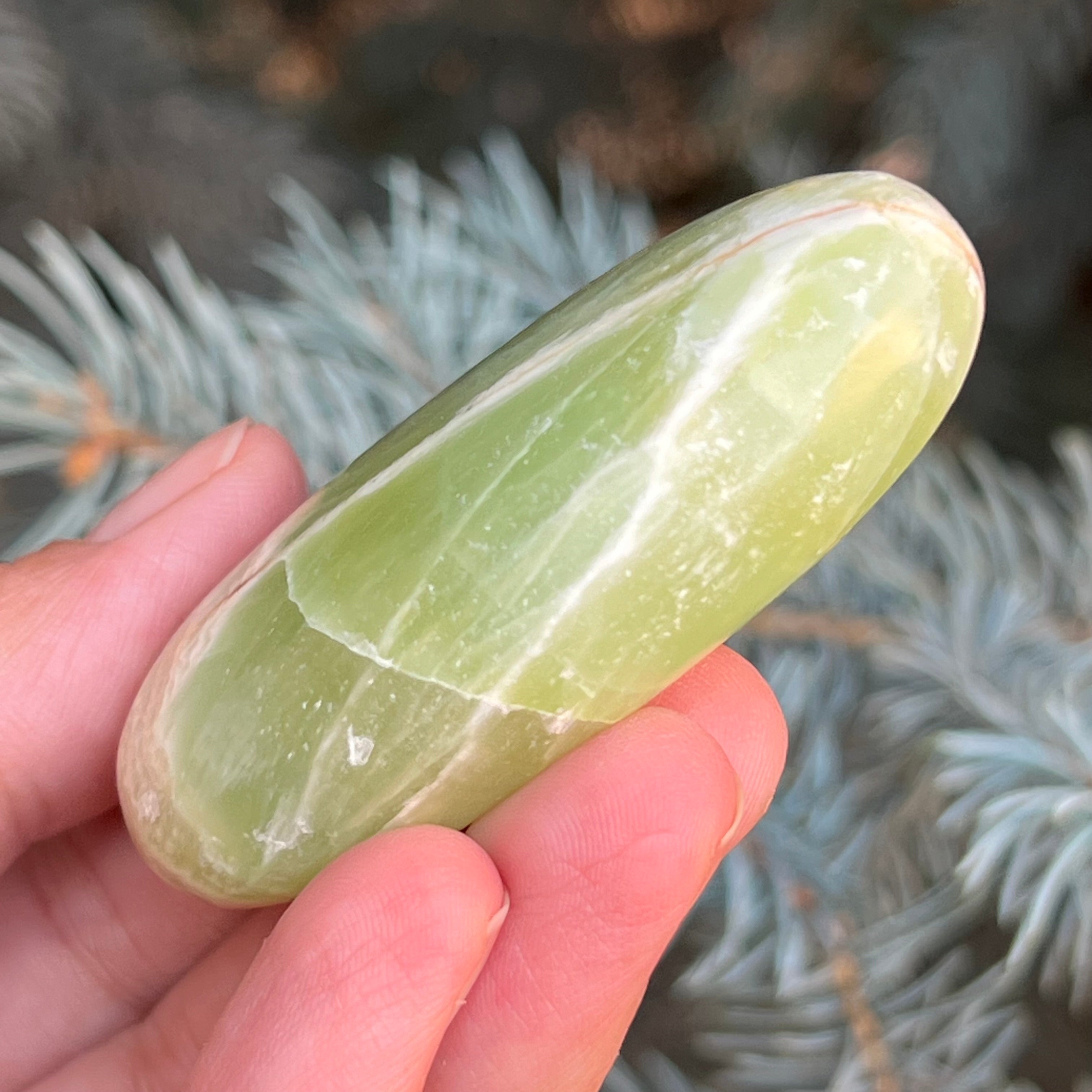 Palmstone di calcite pistacchio m5, dimensioni 6,1 * 3,5 * 1,3 cm