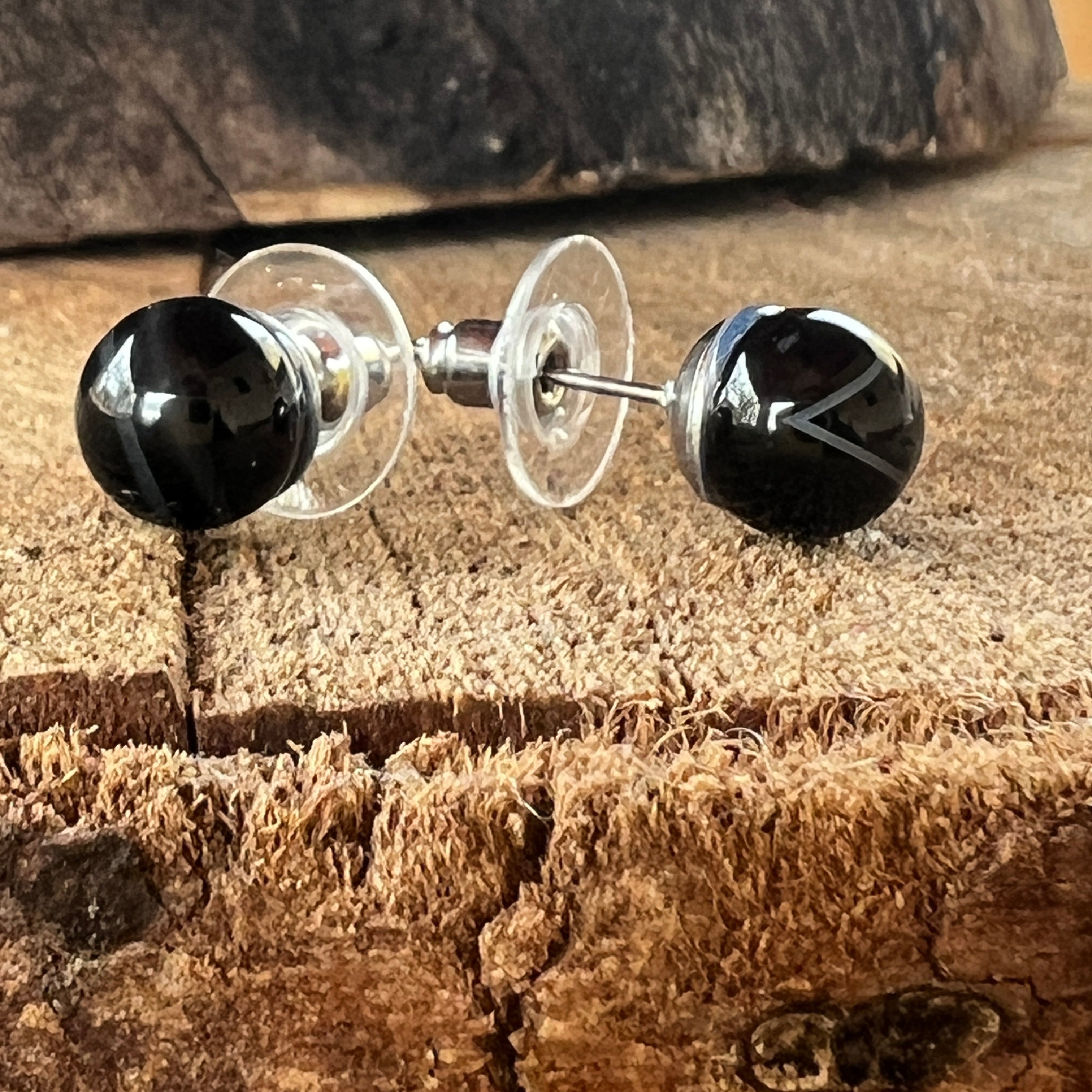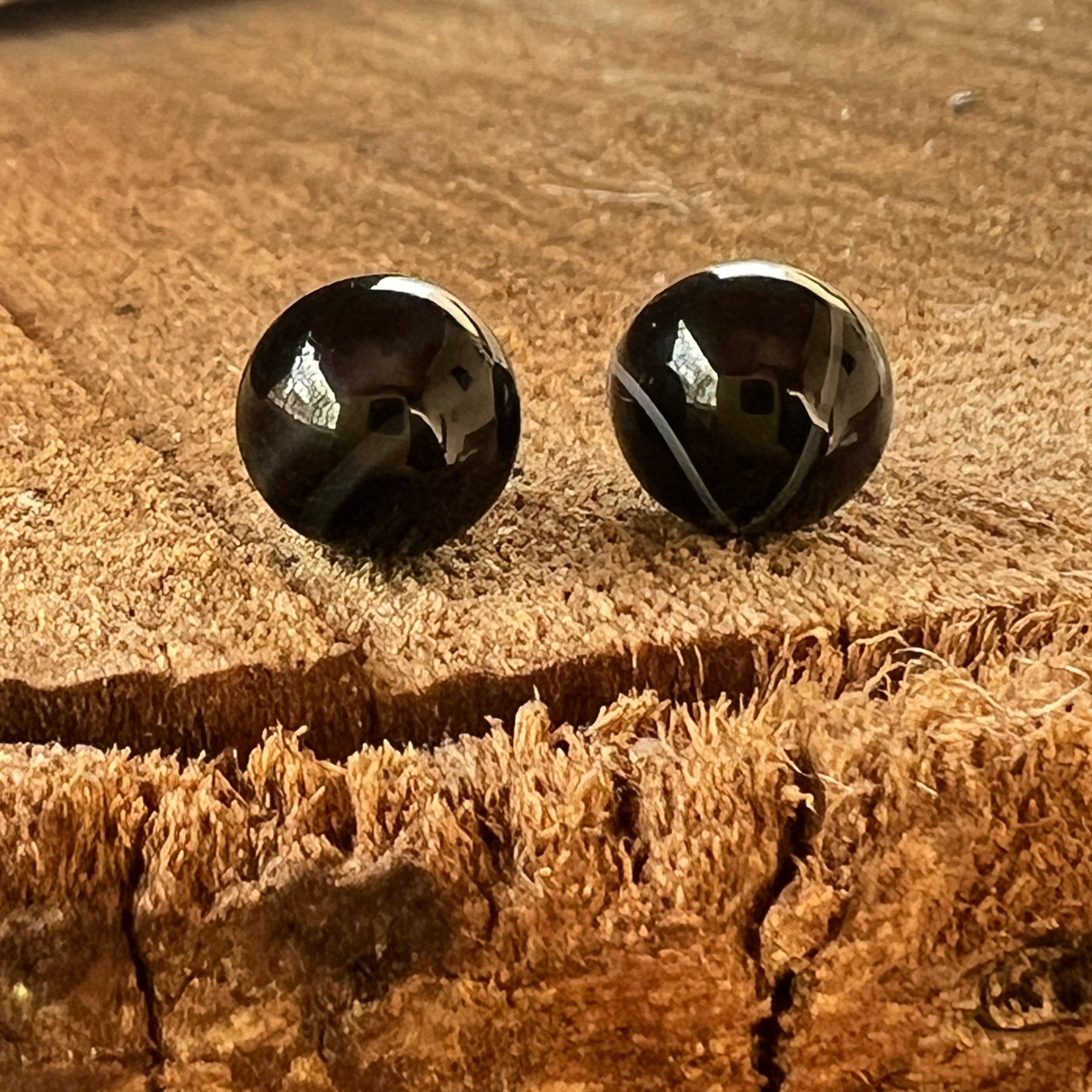 Descriere - Cercei stud sfere onix negru 8 mm
