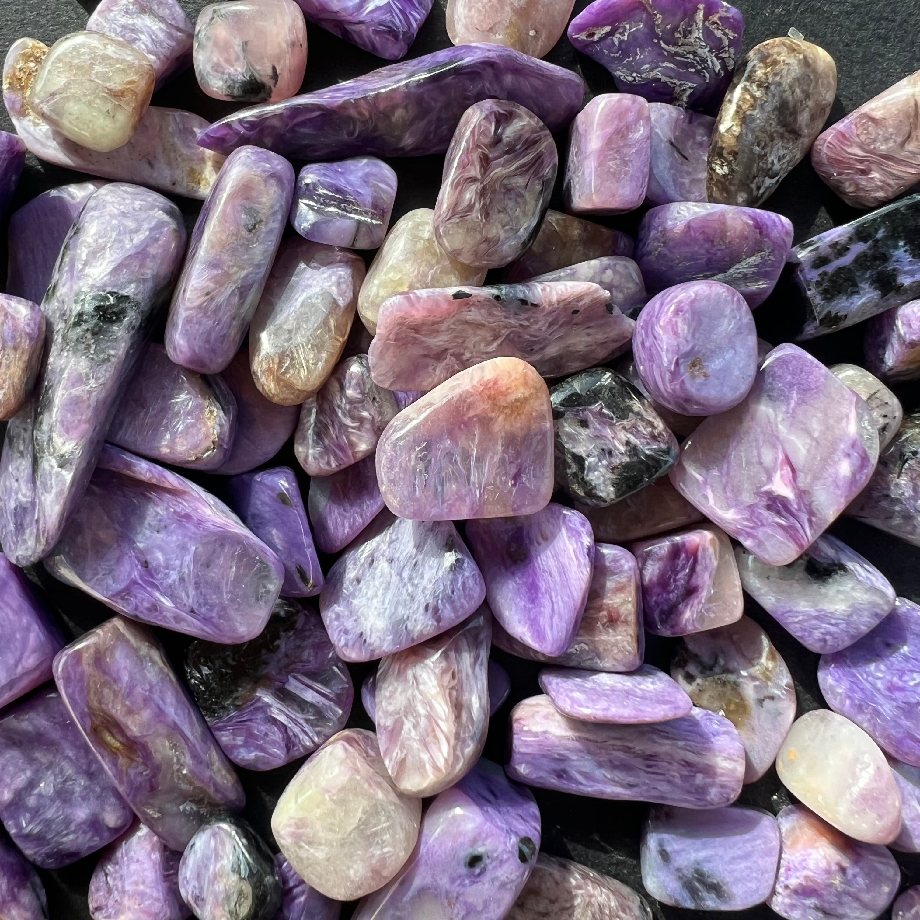 Il charoit è associato alla guarigione emotiva e spirituale, al calmare la mente e all'equilibrio dell'energia. Si crede che questa pietra abbia la capacità di promuovere l'introspezione e di aumentare l'intuizione.
