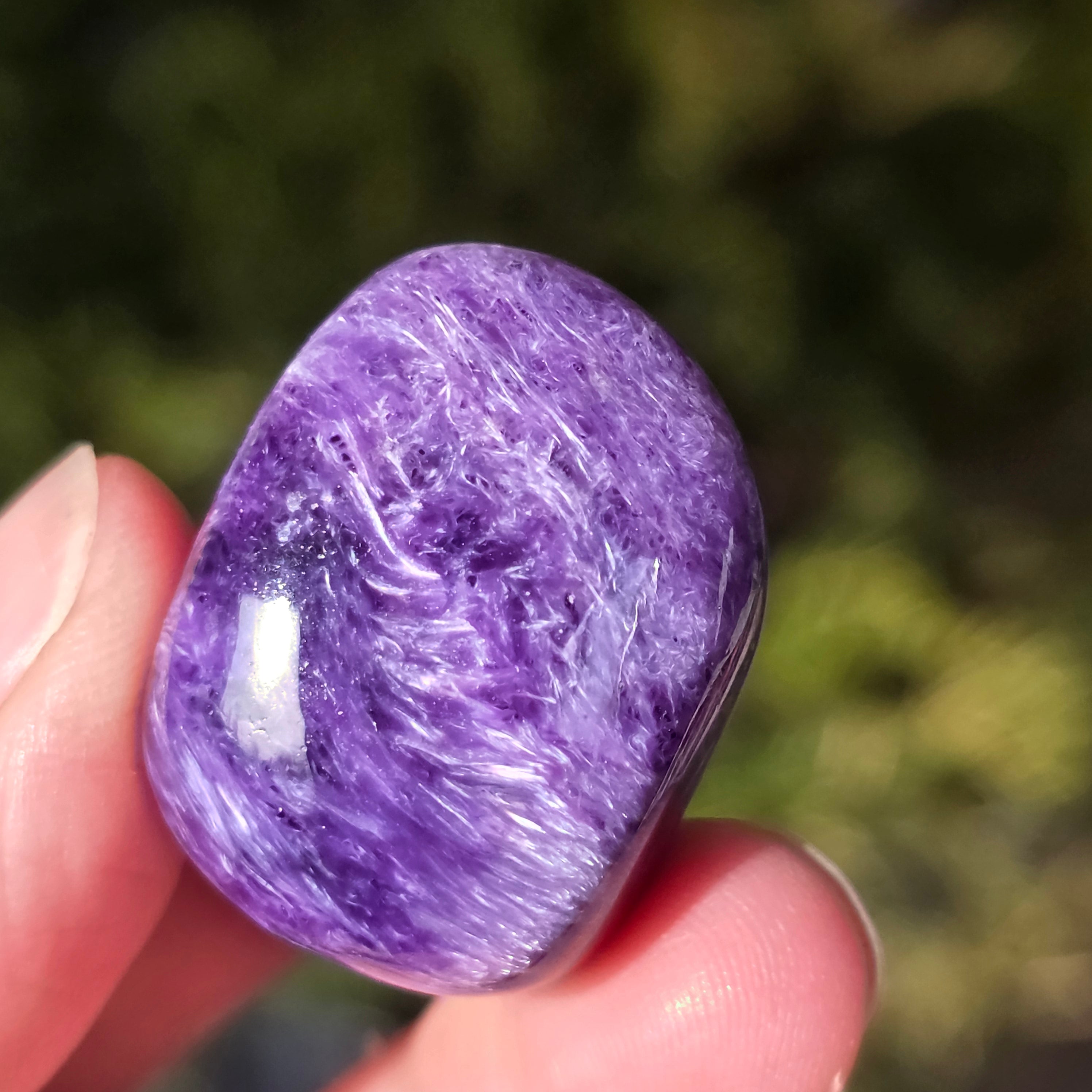 La charoite è associata alla guarigione emotiva e spirituale, al calmare della mente e all'equilibrio dell'energia. Si crede che questa pietra abbia la capacità di promuovere l'introspezione e di aumentare l'intuizione.