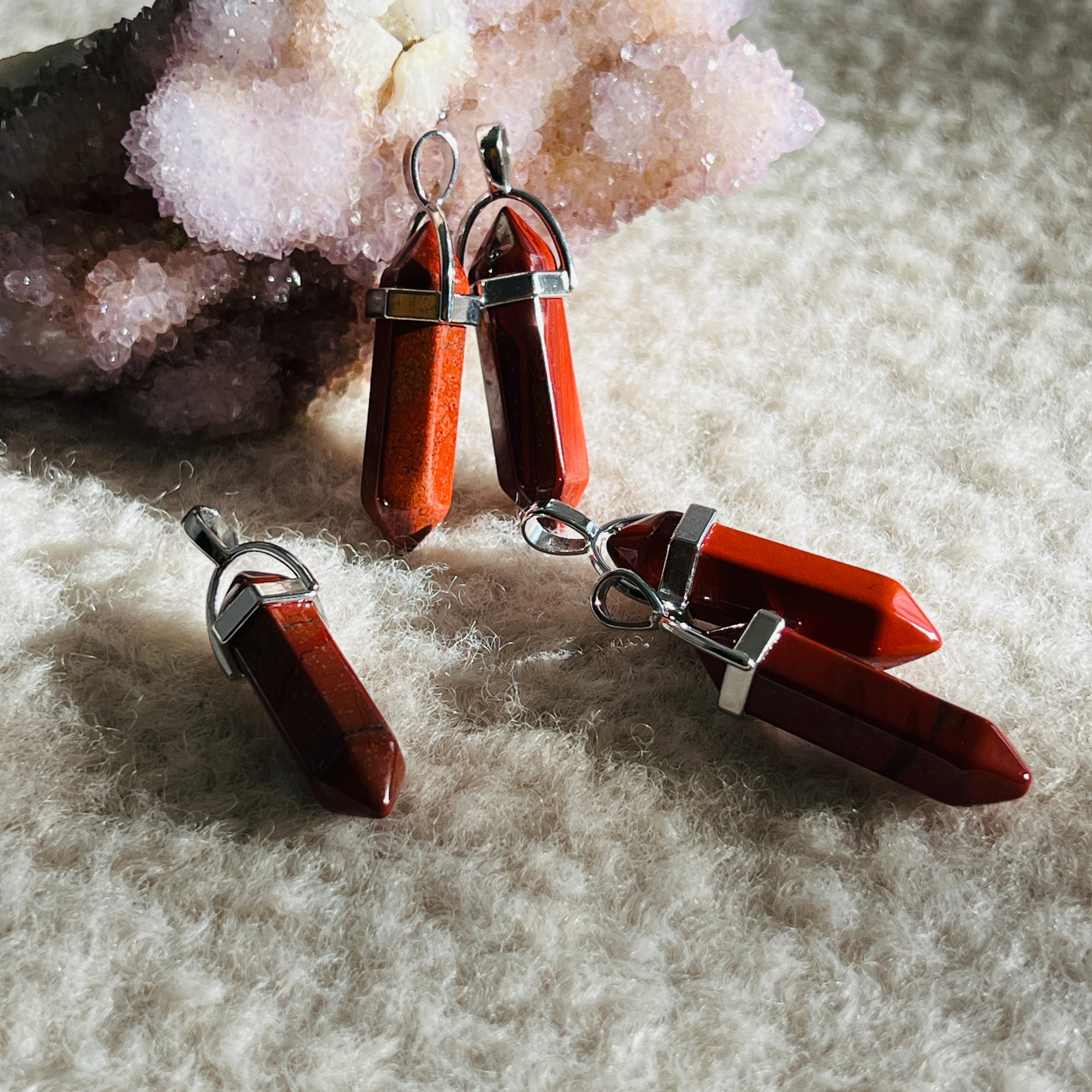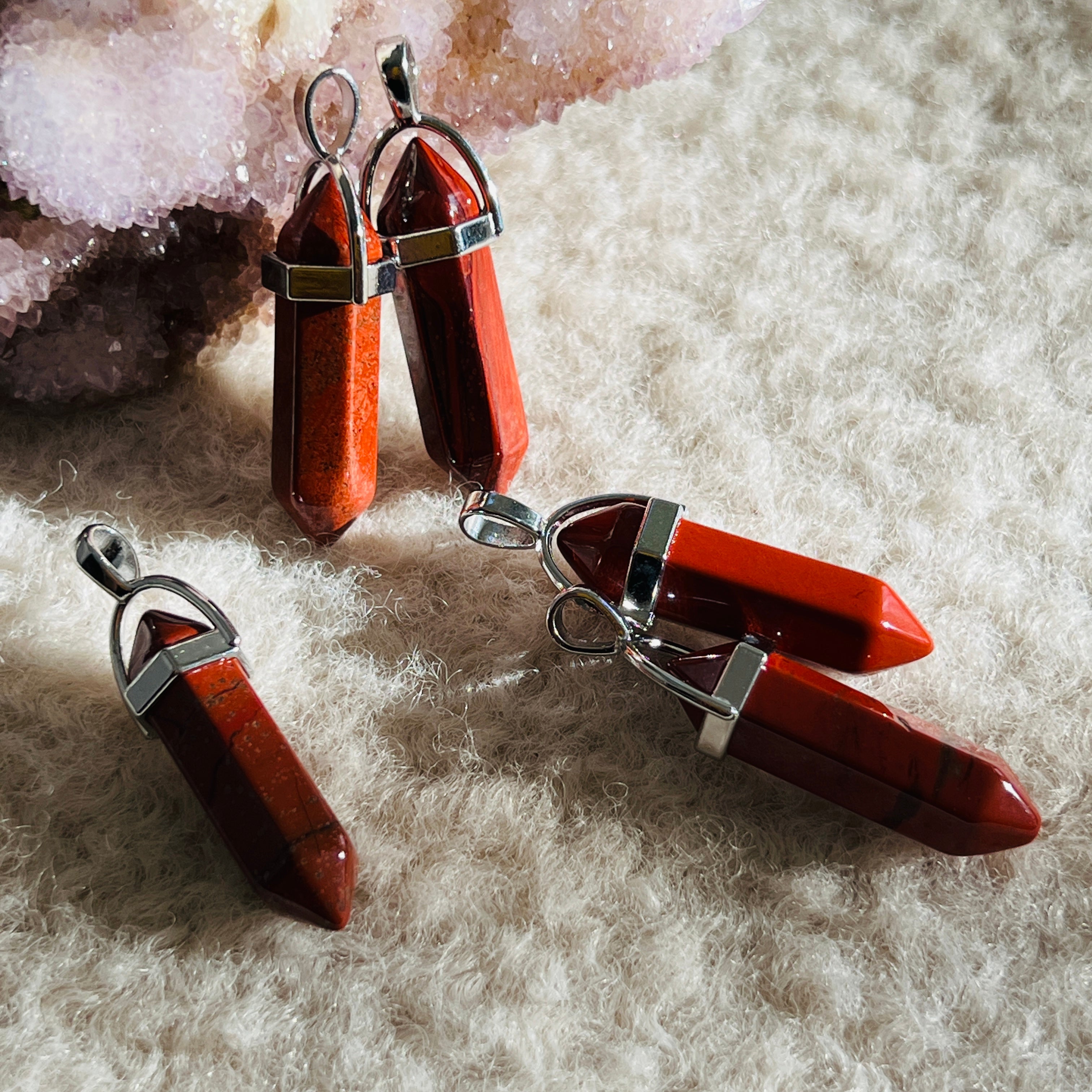 Ciondolo in diaspro rosso a doppia punta, misura: 3 cm
