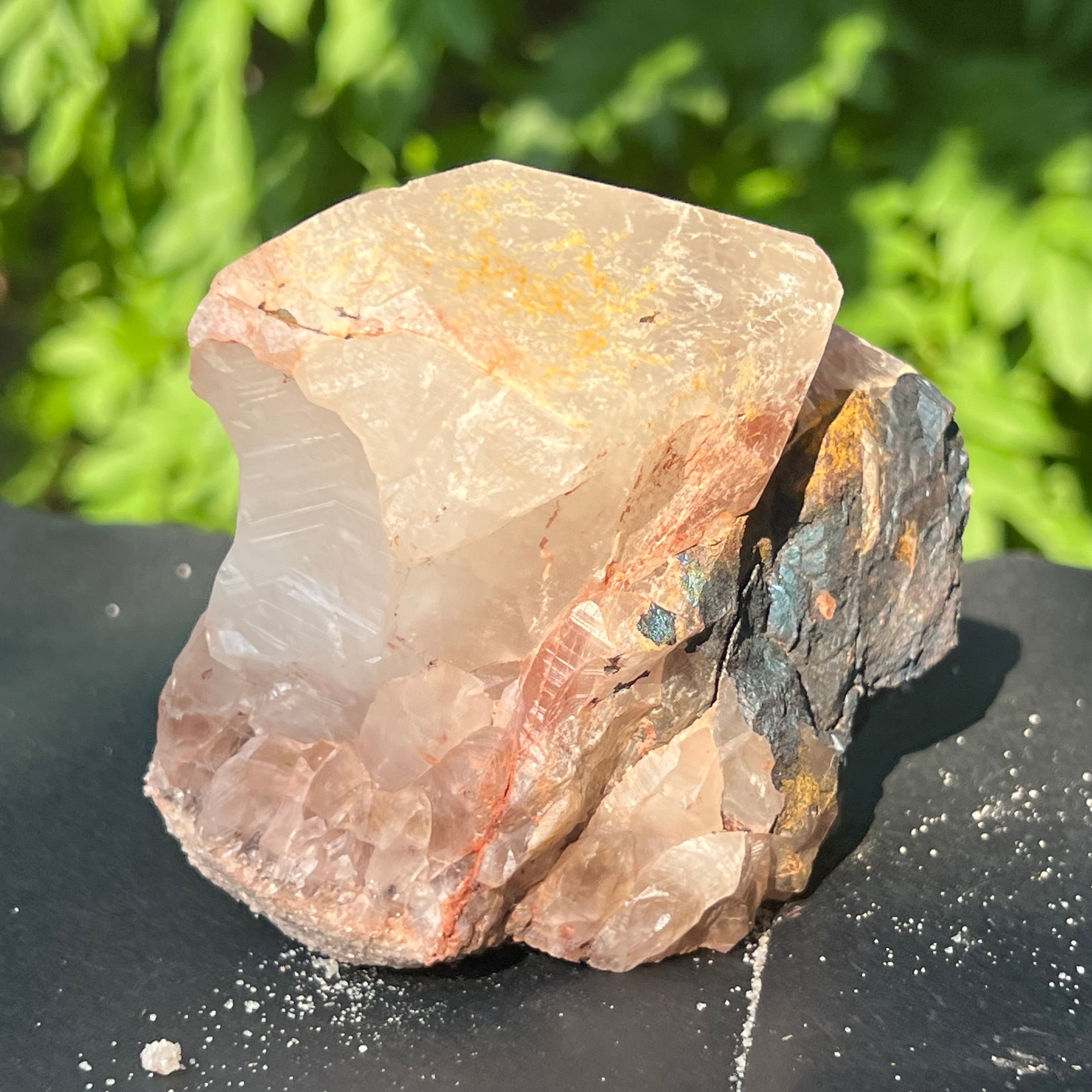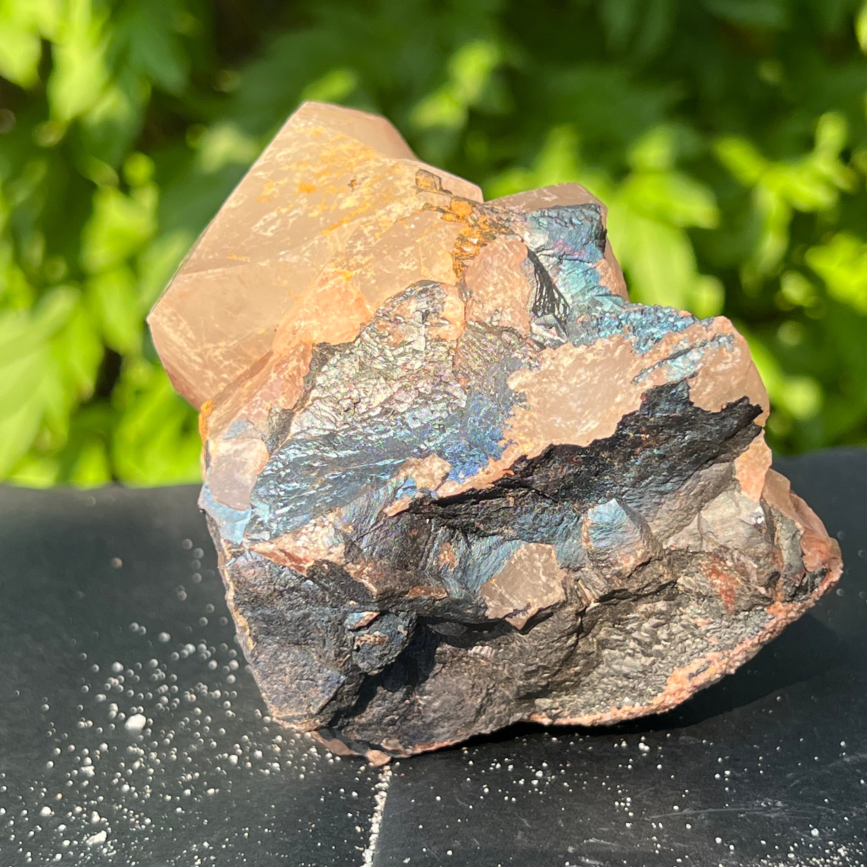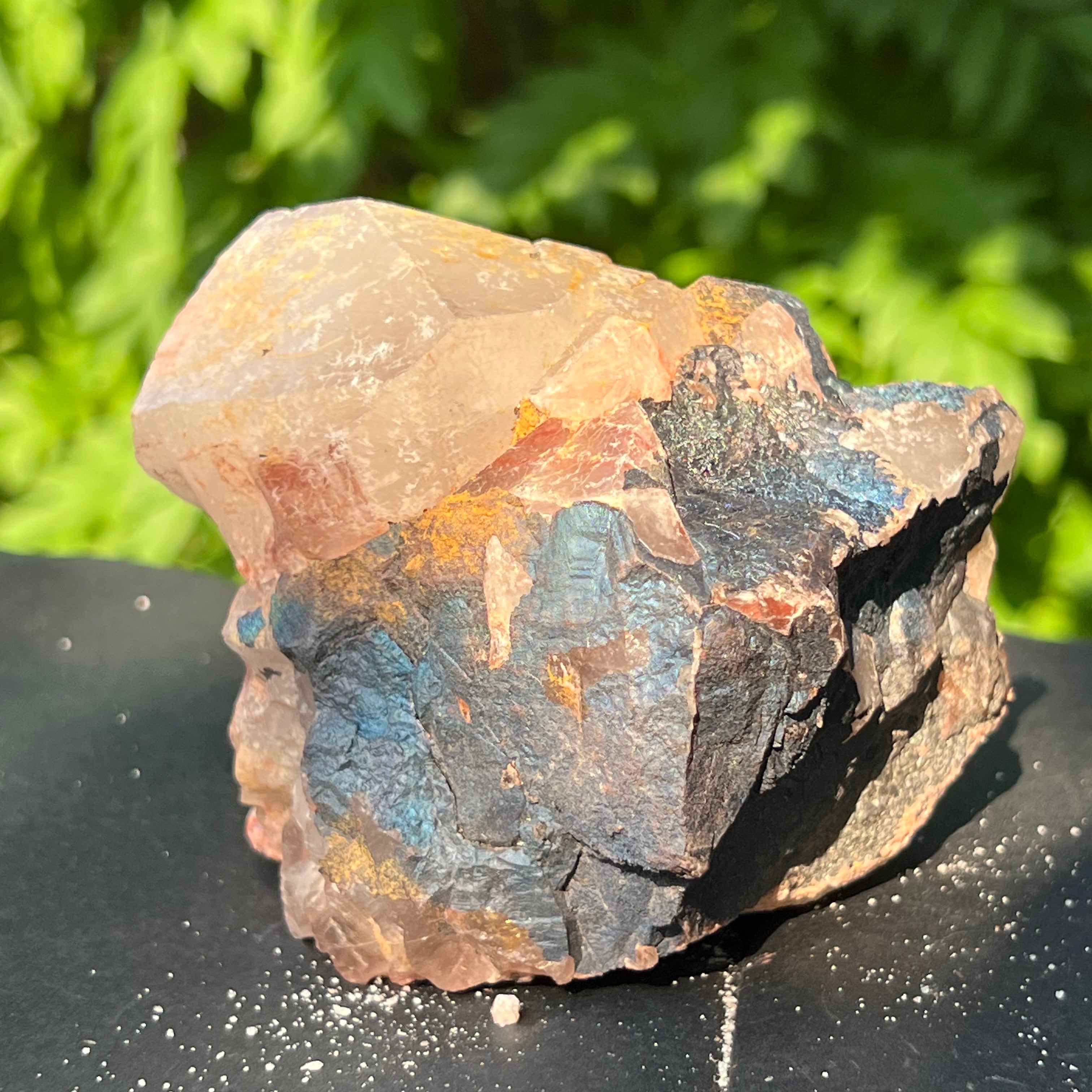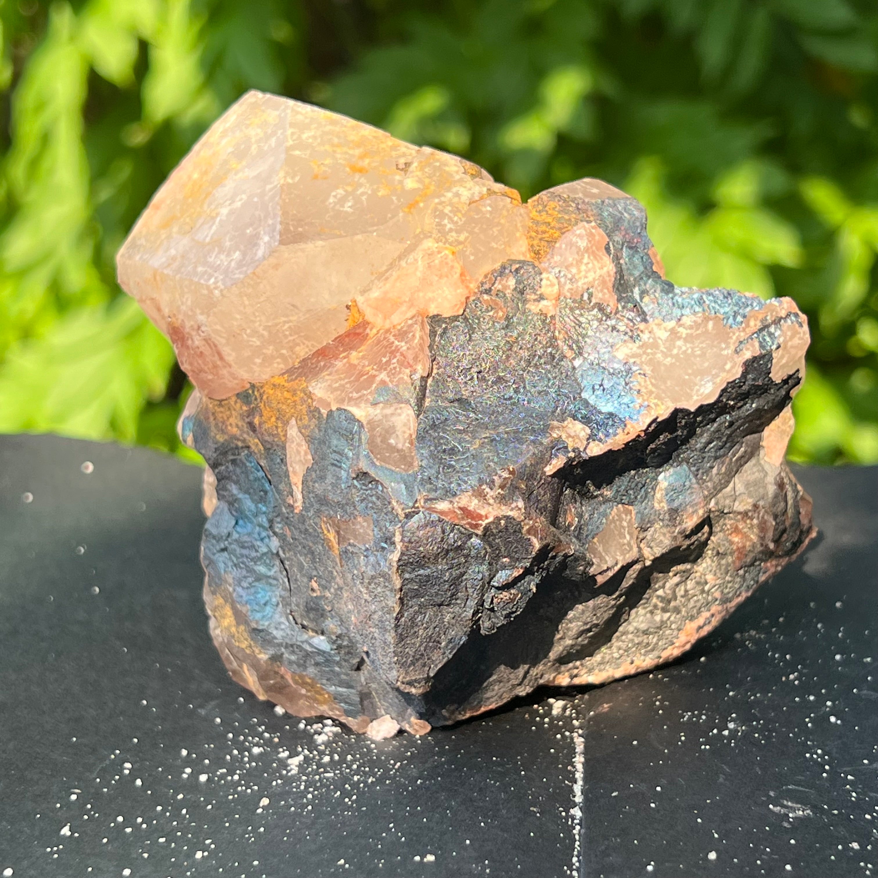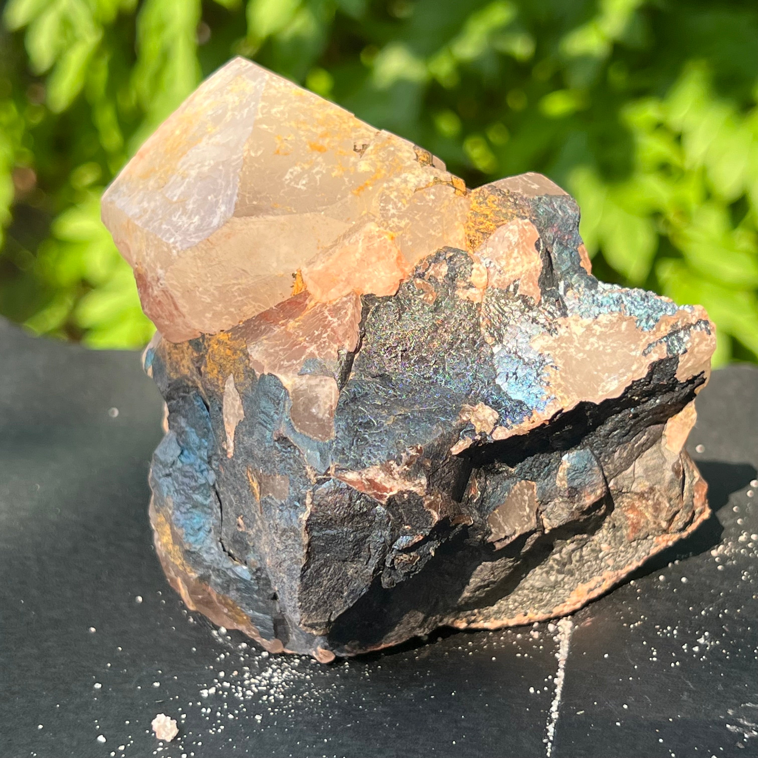 Cuartul Blacknit este cu adevărat unic, prezentând o acoperire metalică de goetita și hematit, care prezintă nuanțe captivante și o patină iridescentă.