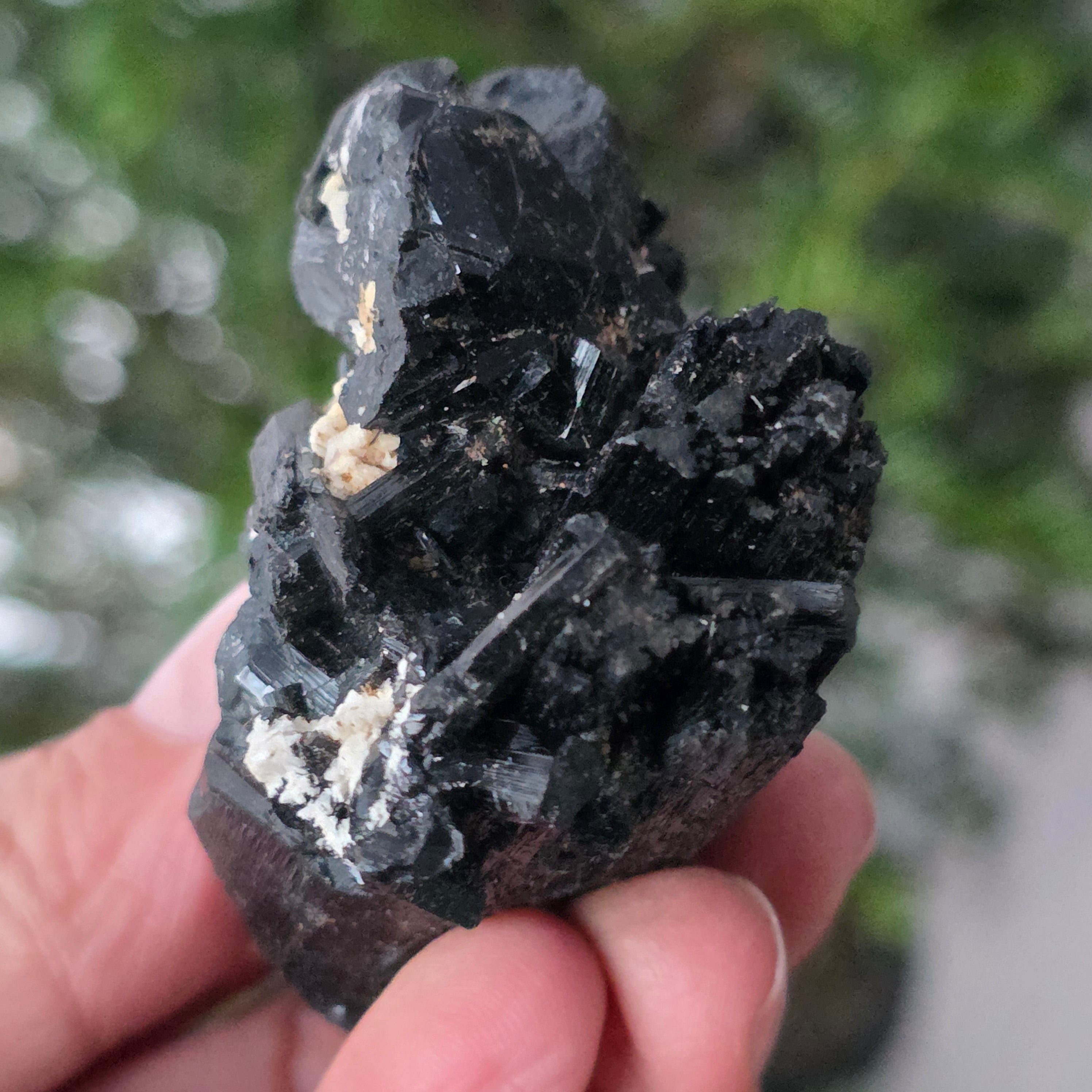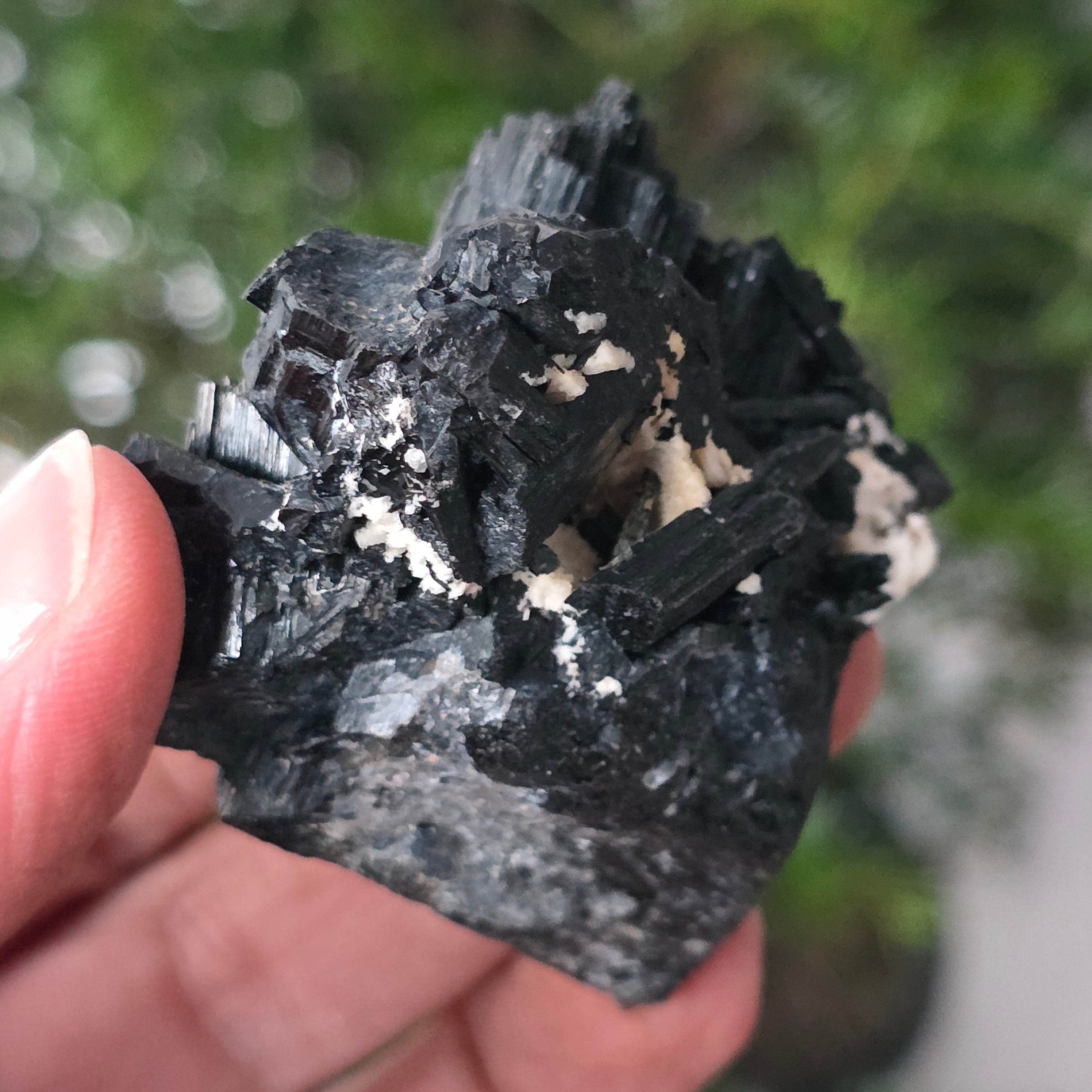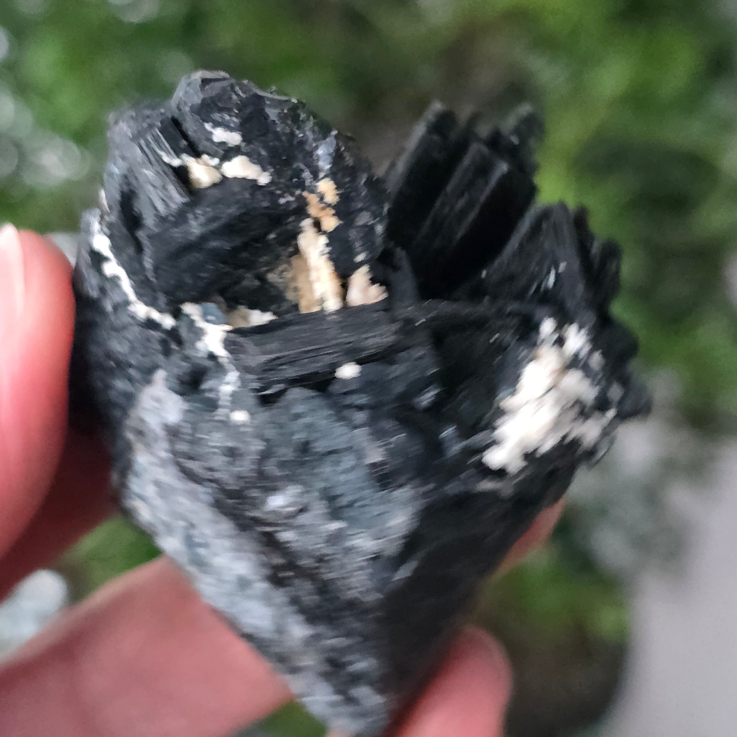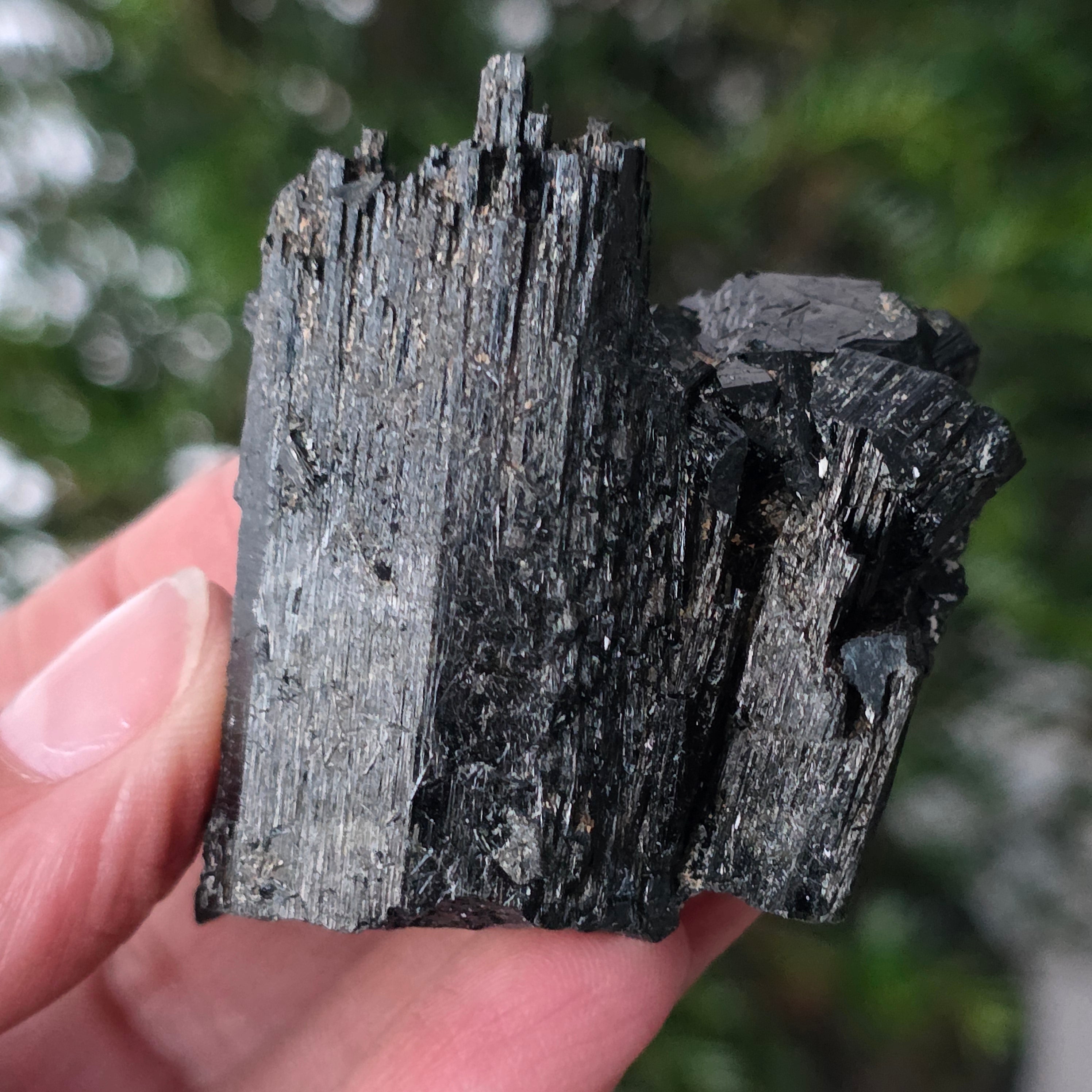 La tormalina nera, nota anche come schorl, è composta da una complessa miscela di borosilicati e si trova in diverse forme cristalline. È un minerale molto duro e ha grande resistenza a graffi e usura.