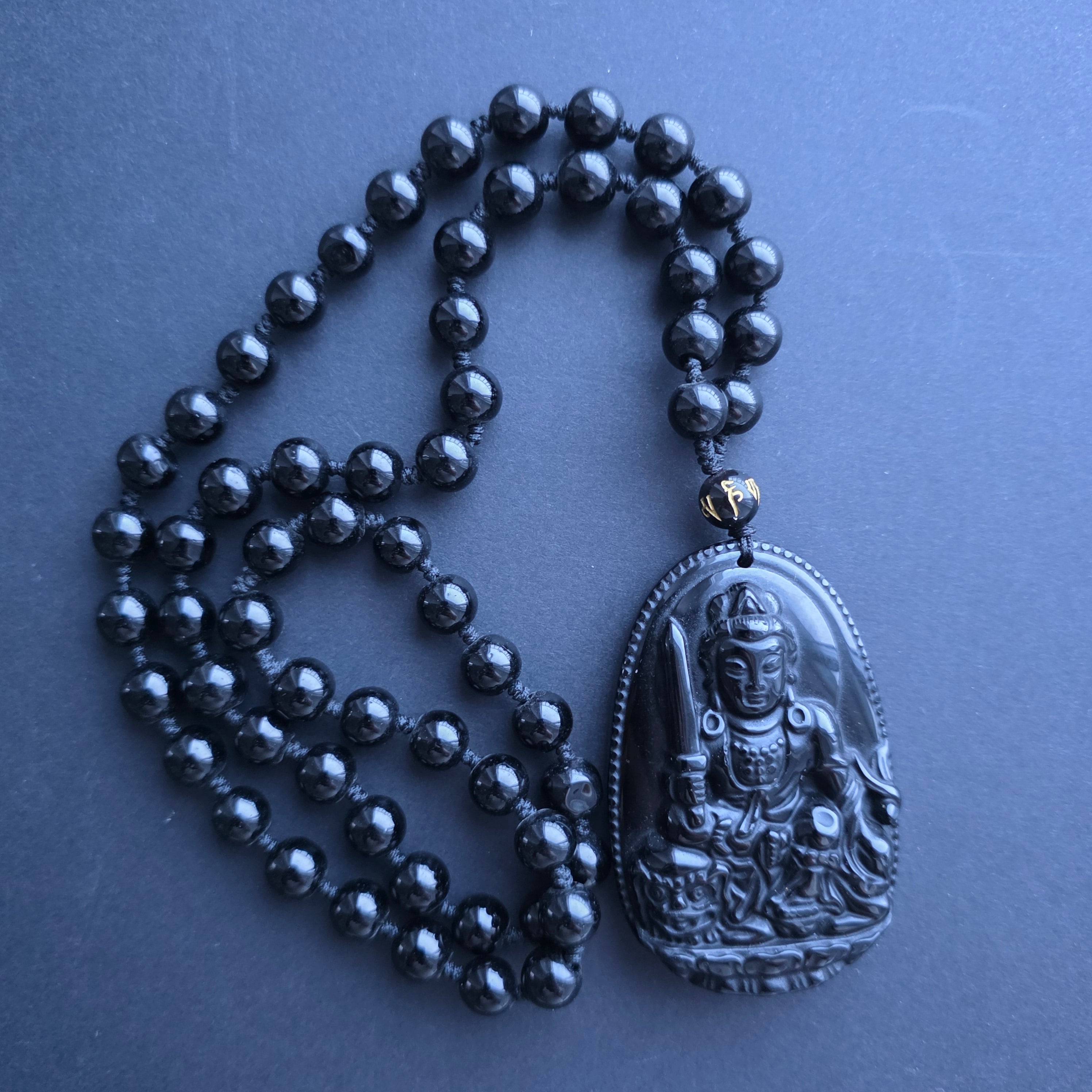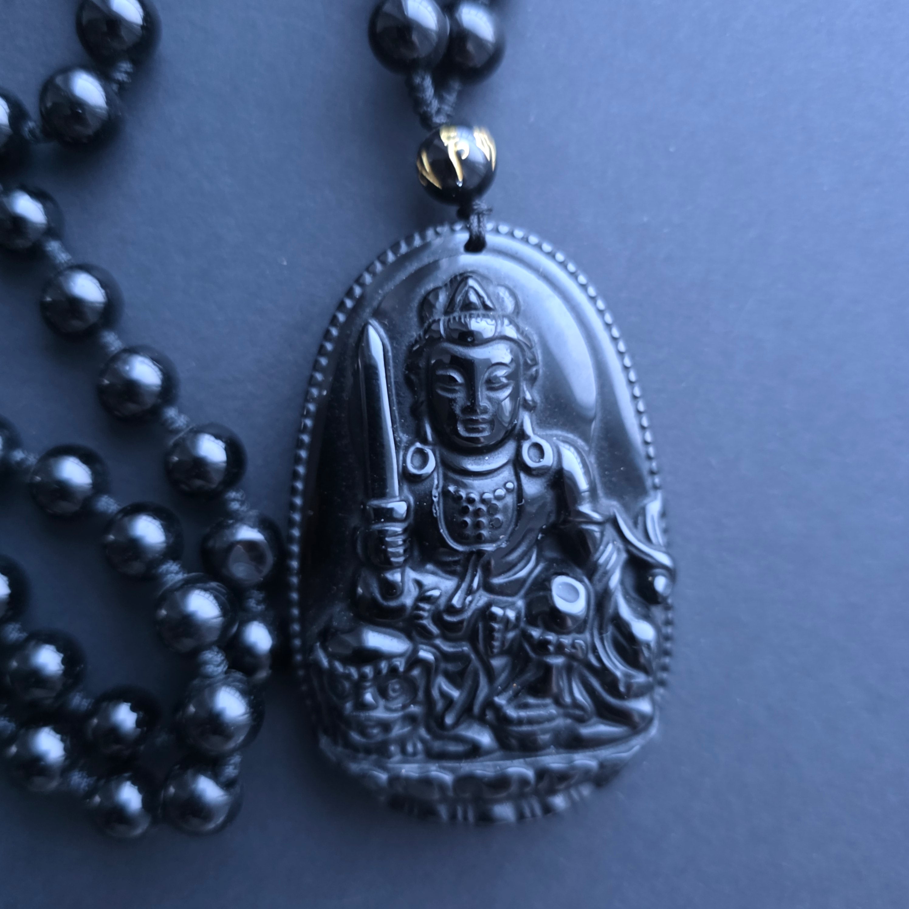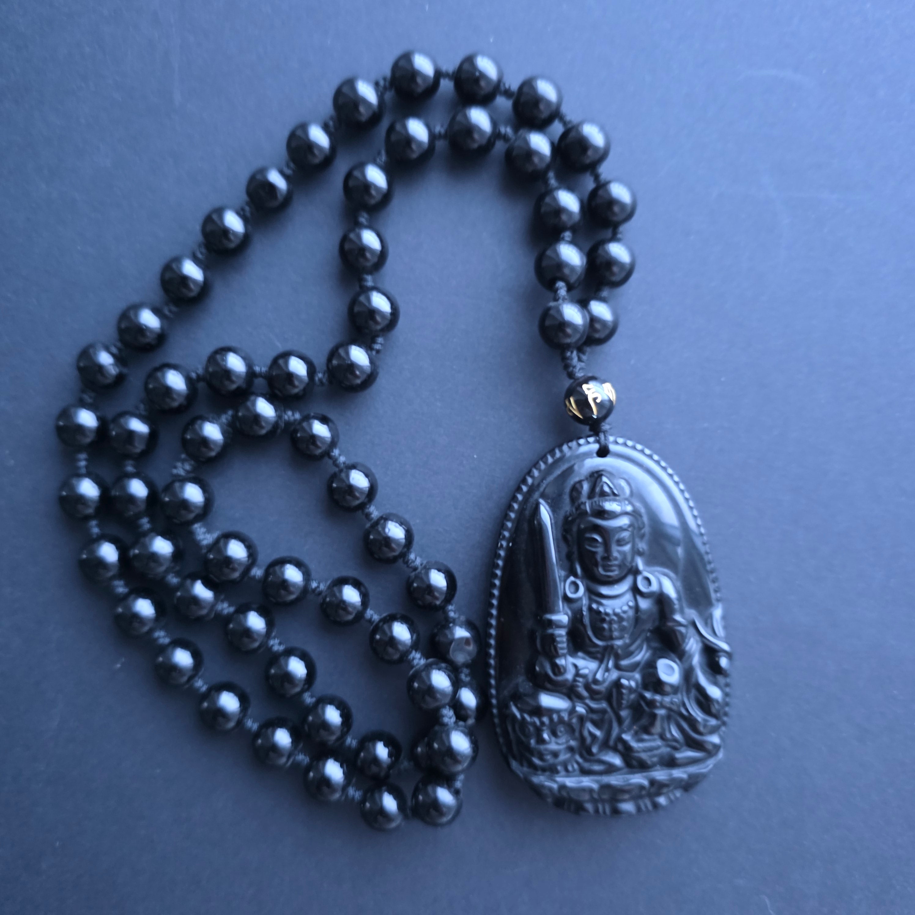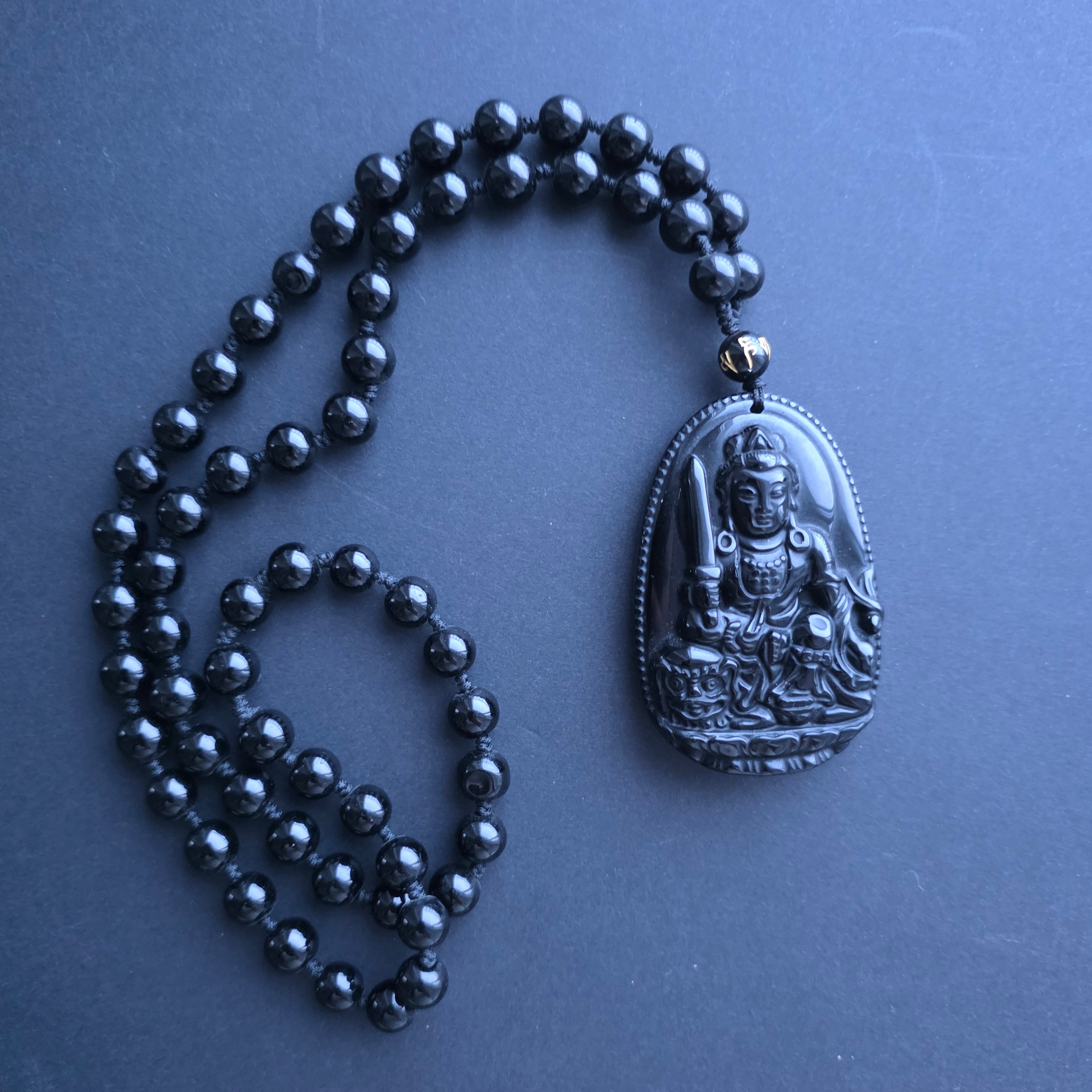 Descriere - Collana amuleto ossidiana nera | Buddha