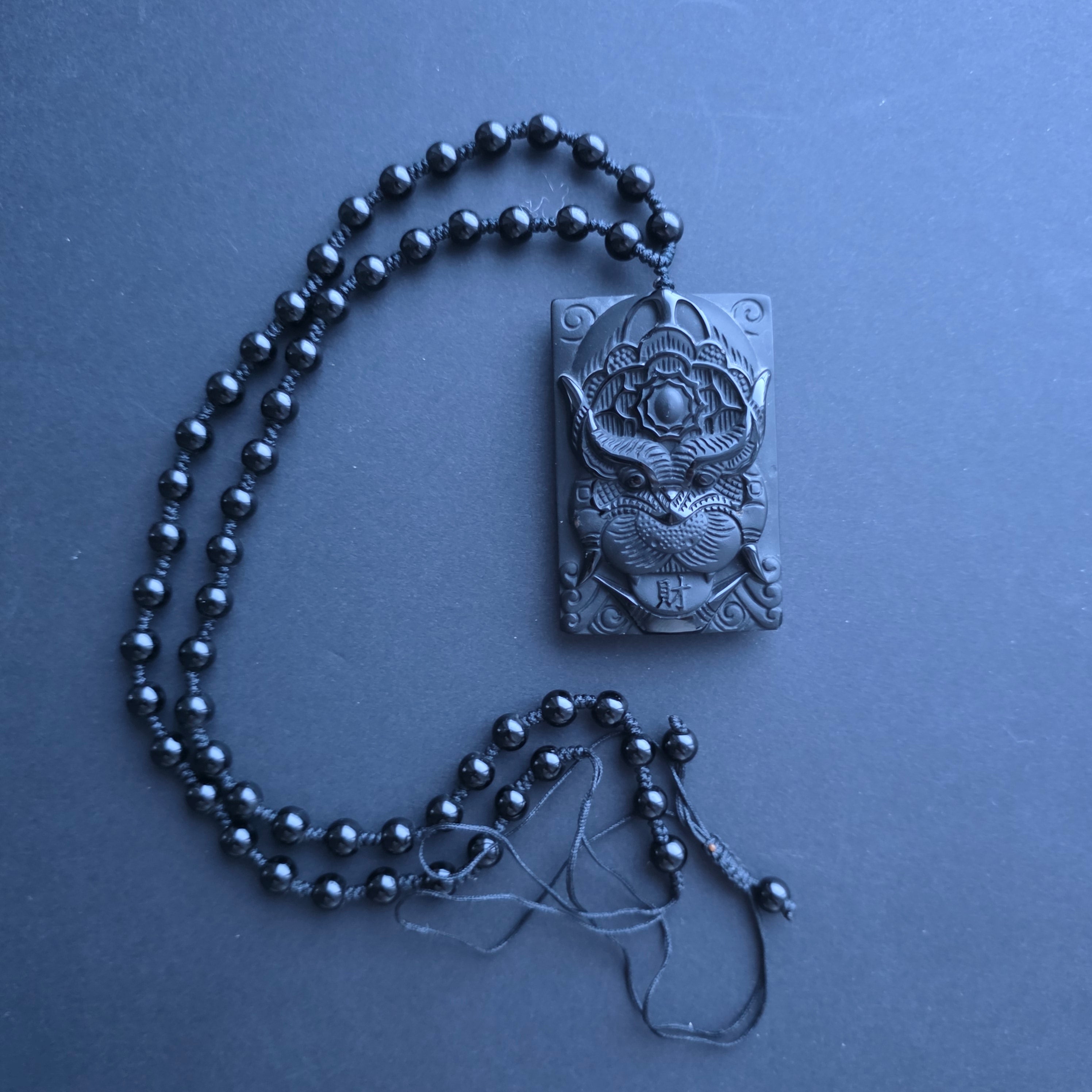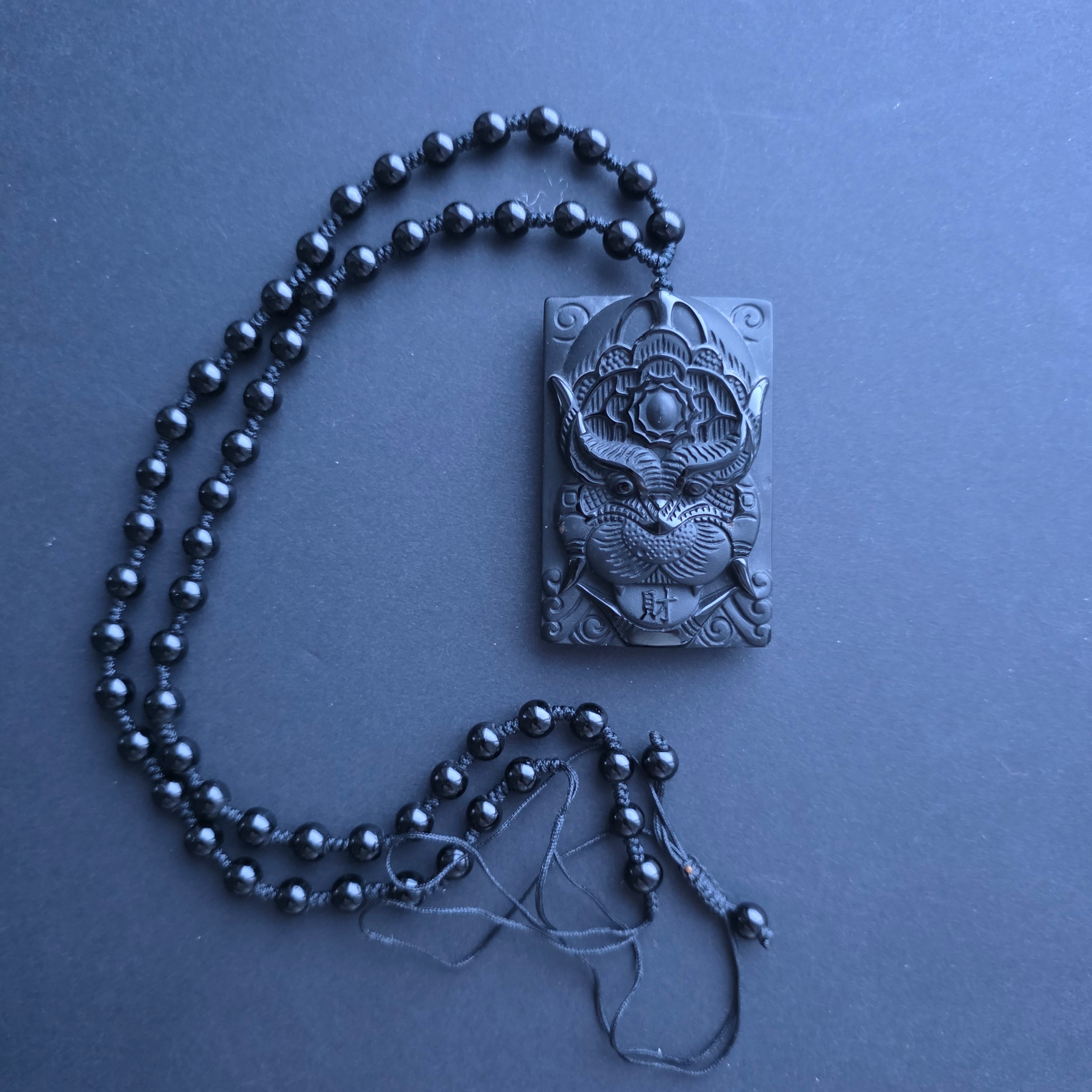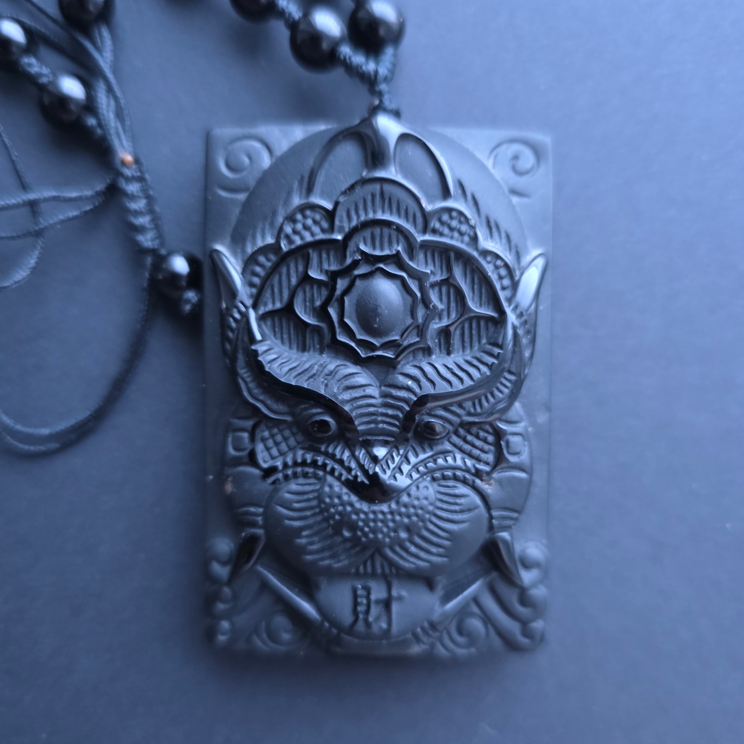 Collana amuleto ossidiana nera | Drago