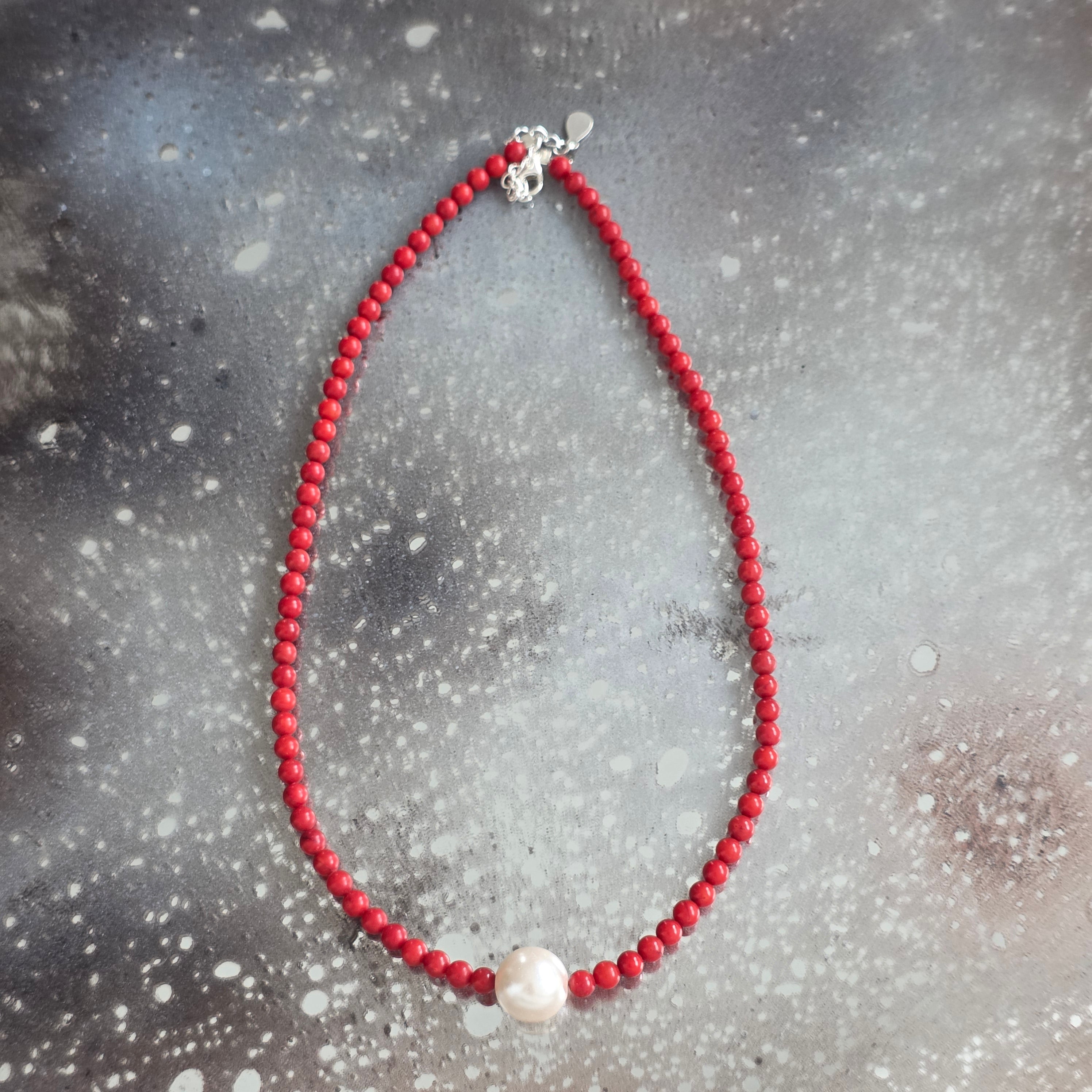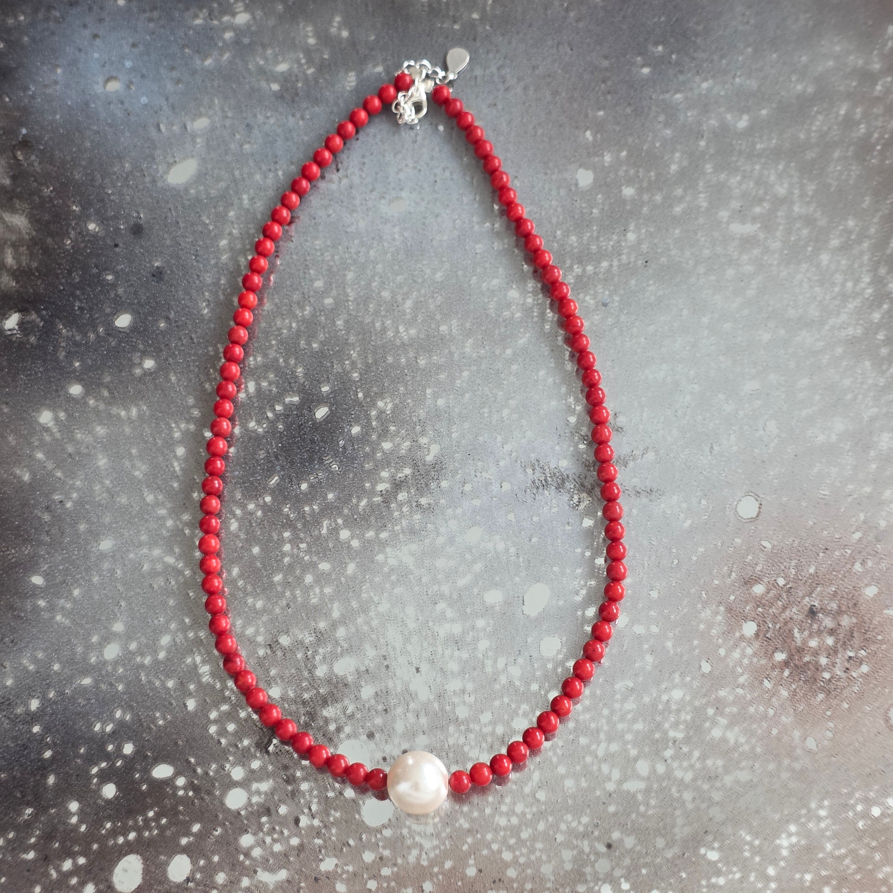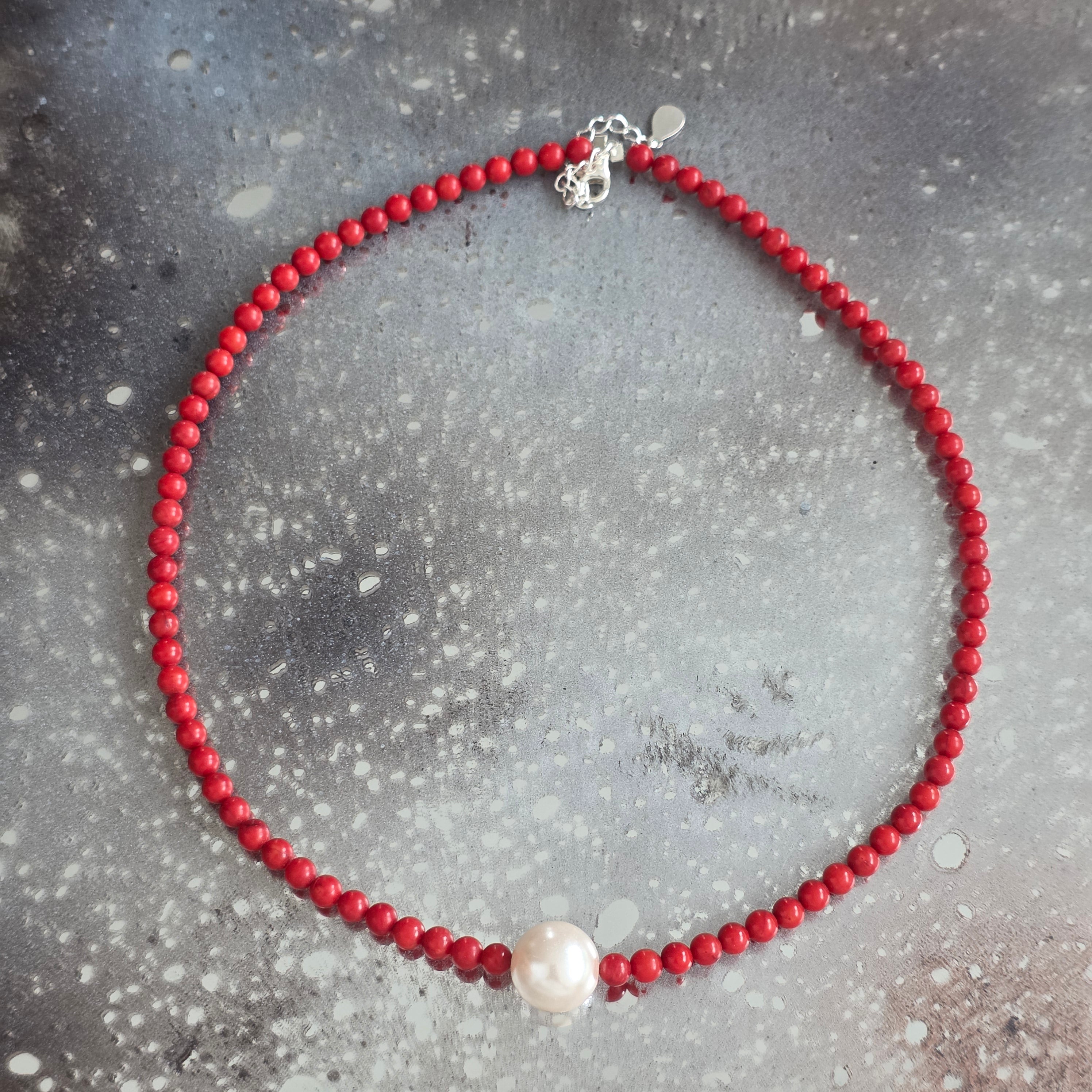 Materiali: corallo rosso - perline sferiche da 4 mm, argento 925, perla da 1 cm