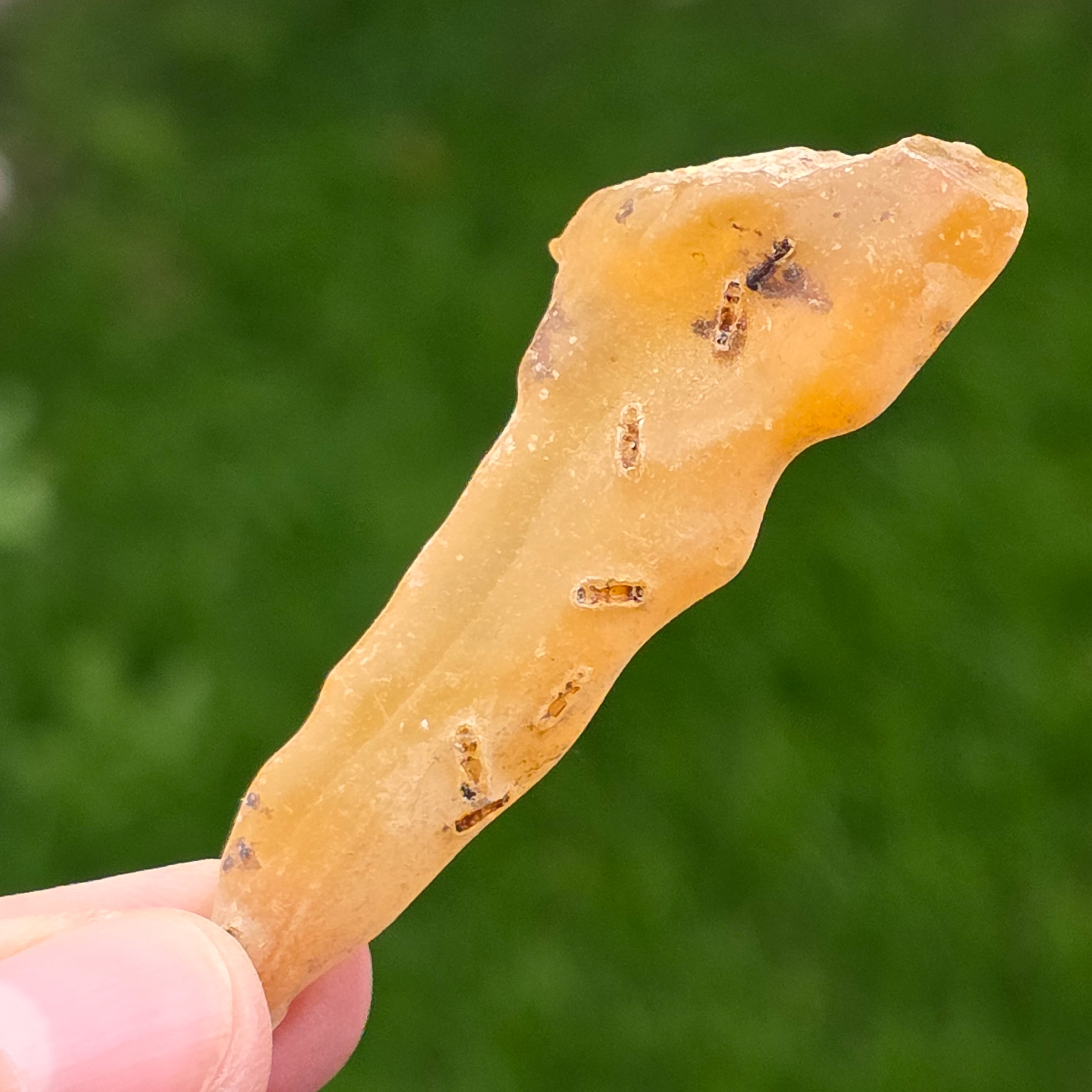 Il copal, spesso chiamato anche resina subfossile, è la forma primitiva dell'ambra – una resina naturale che manteneva la luce solare e la trasparenza prima di entrare nella vera fossilizzazione geologica. Proveniente dagli alberi tropicali, questo materiale delicato porta dentro di sé la memoria di diversi secoli o millenni, catturando frammenti della vita forestale così come esistevano un tempo. È più chiaro, più caldo al tatto e più brillante dell'ambra matura, e il suo aspetto liscio lo rende ideale per collezionisti, designer di gioielli e amanti di pezzi naturali con una storia. Nel copal, il momento non è ancora arrivato Pietra – è ancora leggera, ancora movimento, promessa.
