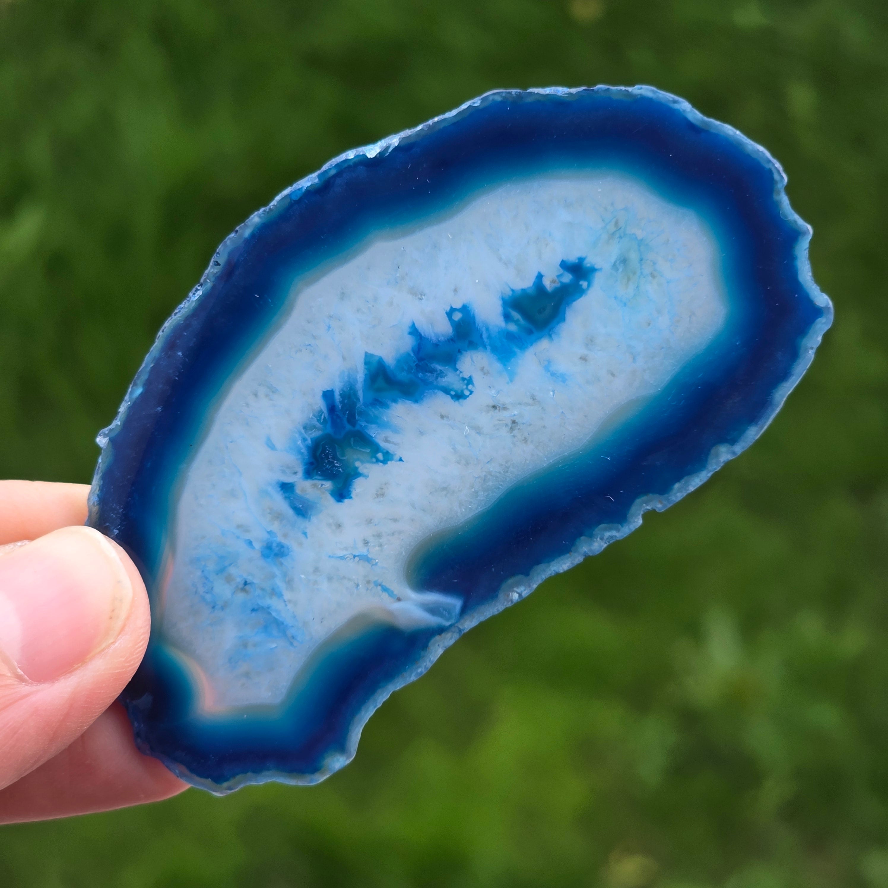 La calcedonia blu, nota anche come agata blu o calcedonia del cielo, è una varietà di quarzo microcristallino che presenta sfumature di blu.