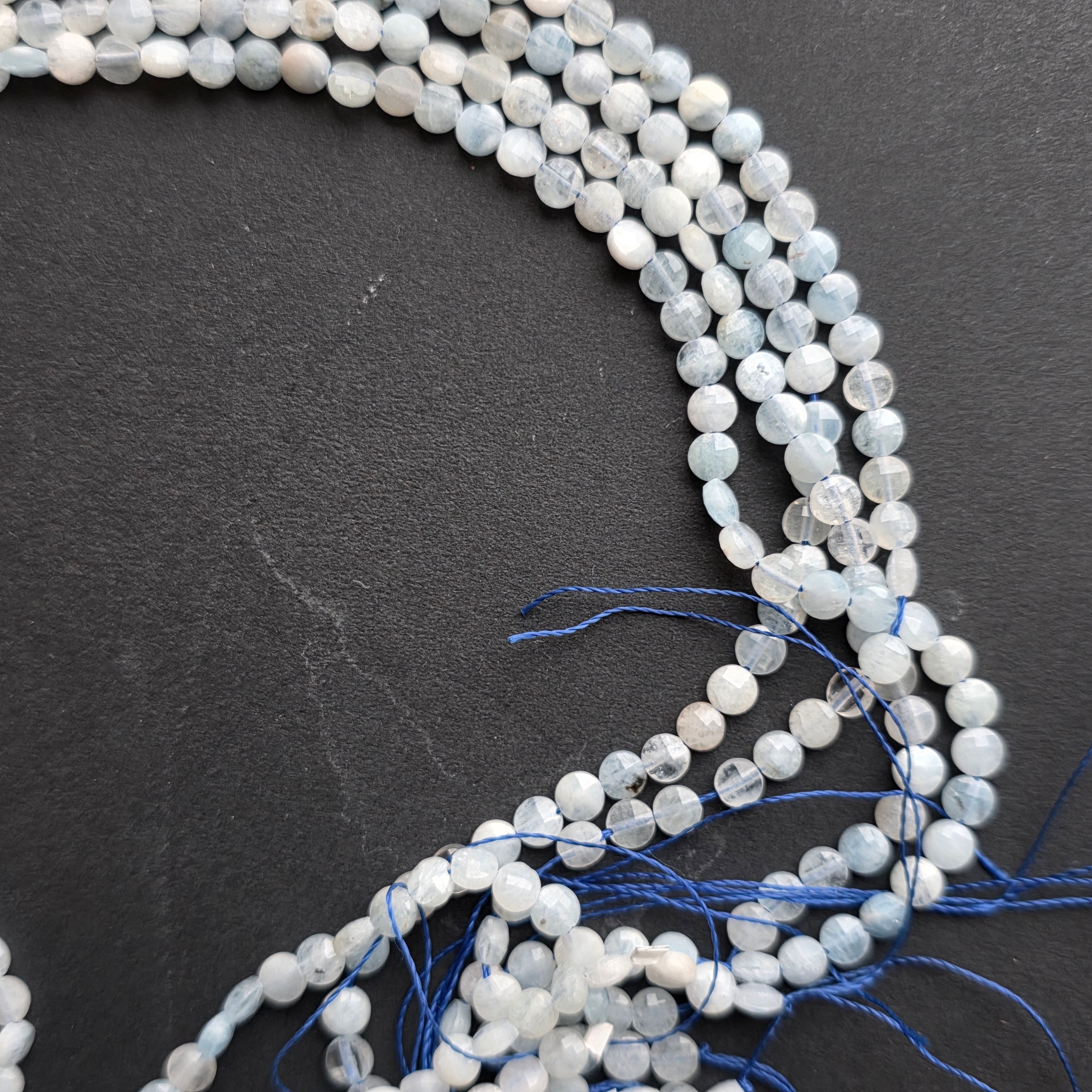 Filo di ACQUAMARINA, composto da dischi sfaccettati naturali, perfetto per collane, braccialetti o altri gioielli fatti a mano.