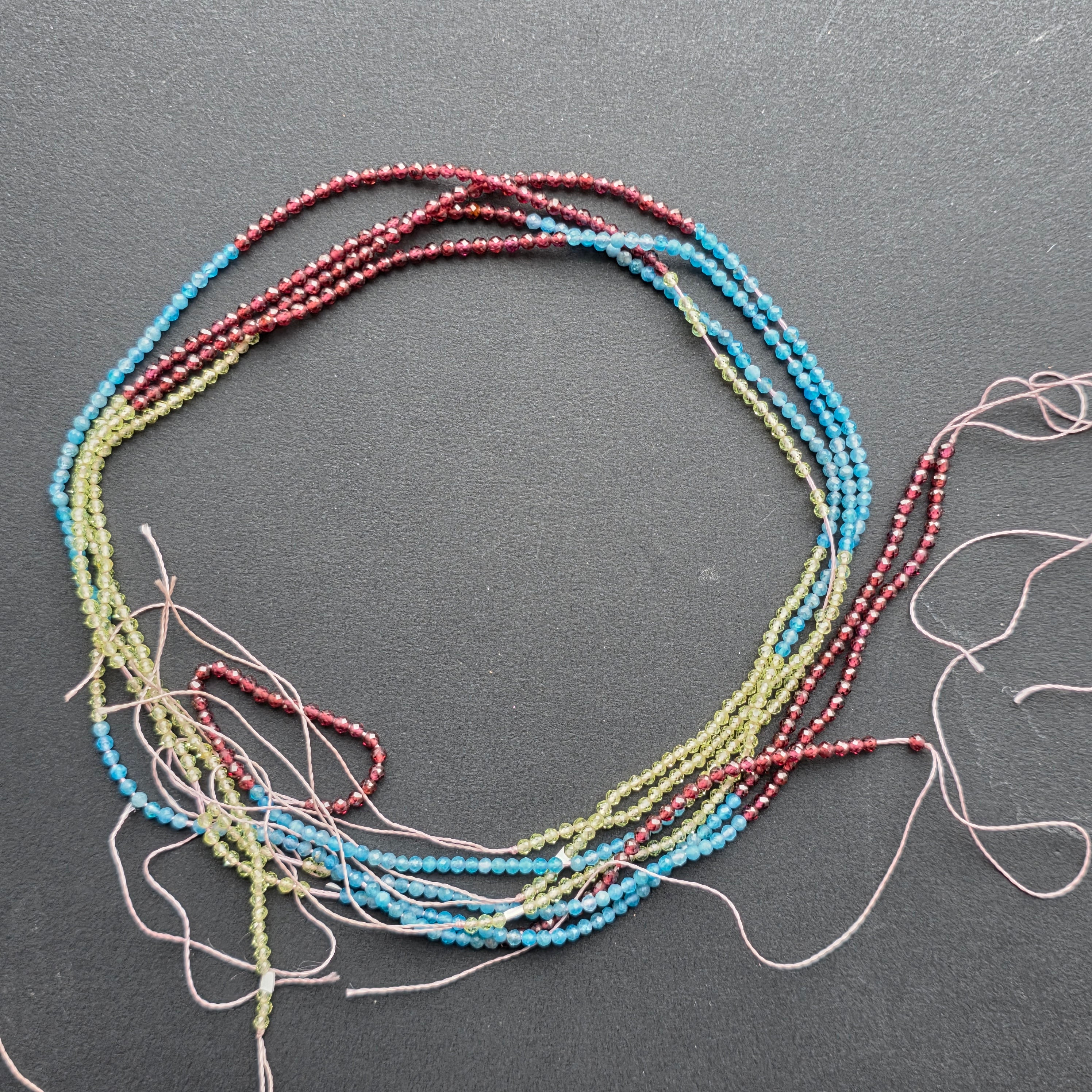 Recensioni - Filo di perline sfaccettate pietre semipreziose mix PERIDOT, APATITE, GRANATO