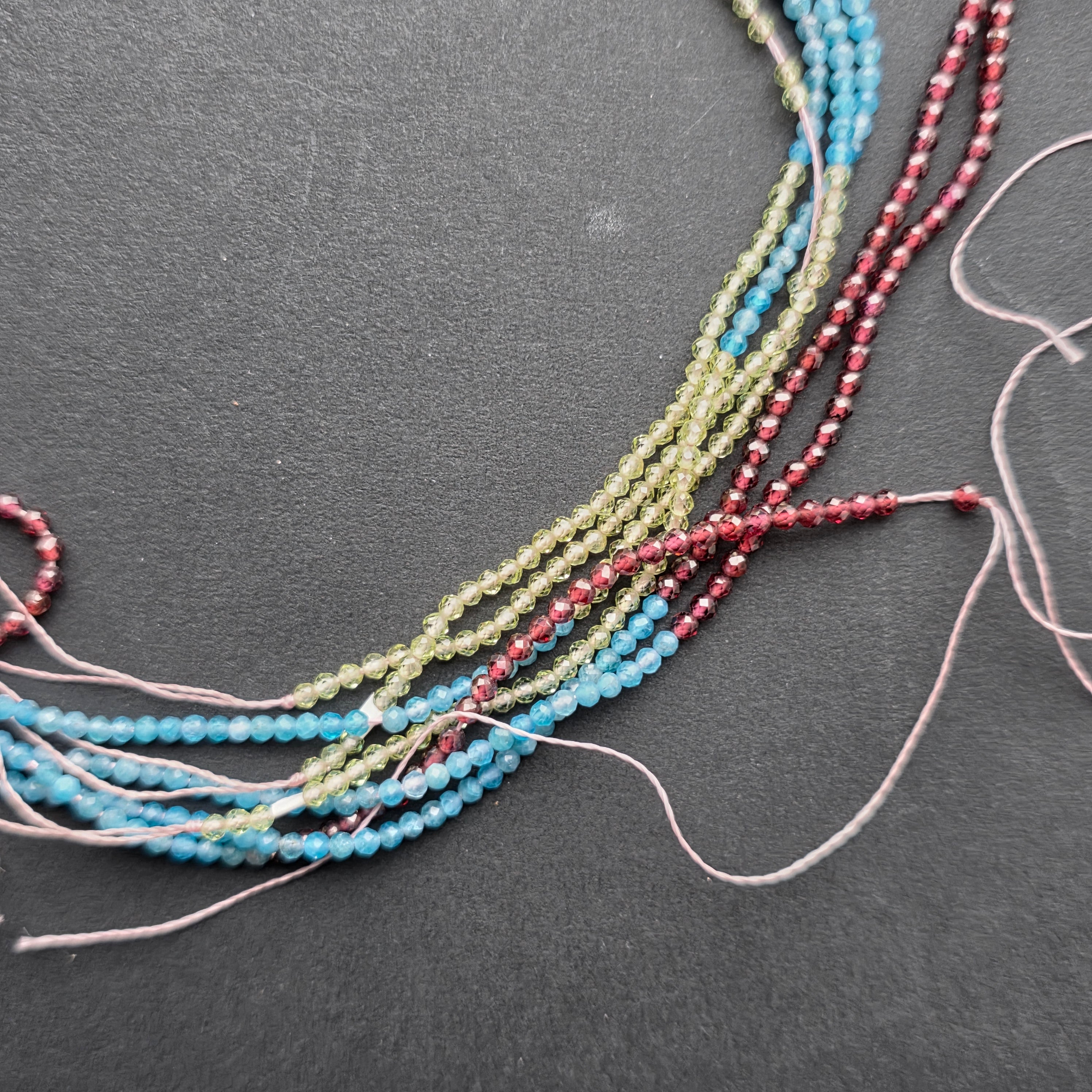 Descriere - Filo di perline sfaccettate pietre semipreziose mix PERIDOT, APATITE, GRANATO