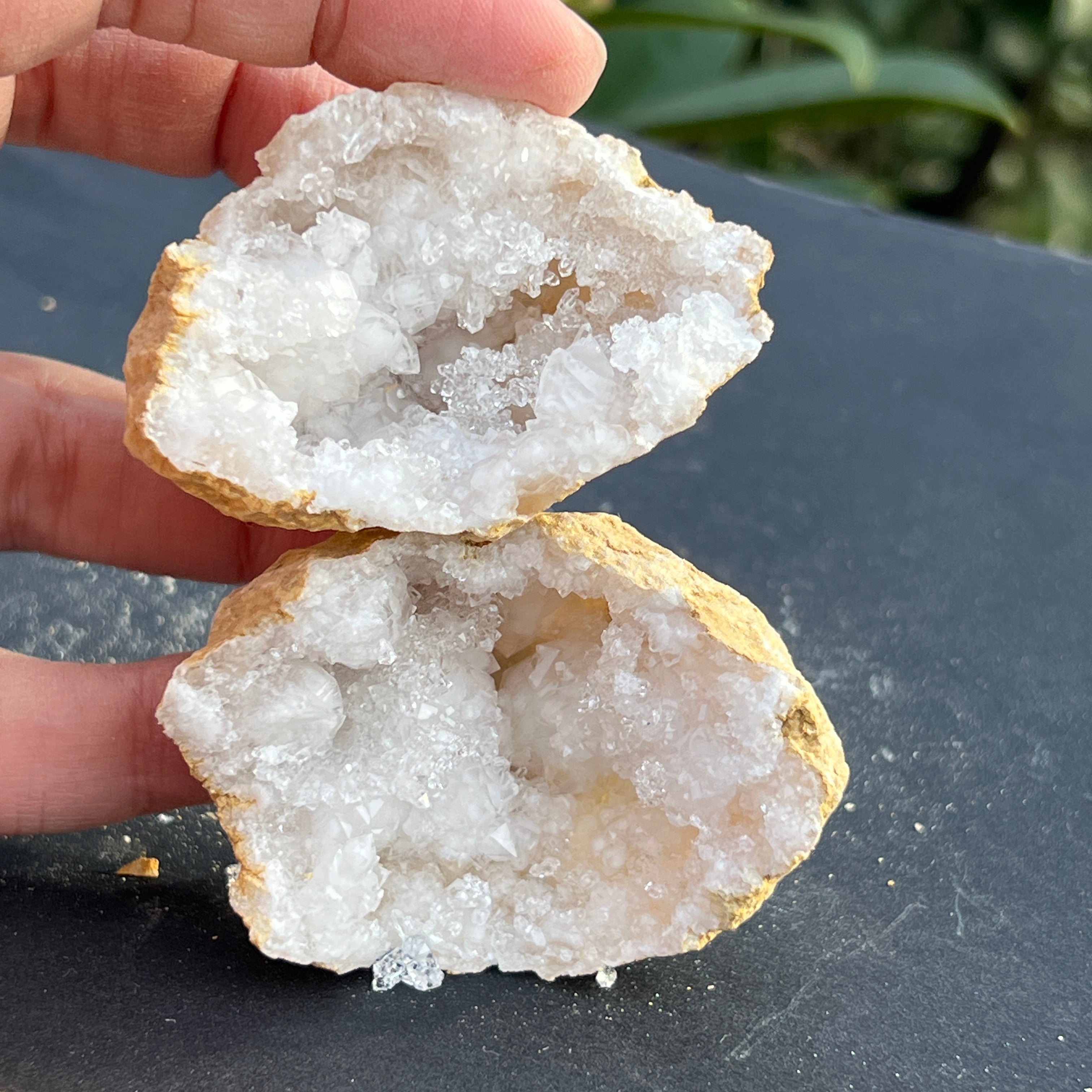 Le geodi di quarzo di roccia sono molto popolari tra collezionisti e appassionati, poiché rivelano una bellezza nascosta quando vengono tagliate o rotte, esponendo i cristalli lucidi all'interno. Queste geodi possono variare di dimensioni, dalle piccole formazioni, ideali per decorazioni o collezioni, fino a esemplari più grandi, che diventano veri e propri pezzi centrali nell'arredamento.
