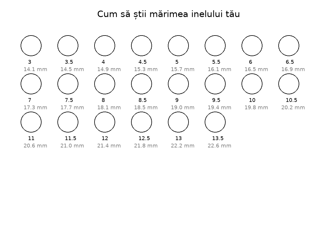 Mărime: 6 US. Dacă doriți să aflați care este mărimea dvs., vă recomandăm să măsurați un inel care vă vine bine și să comparați diametrul cu tabelul de mărimi disponibil în galeria foto a produsului.
