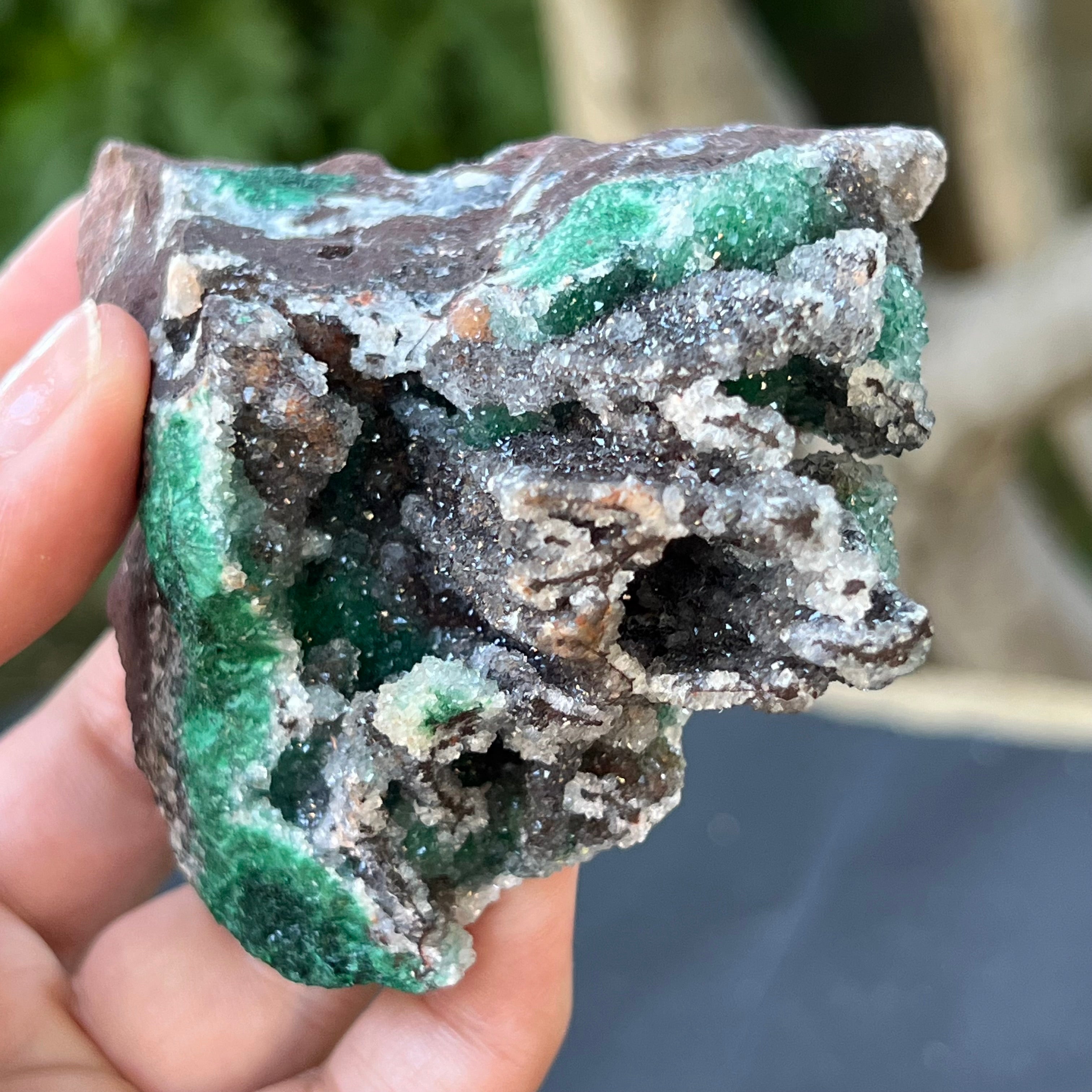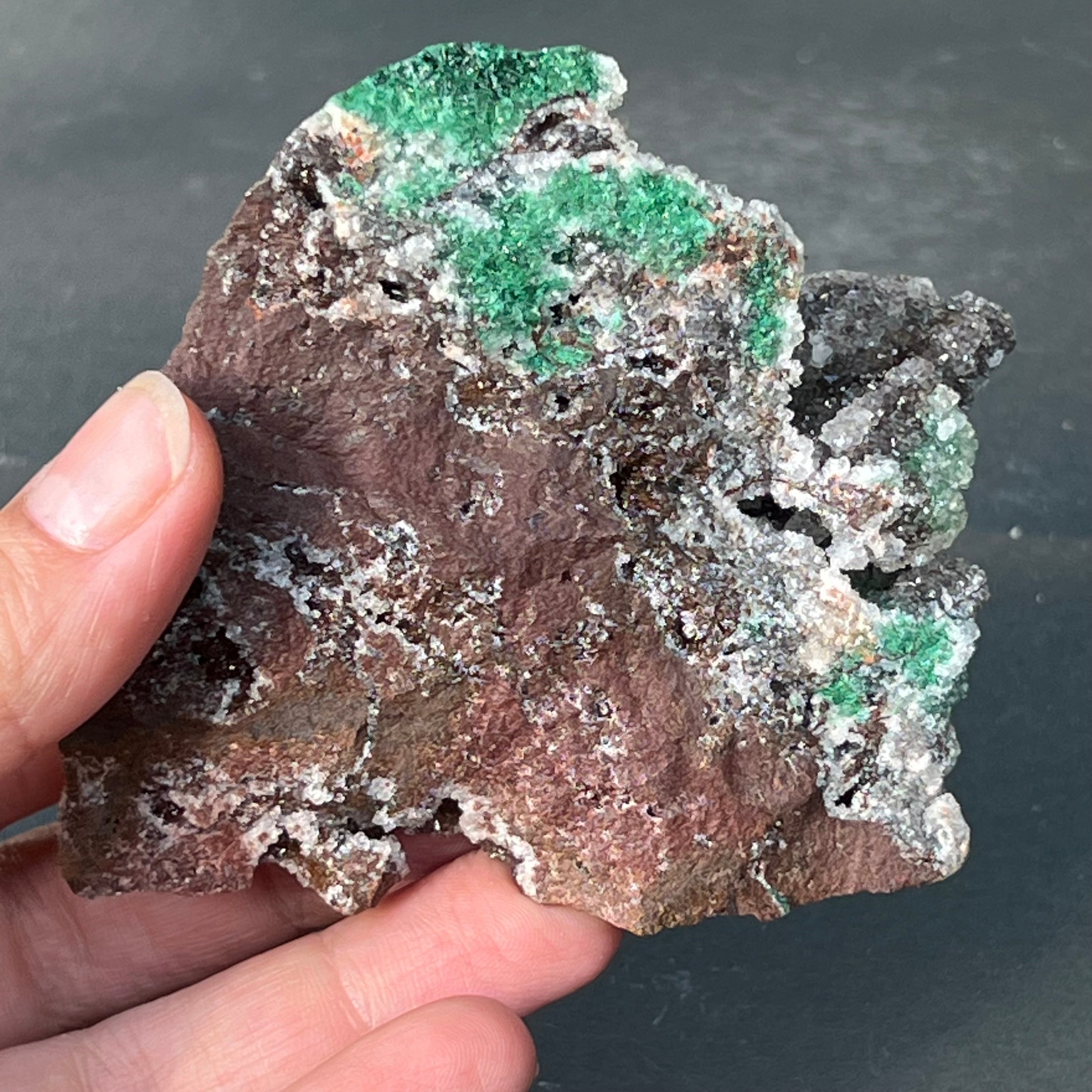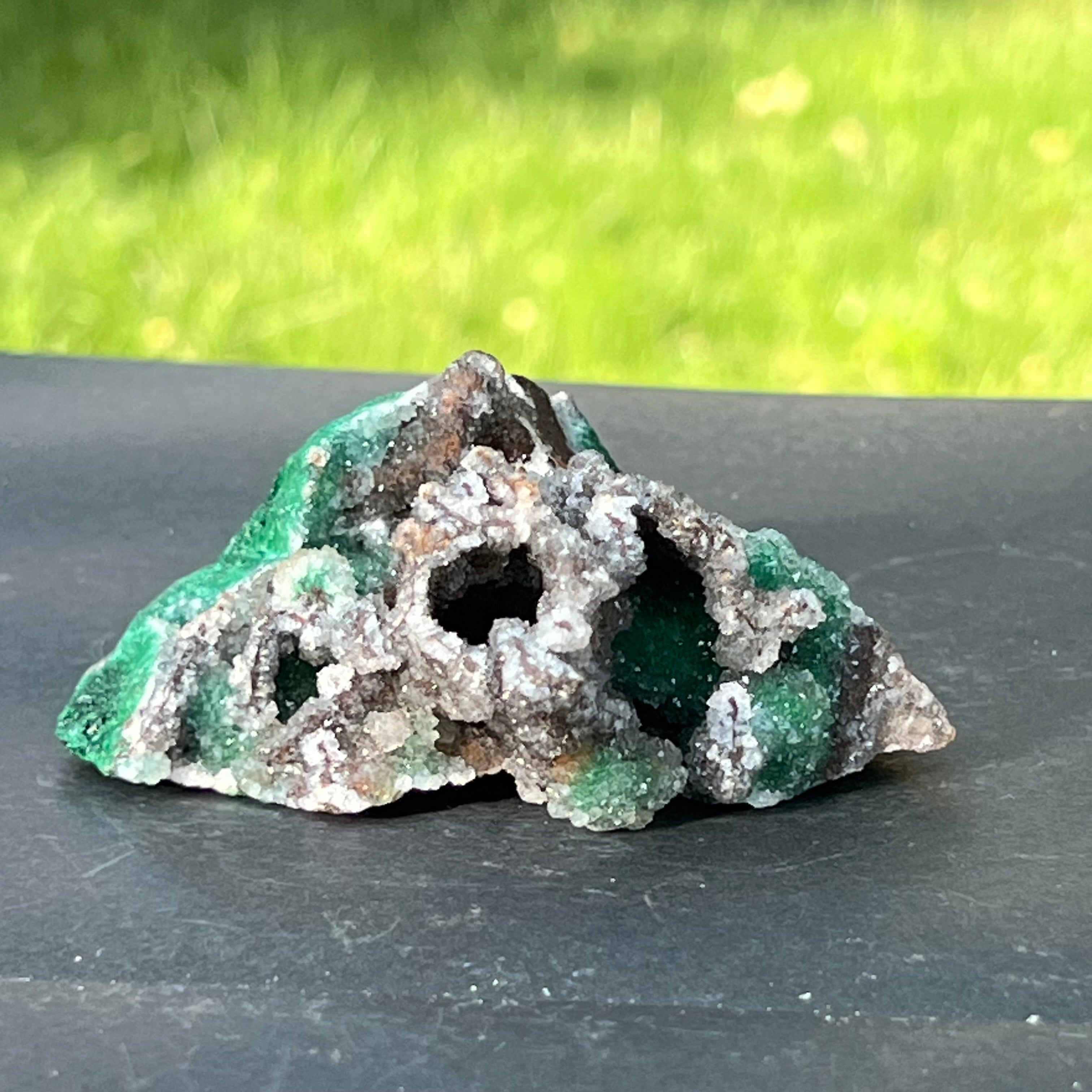 Malachite in matrice di quarzo, rame del Congo modello 1, dimensioni: 10*9*3,5 cm