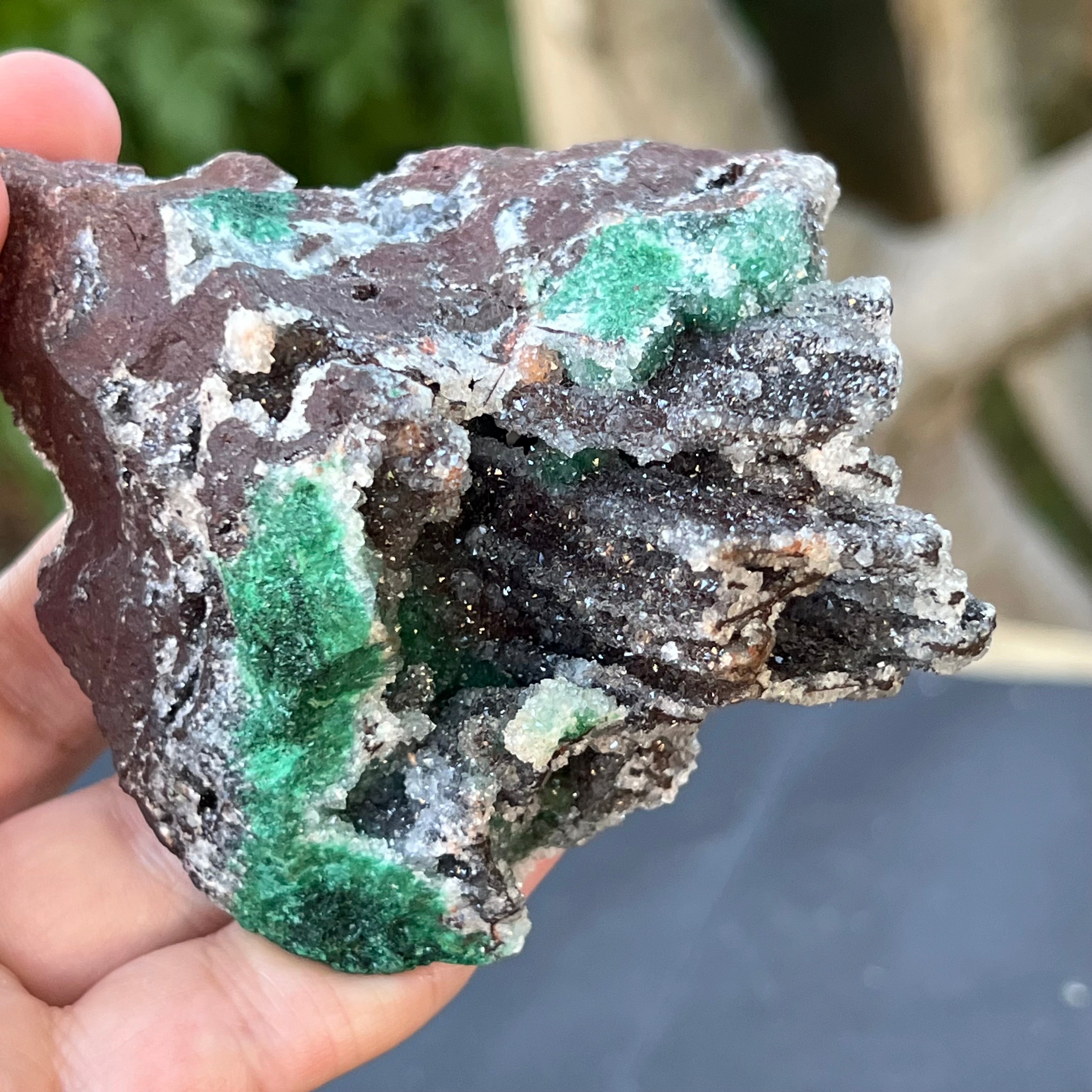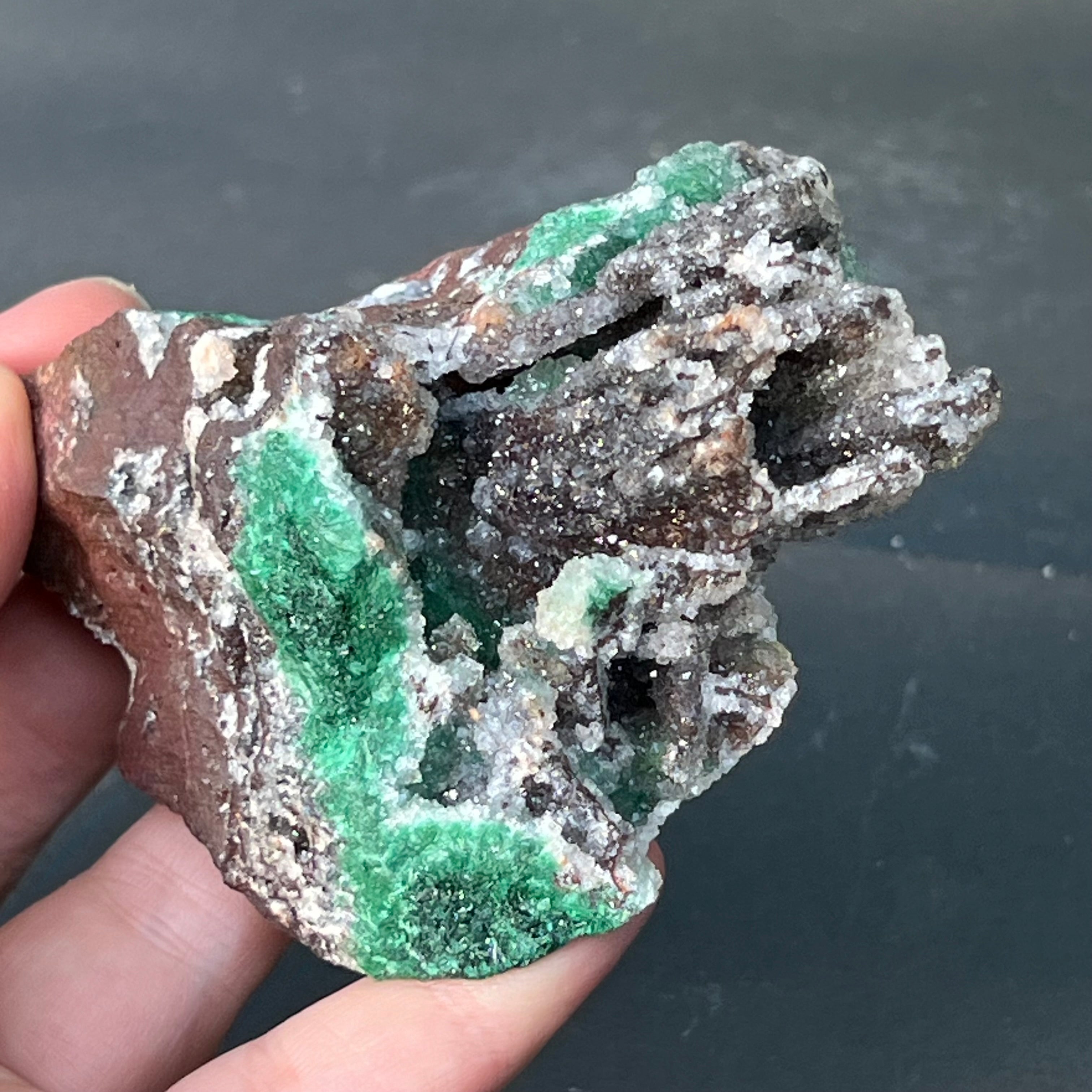 Malachite e dolomite in matrice di quarzo, rame del Congo modello 1