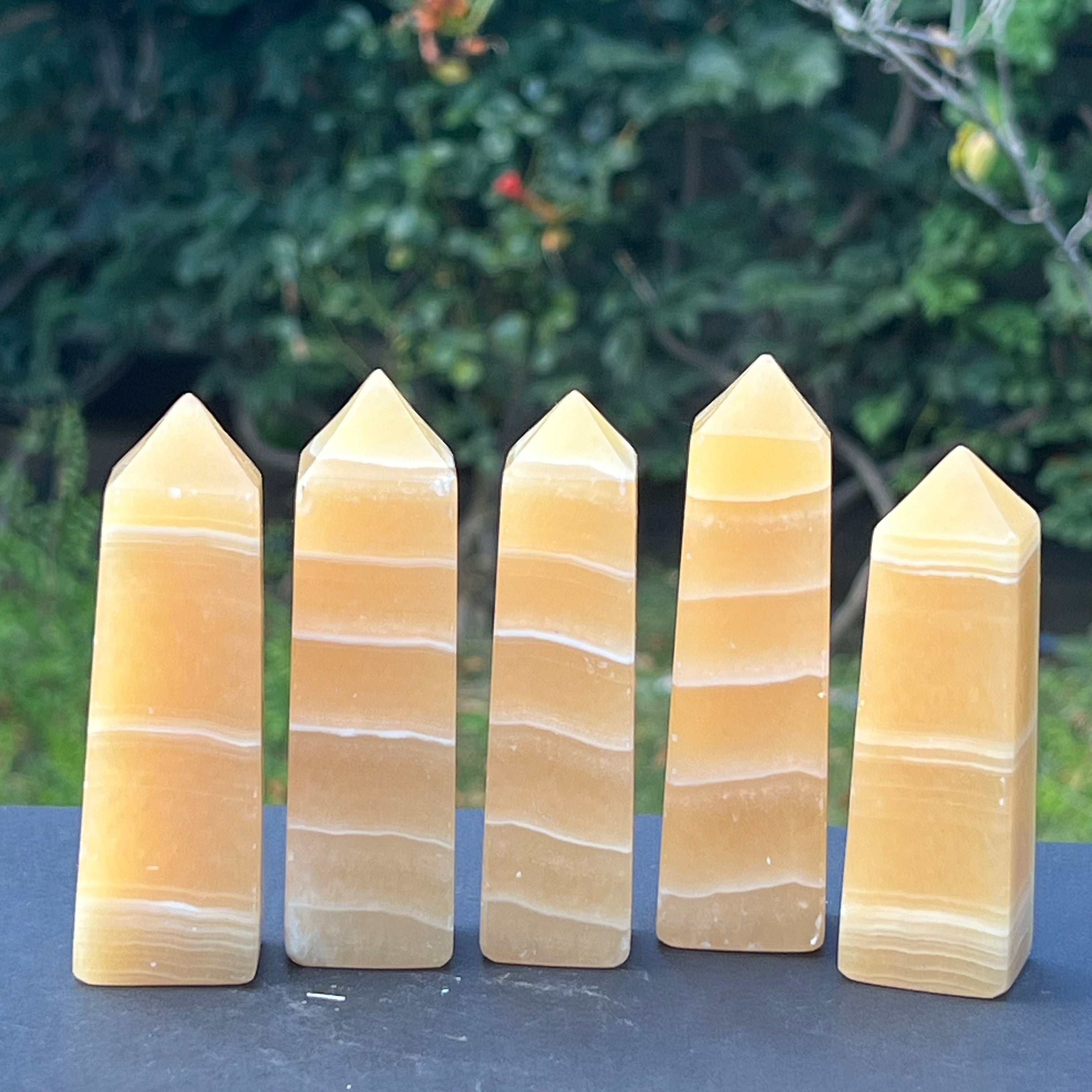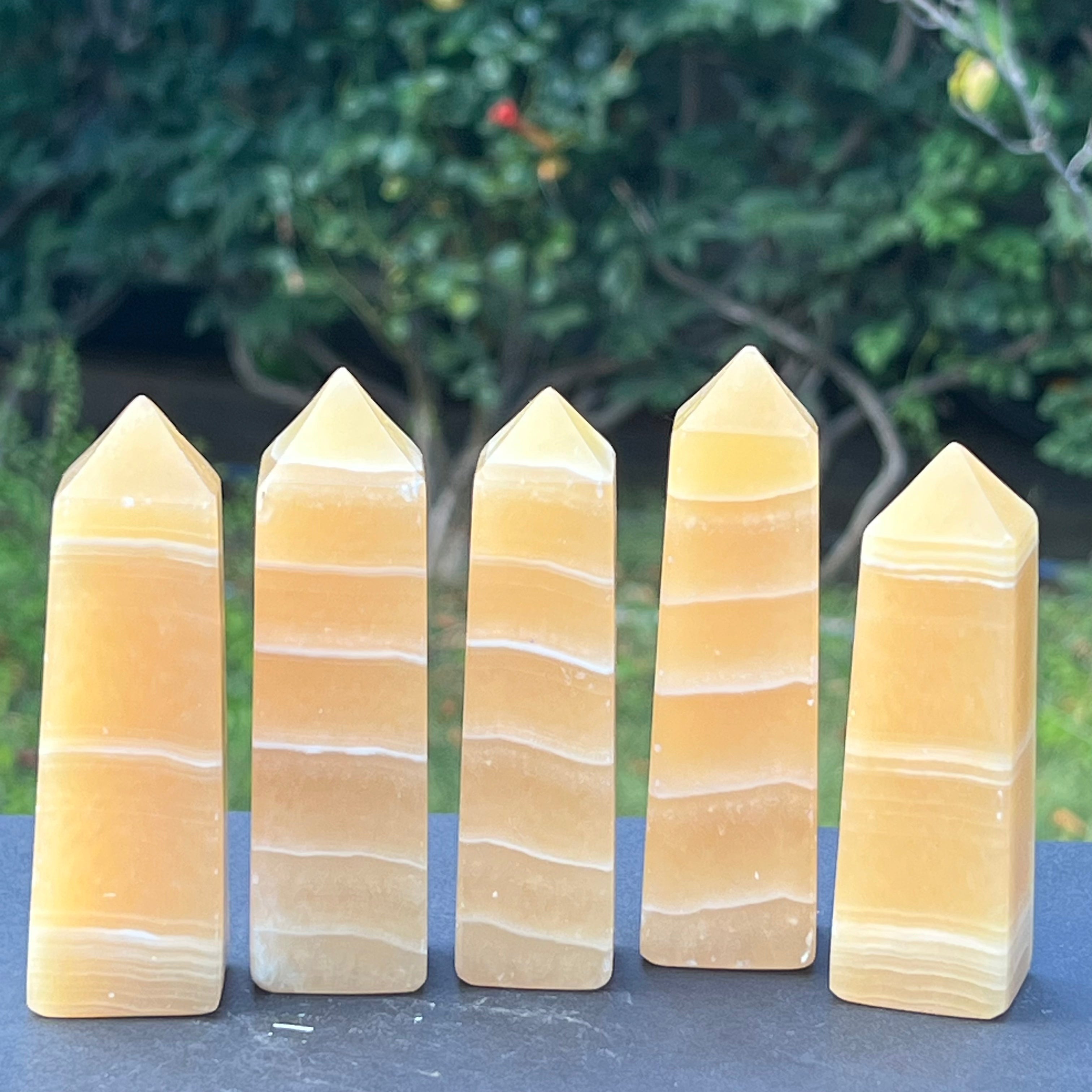 Obelisco zebrato in calcite 9-10 cm