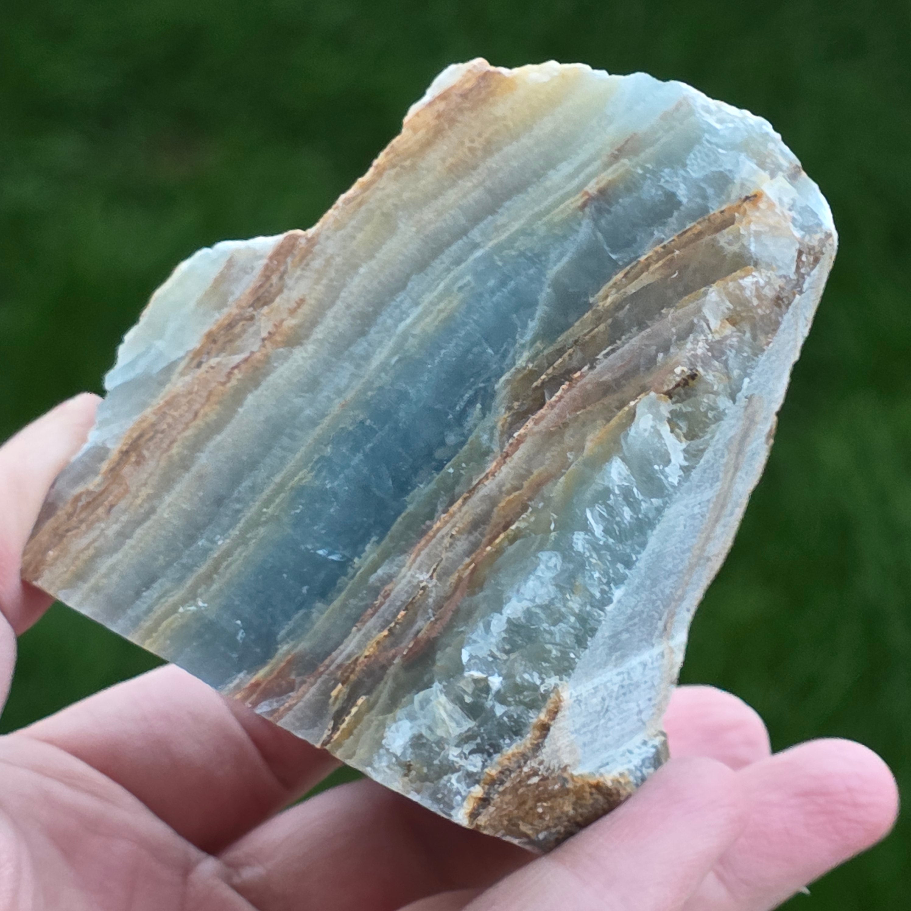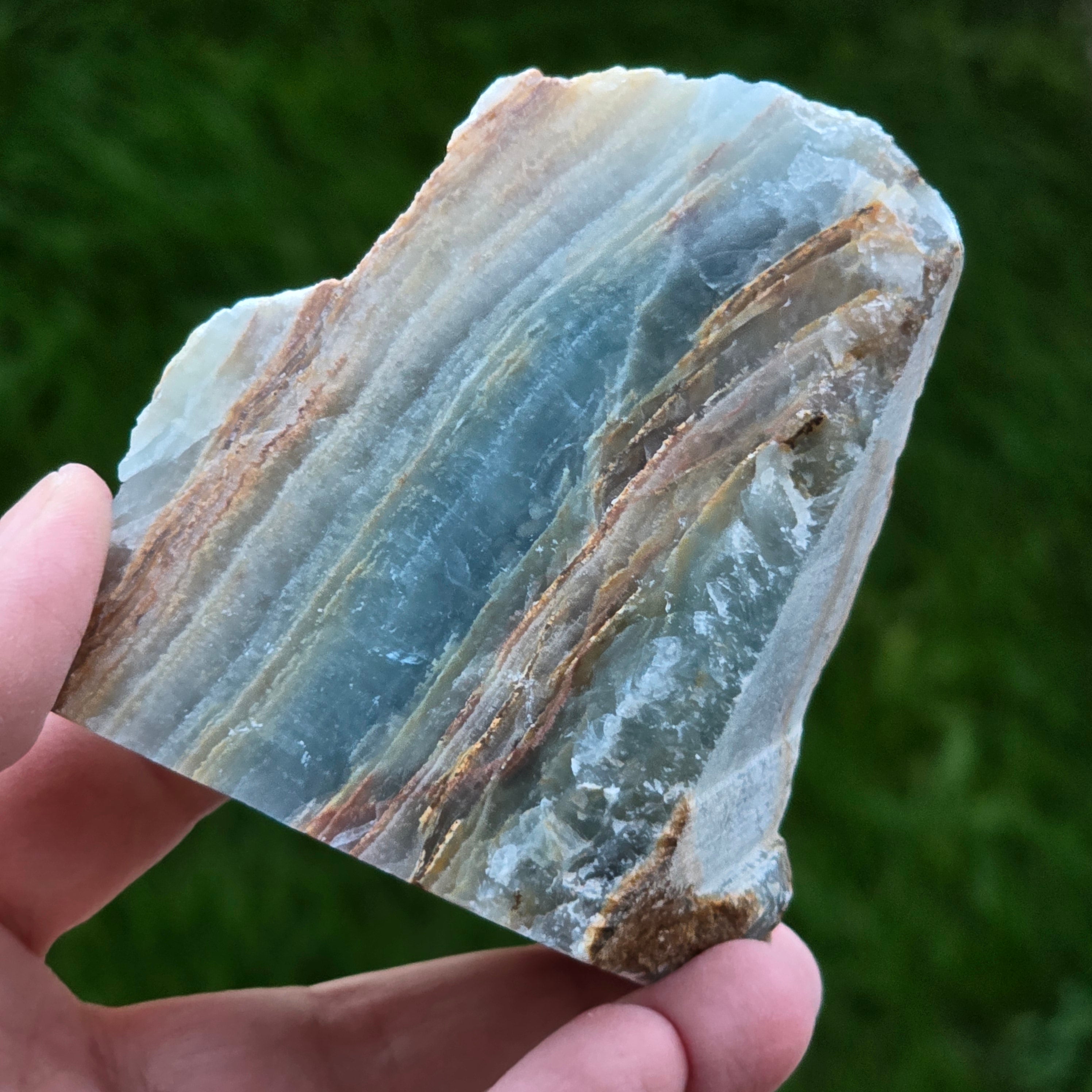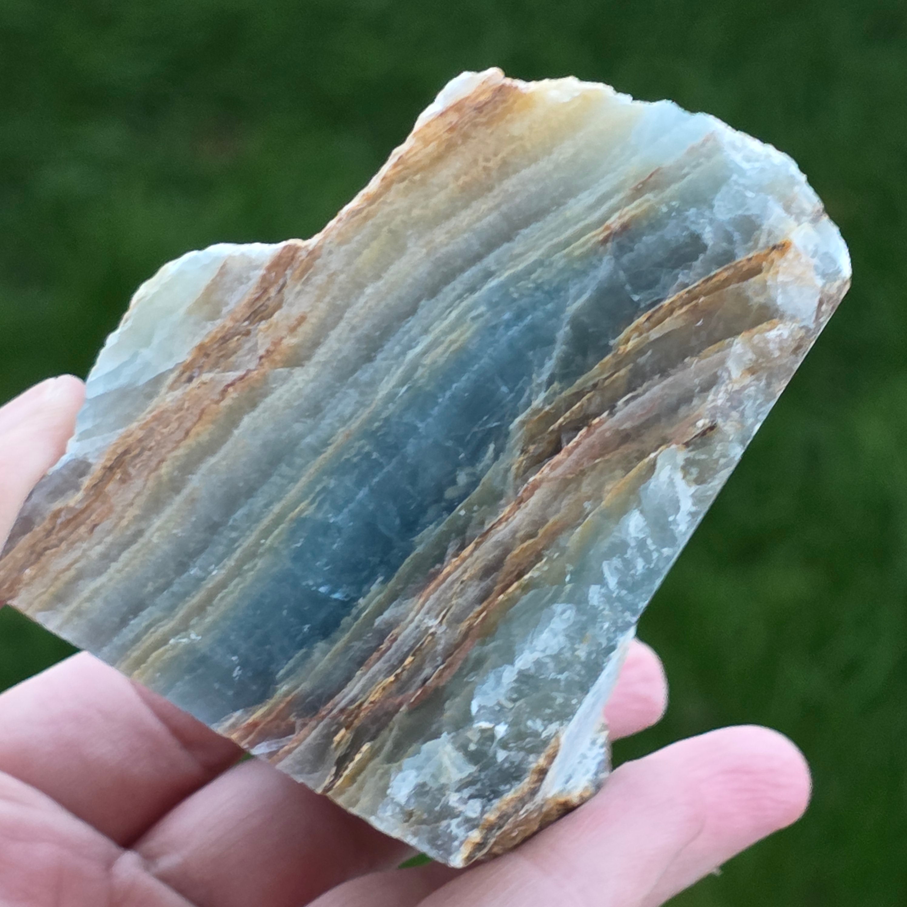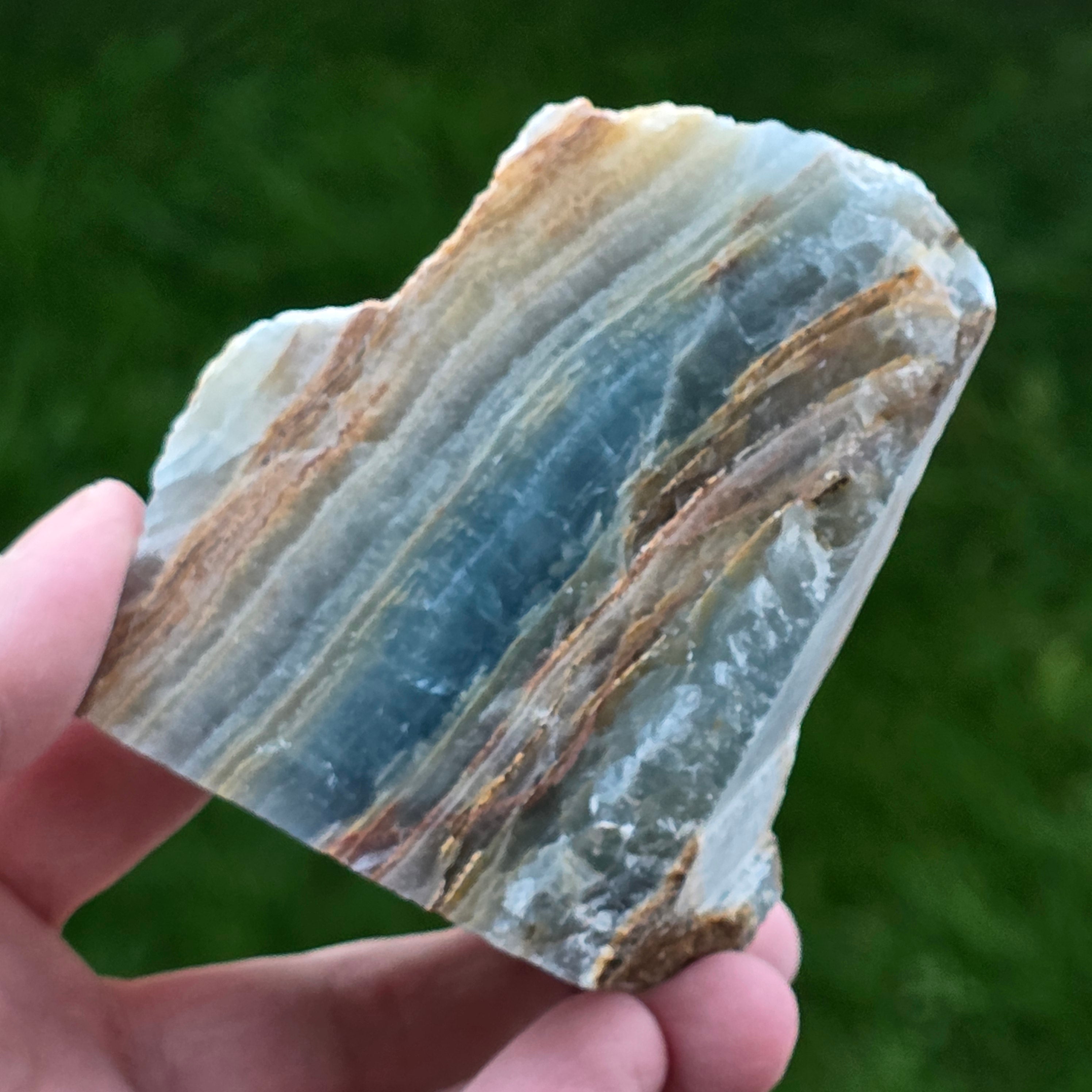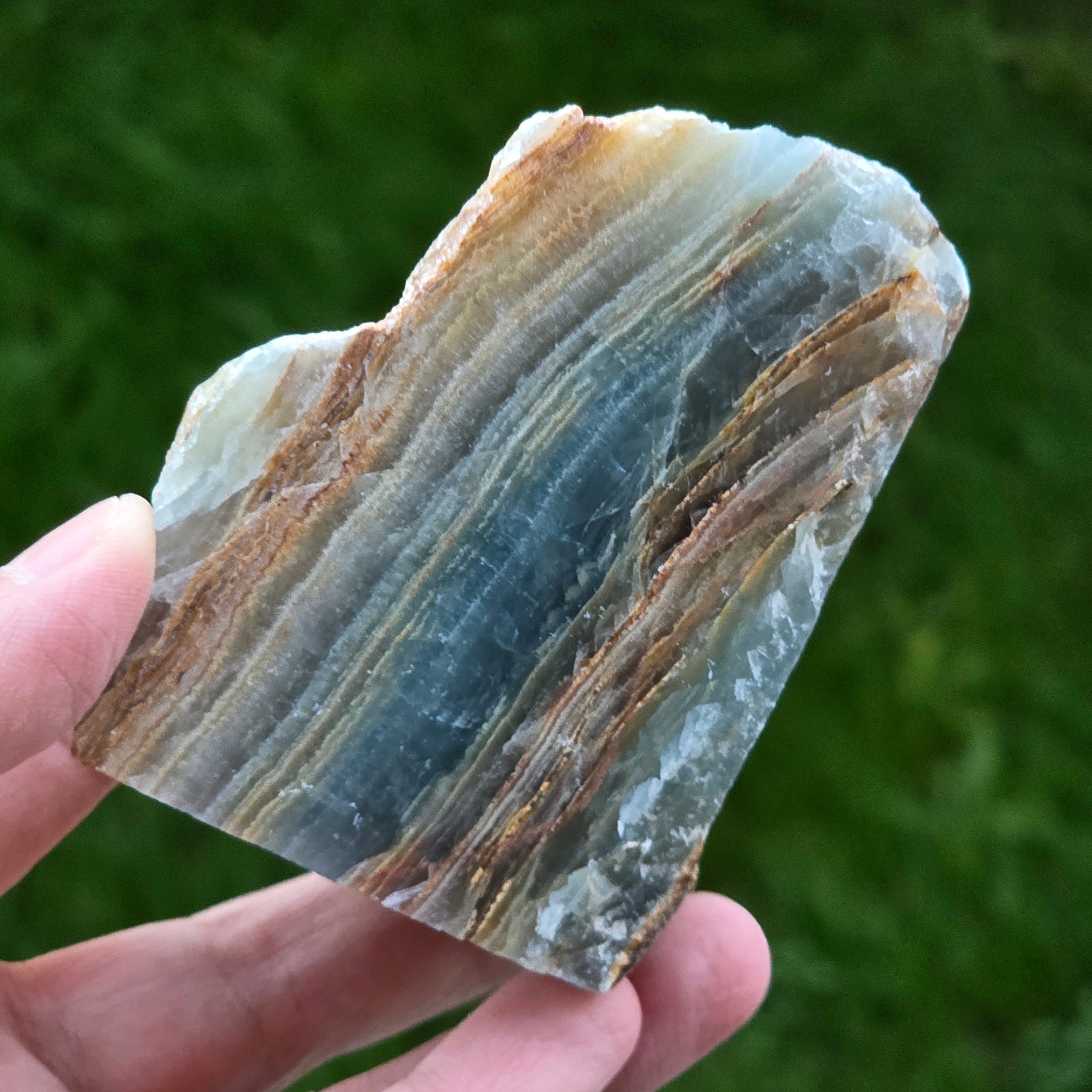 Descriere - Onix albastru piatra bruta polisata pe o față | Model 1