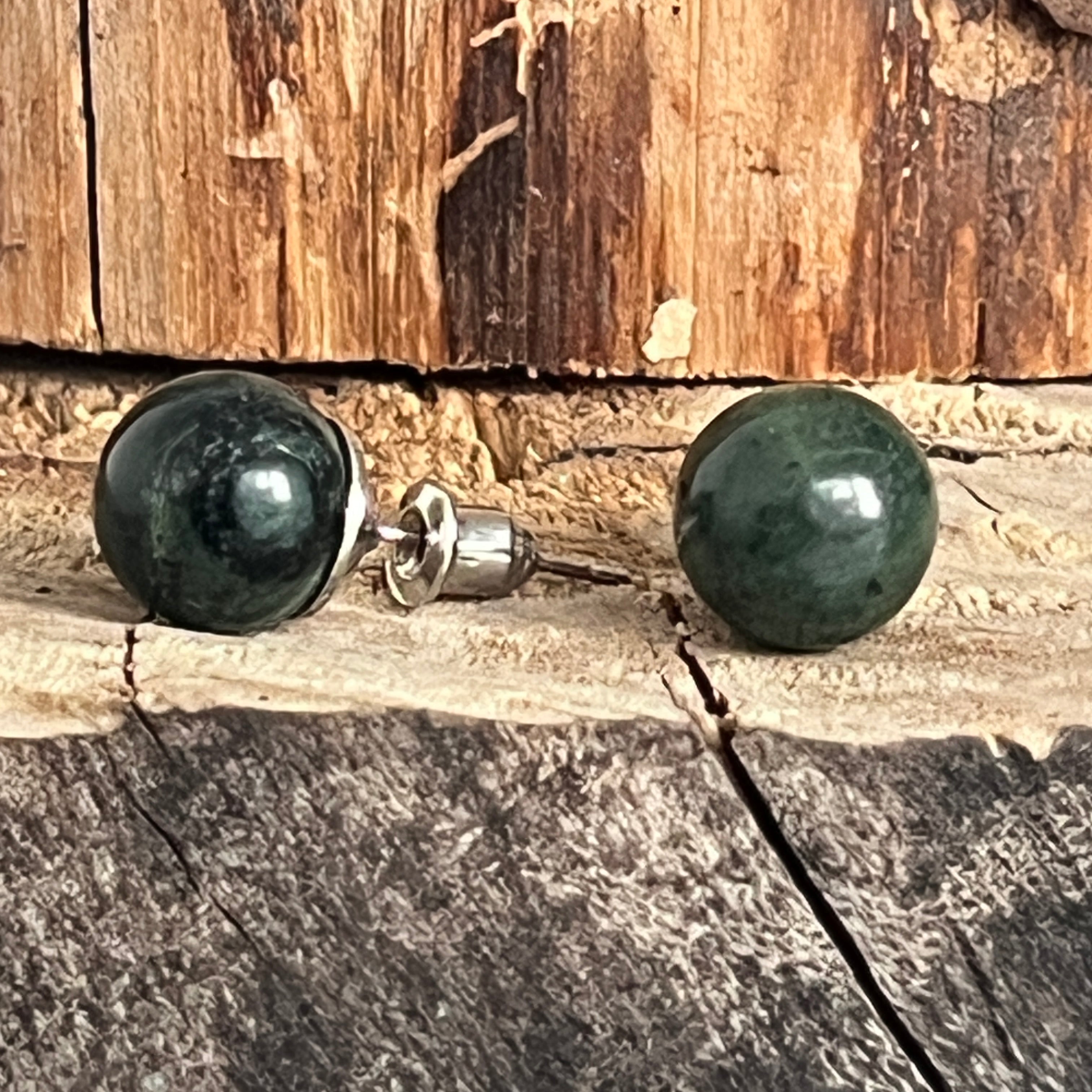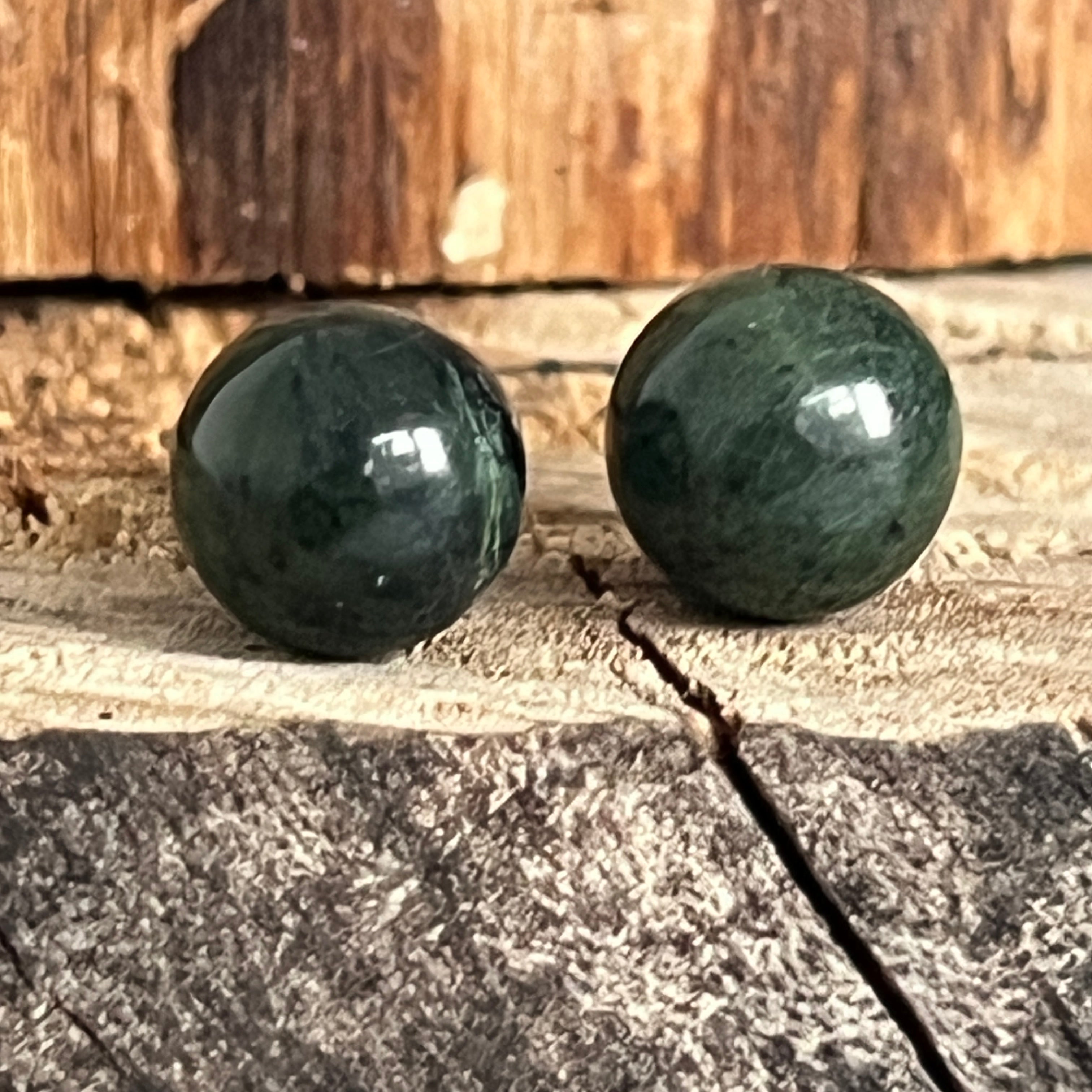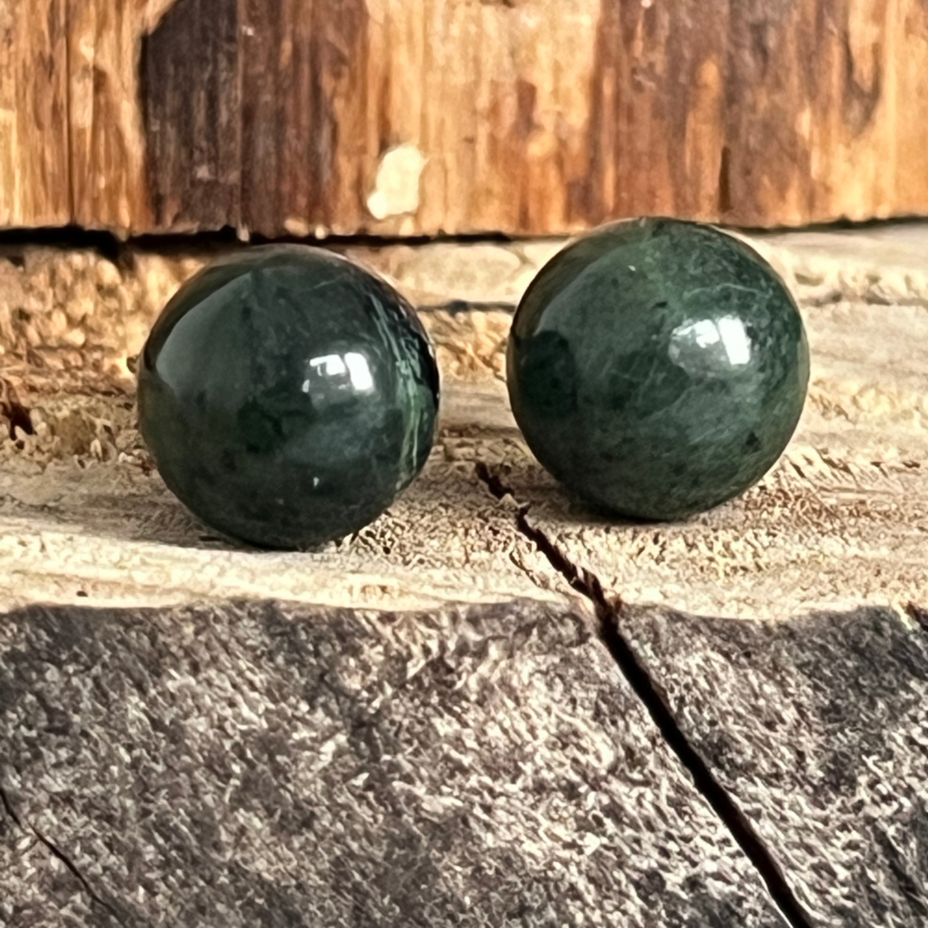 Descriere - Orecchini a stud di giada verde Sfere 10 mm