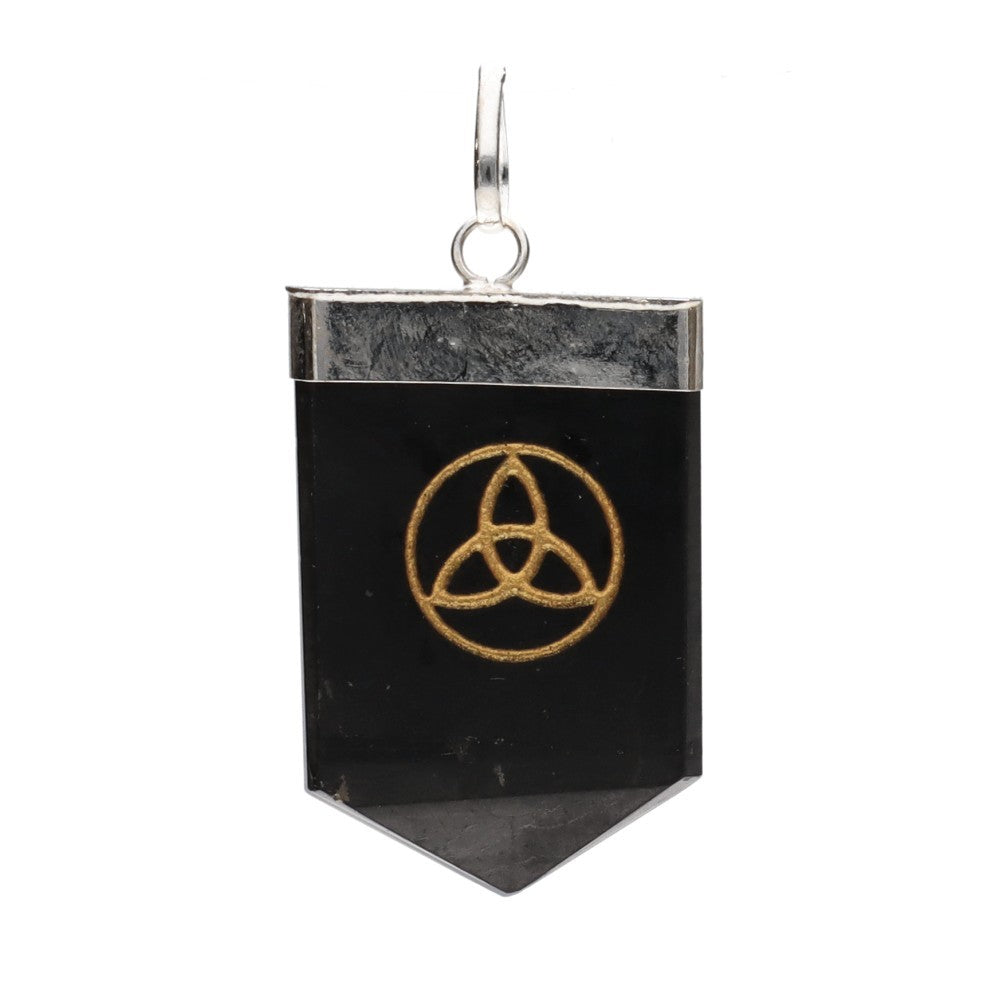 Acest pandantiv cu simbolul Triquetra, realizat din șungit natural și montat pe alamă placată cu argint, îmbină energia protectoare a cristalului cu unul dintre cele mai vechi simboluri ale tradițiilor celtice. Designul său evocă ideea de unitate, echilibru și interconectare între cele trei dimensiuni fundamentale ale existenței.