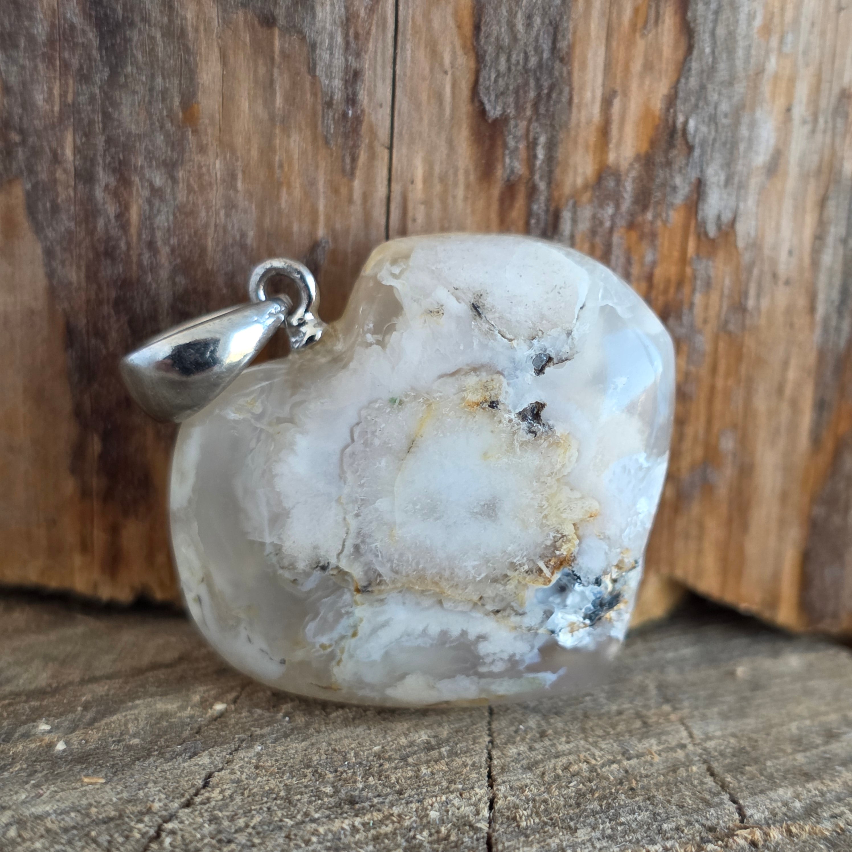 Pendente in agata corallo fiore, una pietra naturale apprezzata per i suoi motivi organici che ricordano le forme delicate dei coralli o dei fiori.