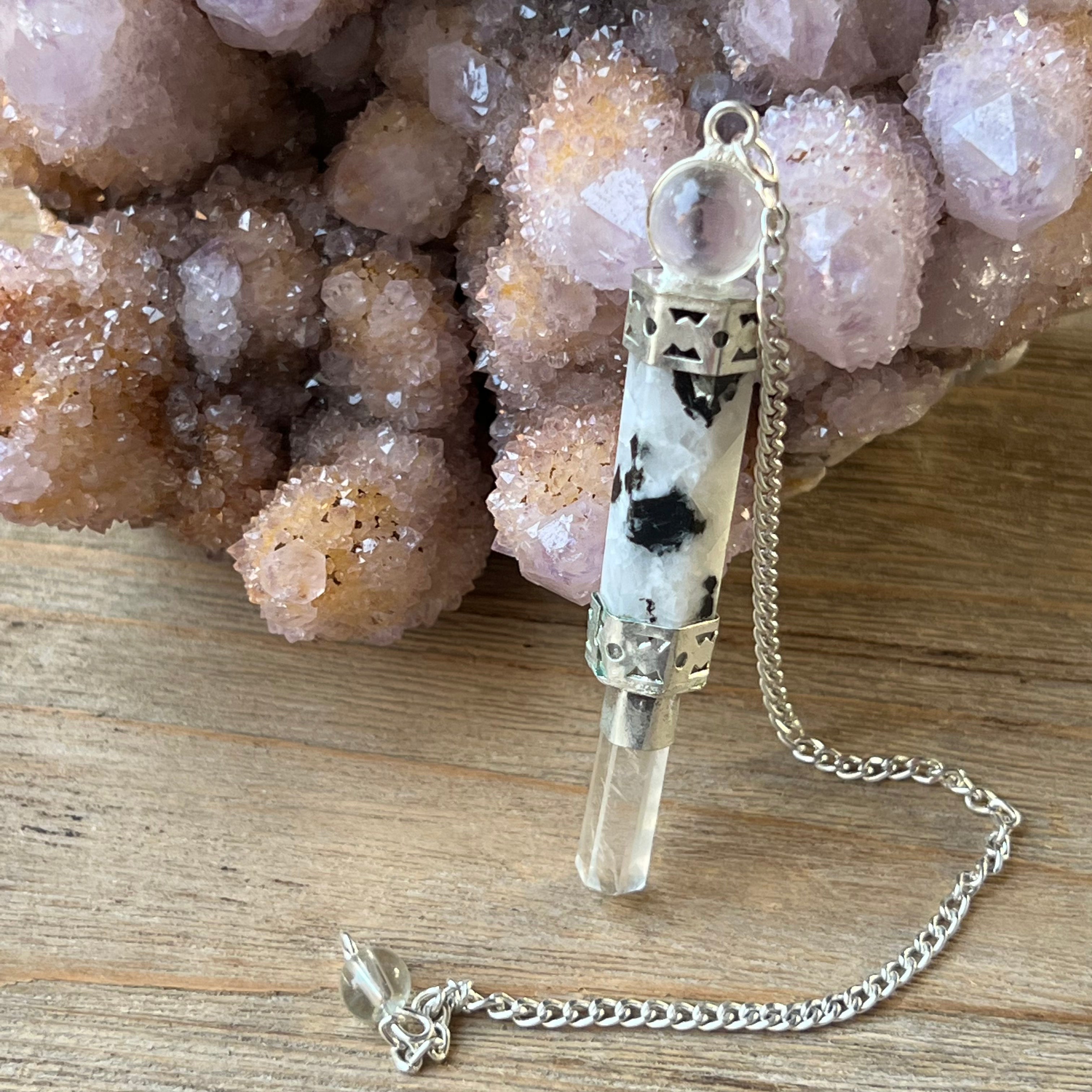 Pendolo indiano in pietra di luna arcobaleno 8,5 cm