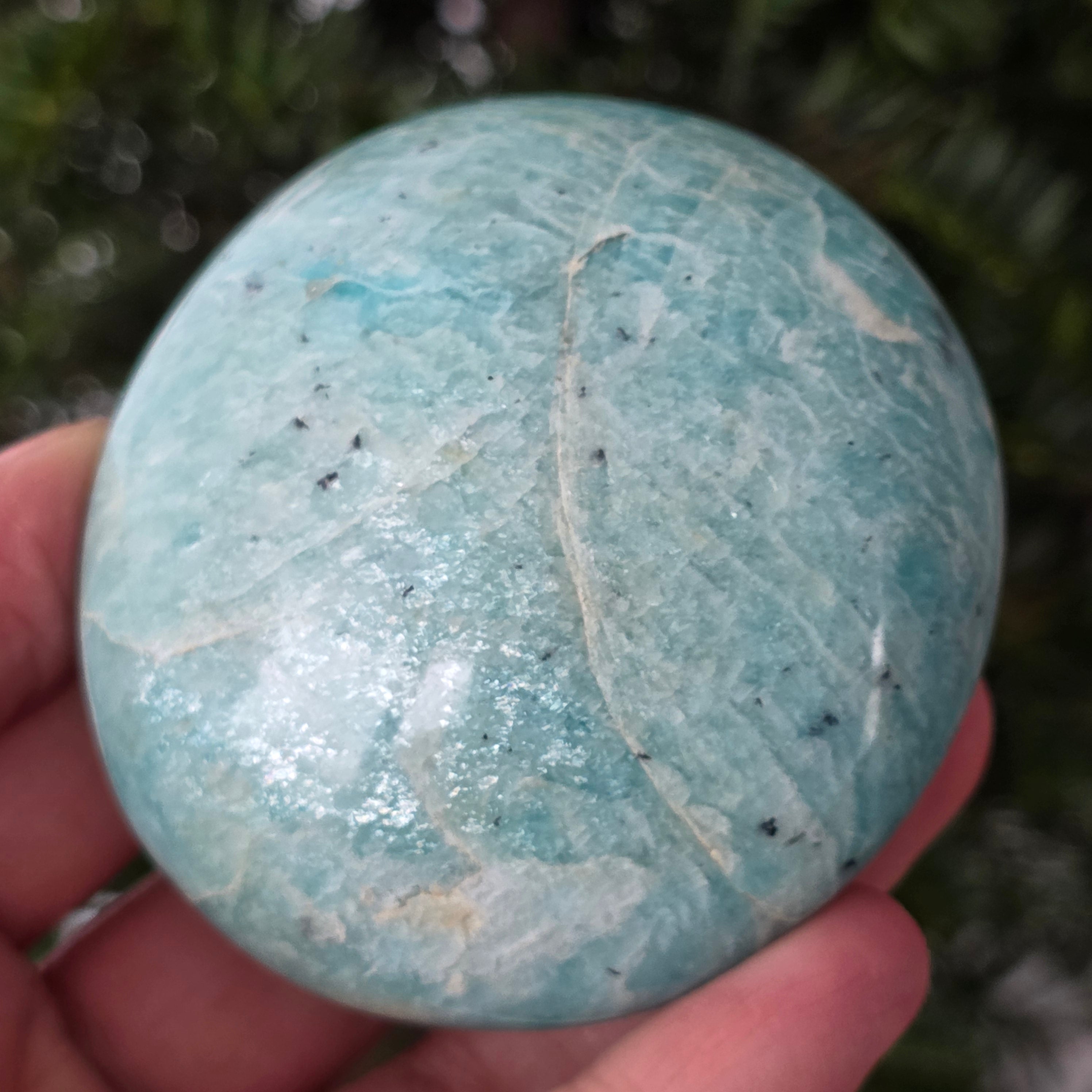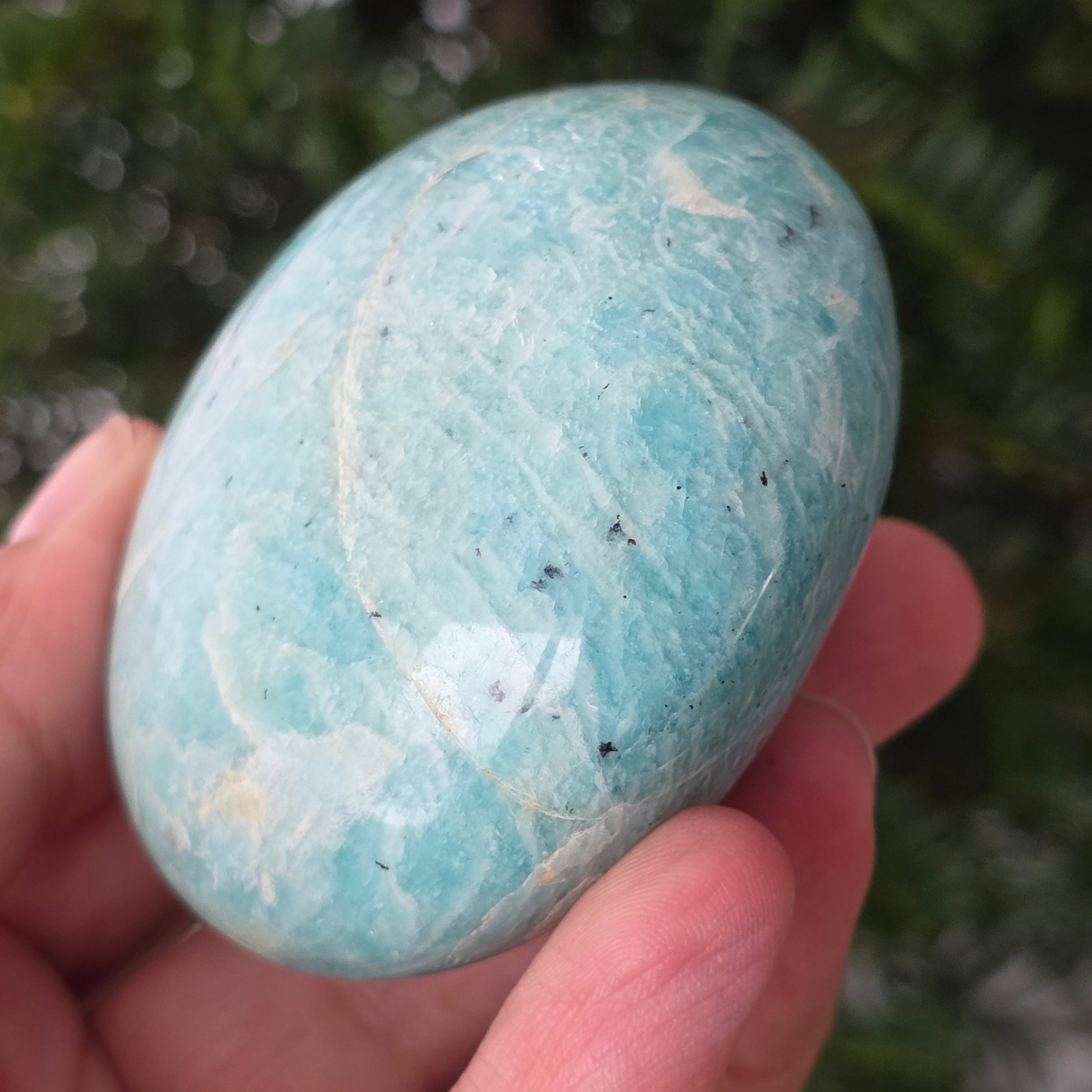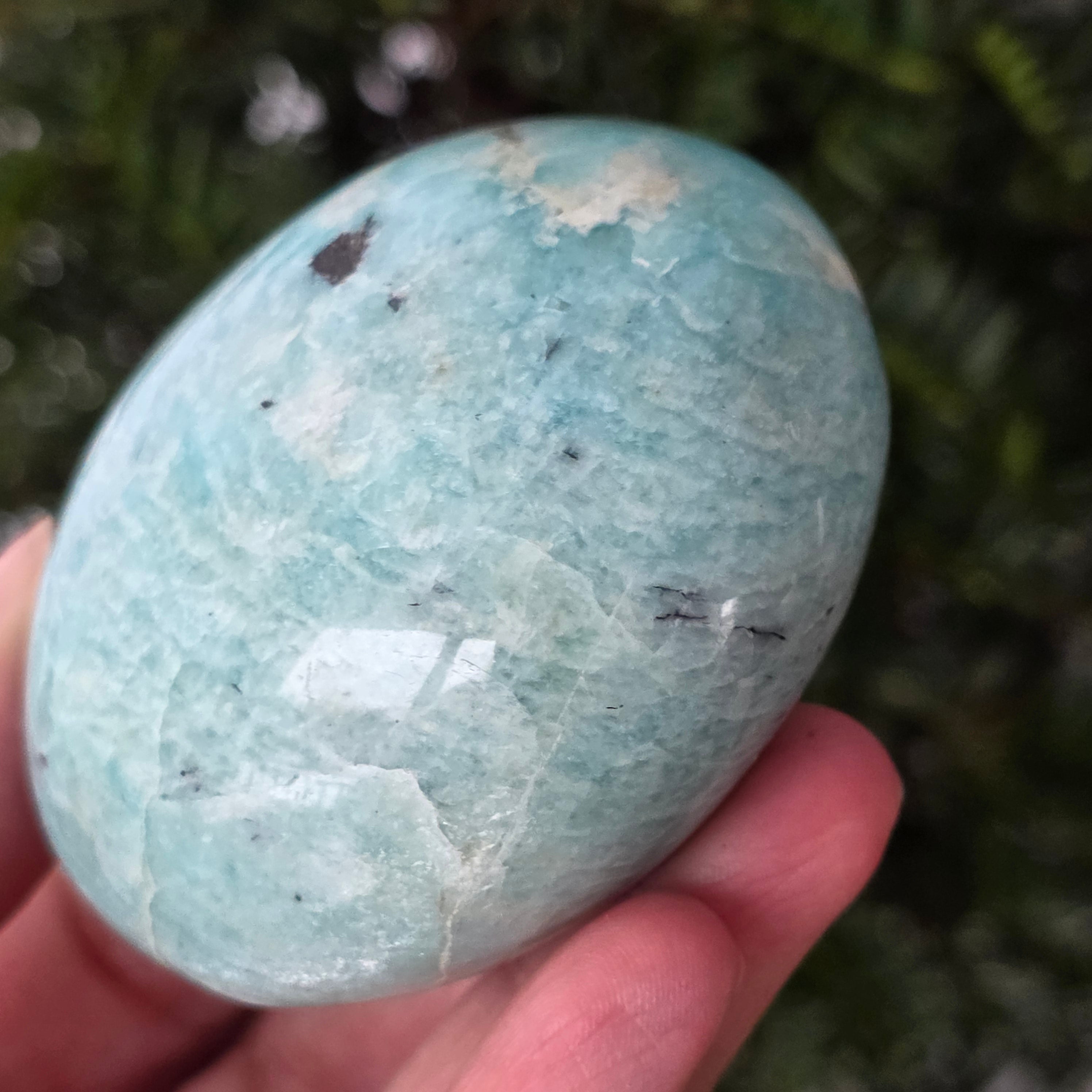 L'Amazzonite è anche chiamata portatrice di pace. È considerata una pietra dell'equilibrio, che può aiutare a calmare il nervosismo, le emozioni e che incoraggia l'espressione autentica e migliora le relazioni con chi ti circonda.
