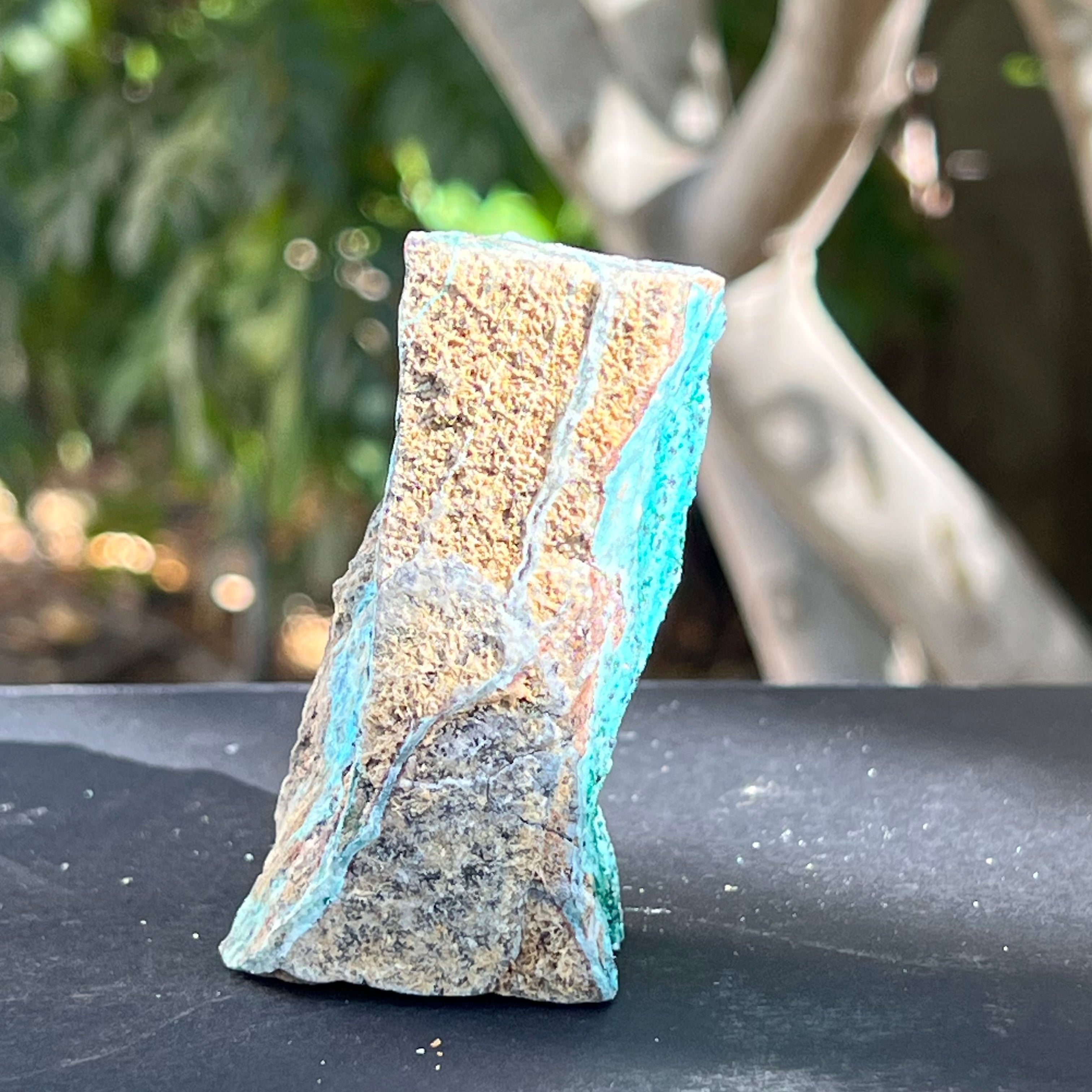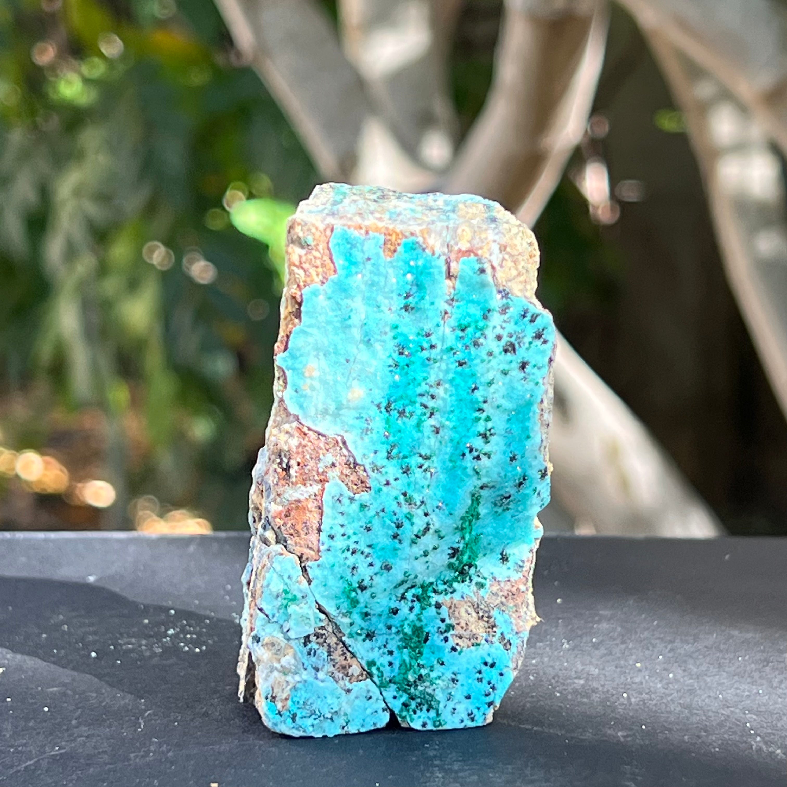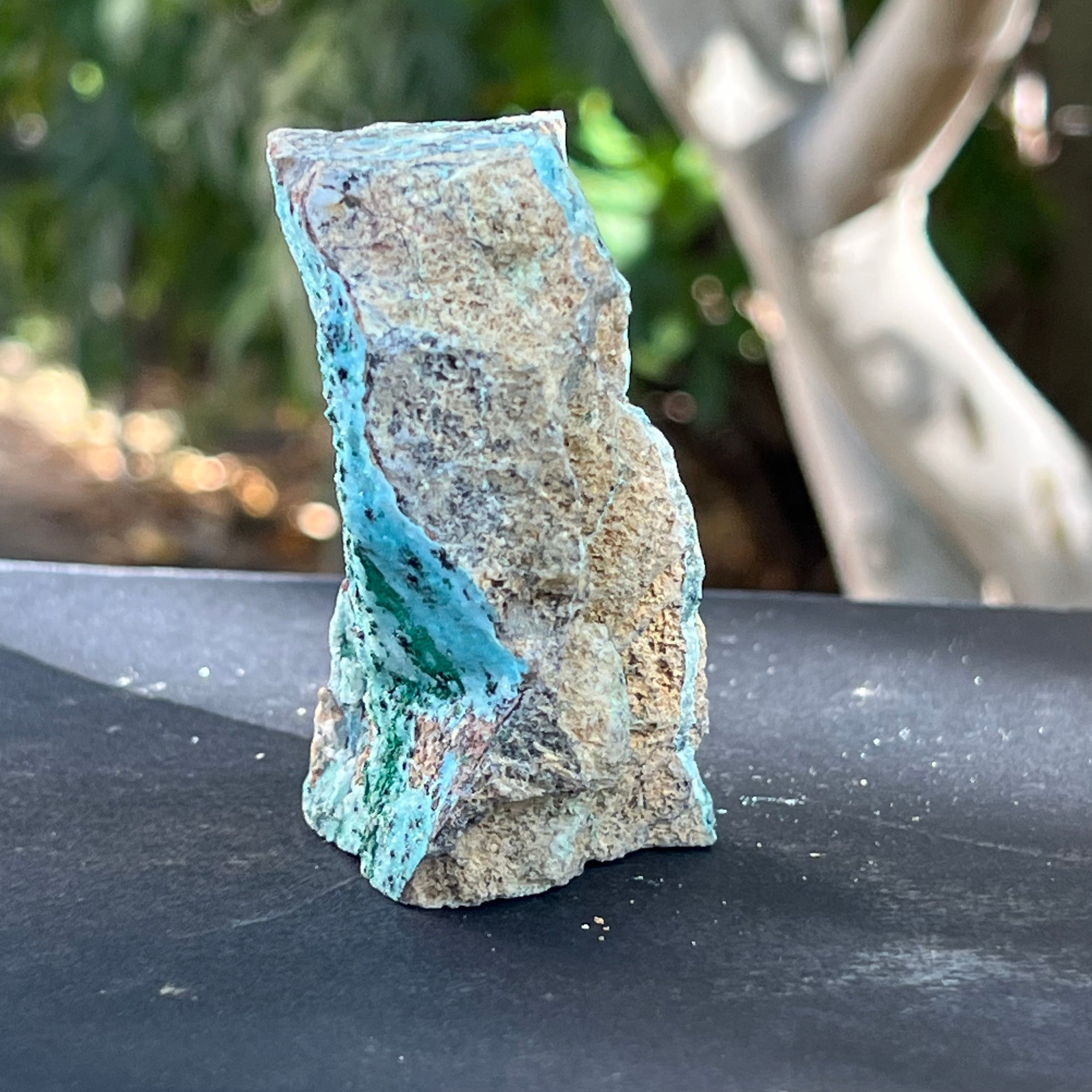 Descriere - Pietra grezza crisocolla con malachite druzy dal Congo modello 5