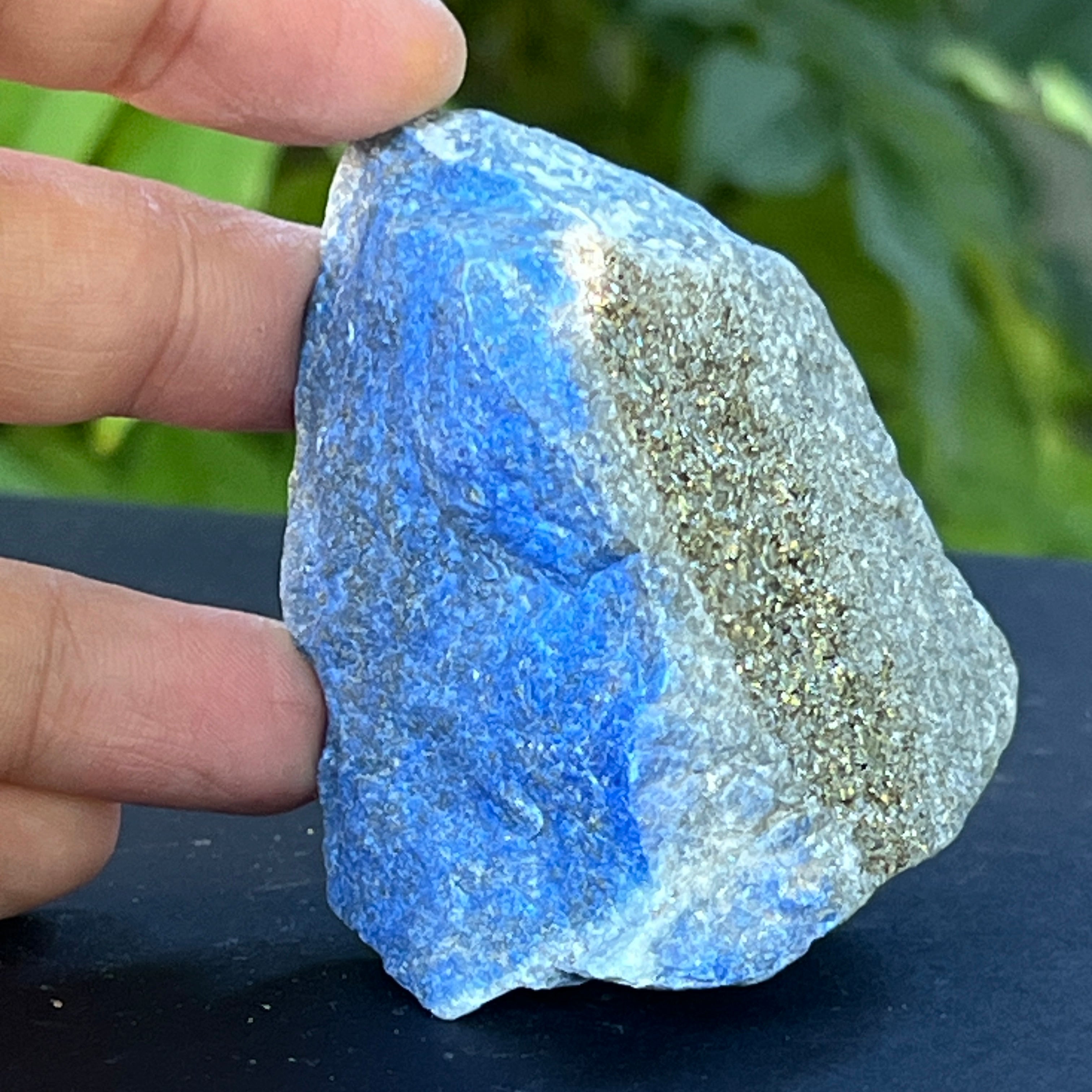 Il lapislazzuli è una pietra semipreziosa formata da un miscuglio di lazurite, calcite e pirite, con la lazurite che ha la maggiore prevalenza.