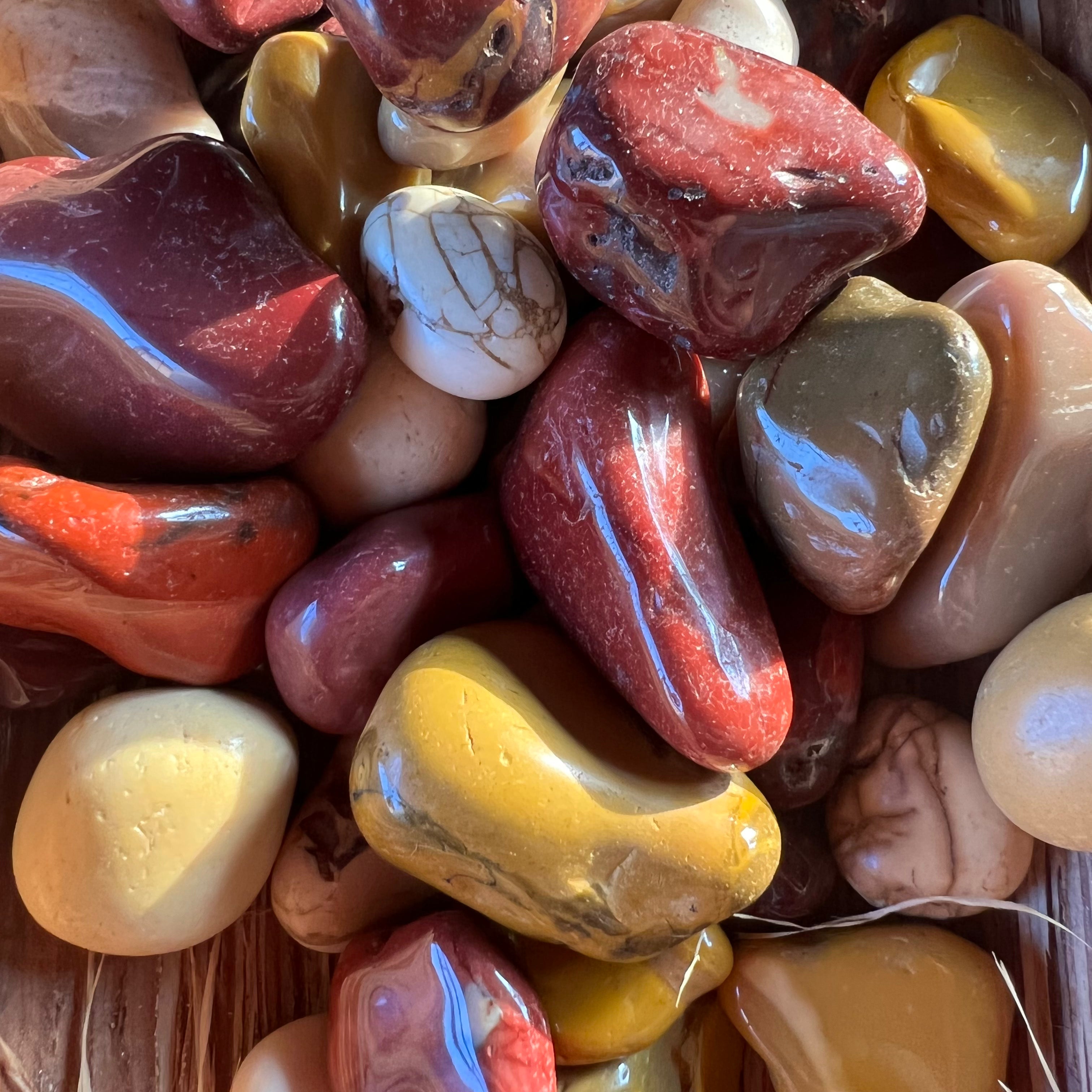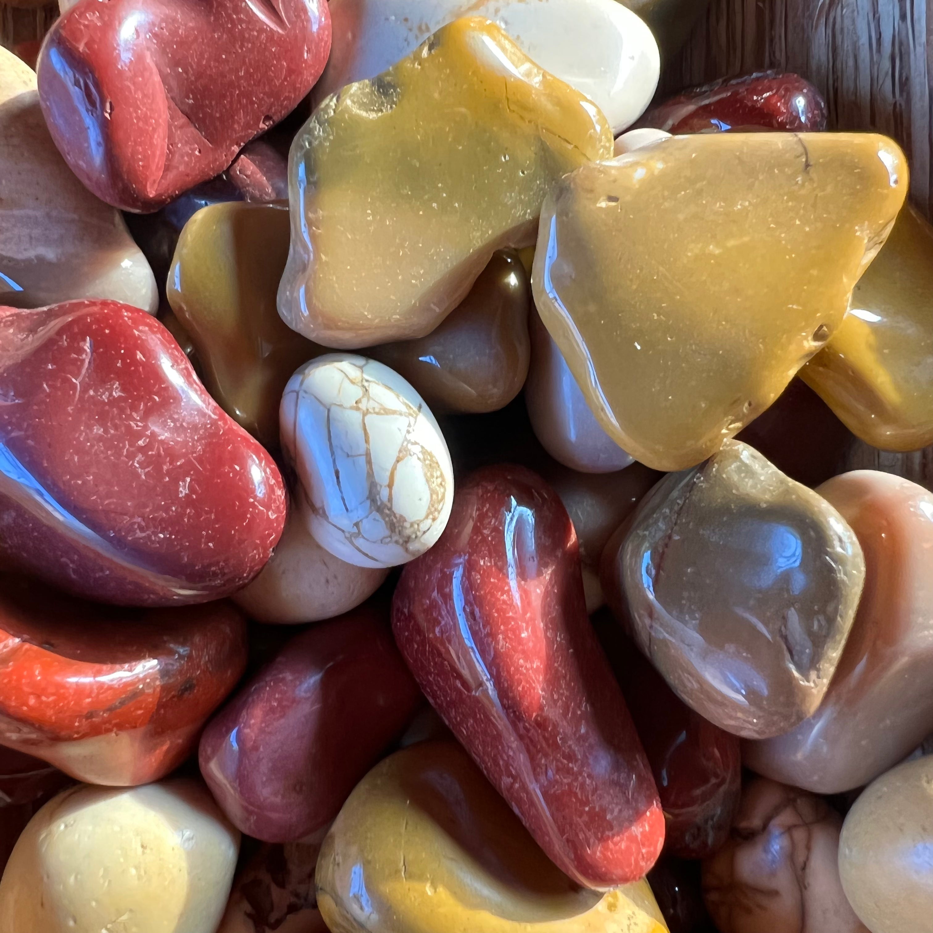 Pietra levigata mookait, dimensioni disponibili 2 - 3,5 cm. Il prezzo varia in base alla dimensione della pietra, vi preghiamo di selezionare la dimensione desiderata. Il prezzo si riferisce a un pezzo.