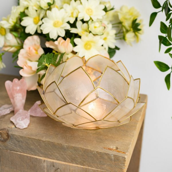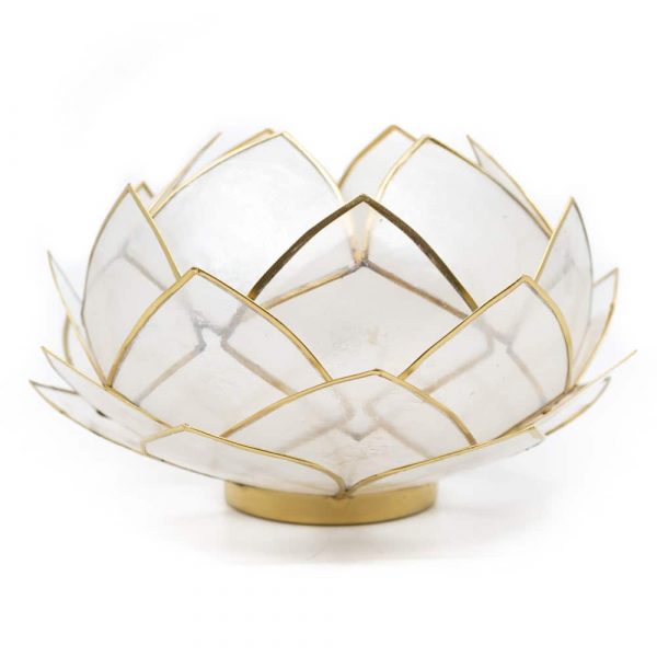 Porta candela bianco naturale fiore di loto dalle Filippine con conchiglie Capiz Grande