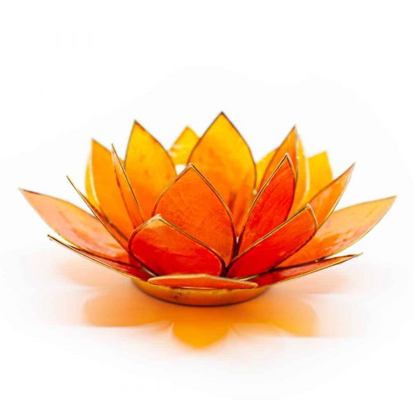 Recensioni - Portacandela arancione a forma di fiore di loto dalle Filippine con conchiglie Capiz