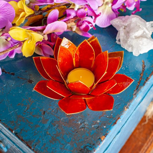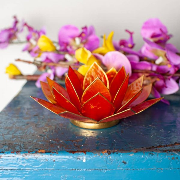 Portacandela arancione a forma di fiore di loto dalle Filippine con conchiglie Capiz
