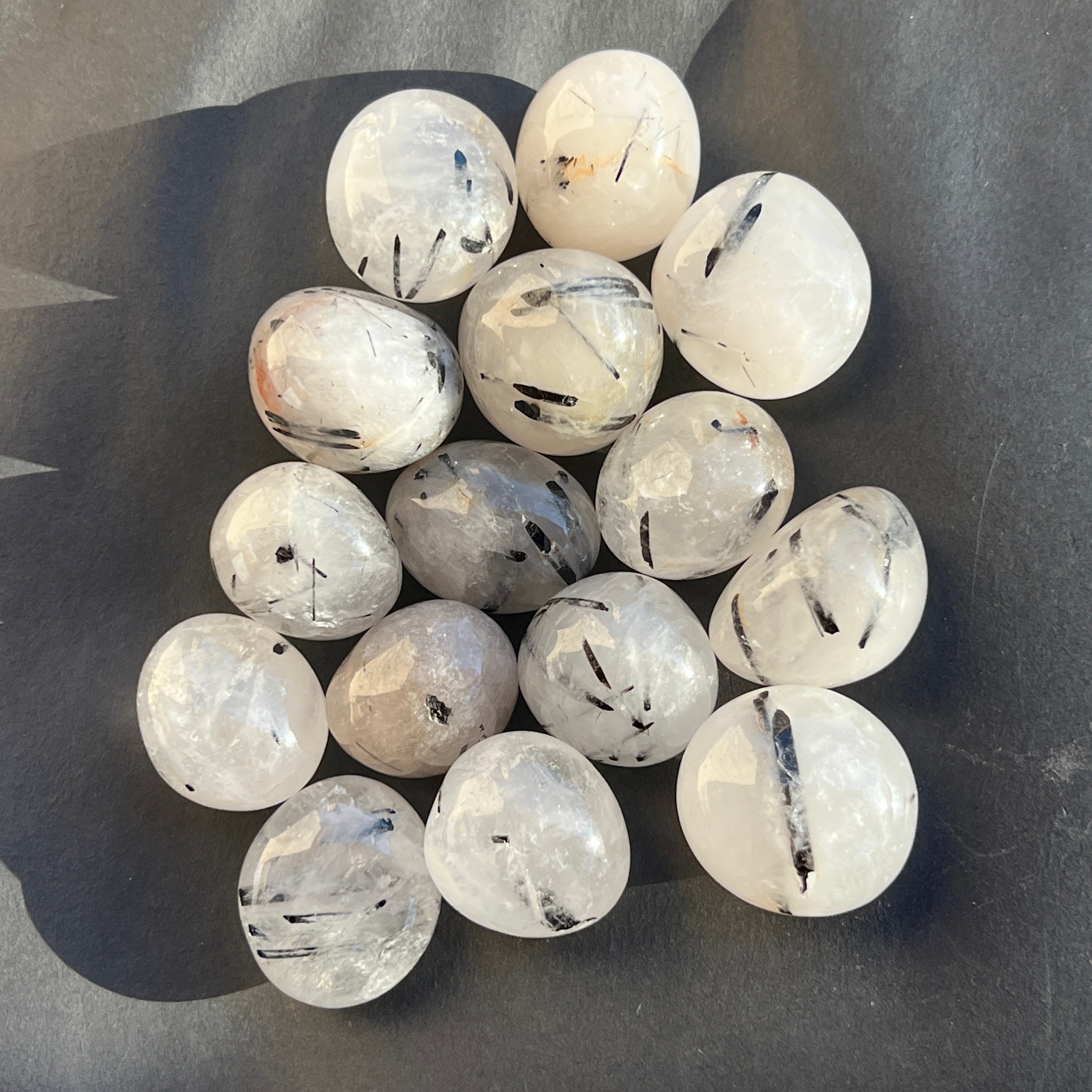 Quarzo con tormalina pietra levigata, dimensioni comprese tra 1,5 e 3,5 cm. Il prezzo varia in base alla dimensione della pietra, ti preghiamo di selezionare la dimensione desiderata.